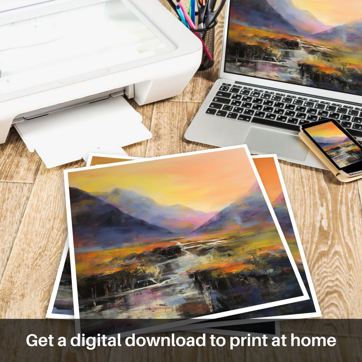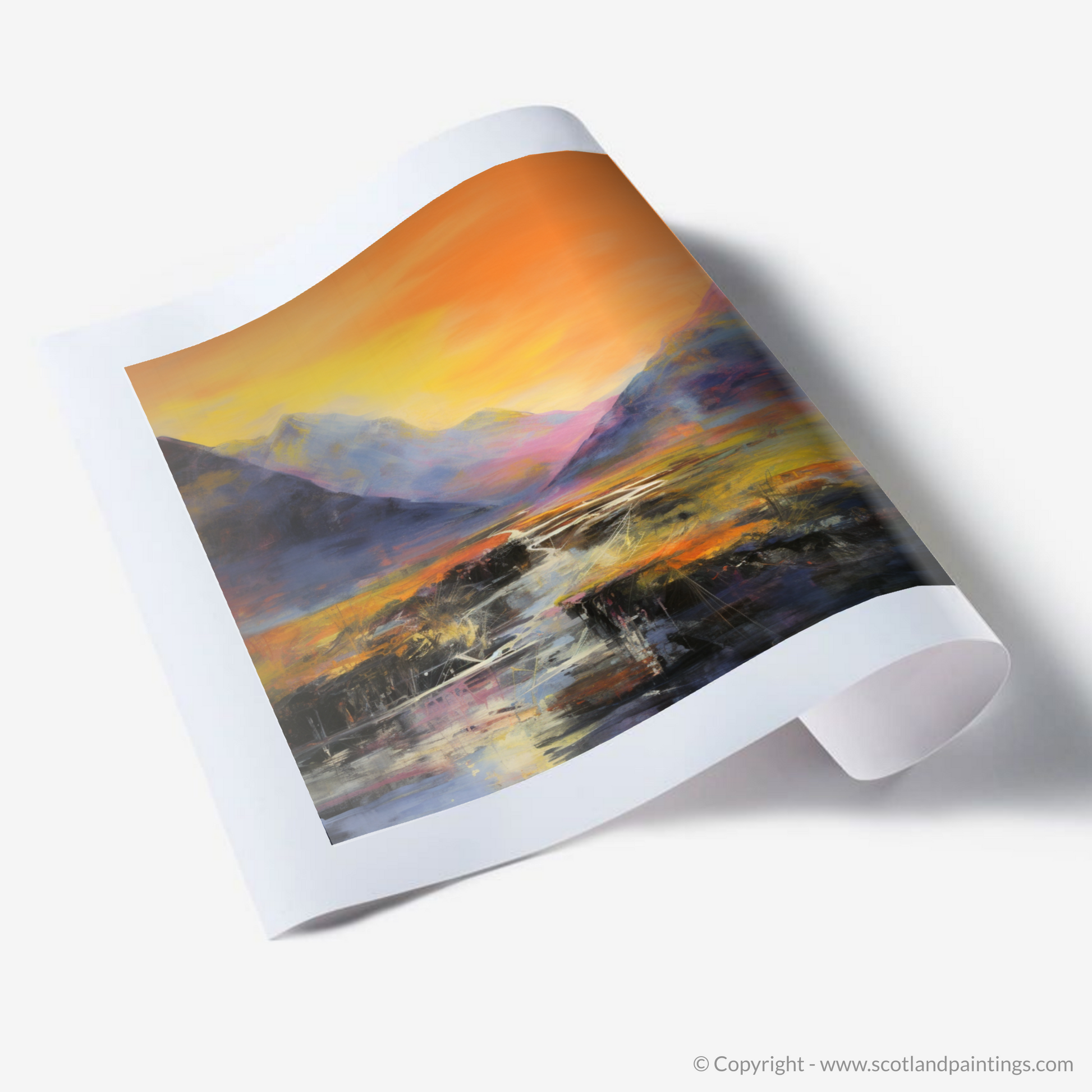 This print from the 'Glencoe' collection is a celebration of the raw, undulating spirit of the Scottish Highlands. It is an invitation to experience an abstract, sensory journey through a landscape that is both rugged and enchanting, promising to be a focal point in any space it occupies.