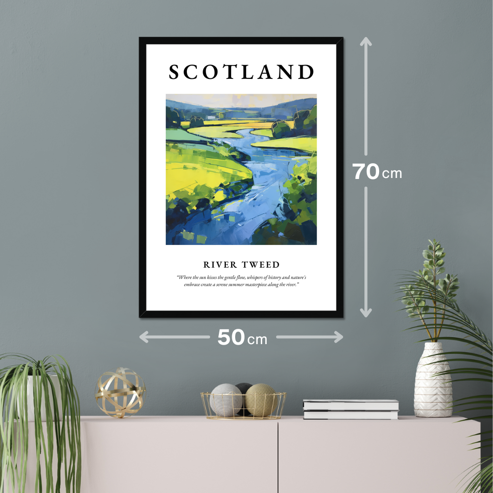 Immerse yourself in the enchanting beauty of Scotland with our stunning 50cm x 70cm framed poster, a masterpiece that captures the essence of the River Tweed in an abstract style. Designed to stand out, this poster effectively fills a large wall space, offering an affordable yet substantial addition to your home decor. Available in a choice of black, white, or natural wood-effect frames, it seamlessly complements any aesthetic while making a bold statement.