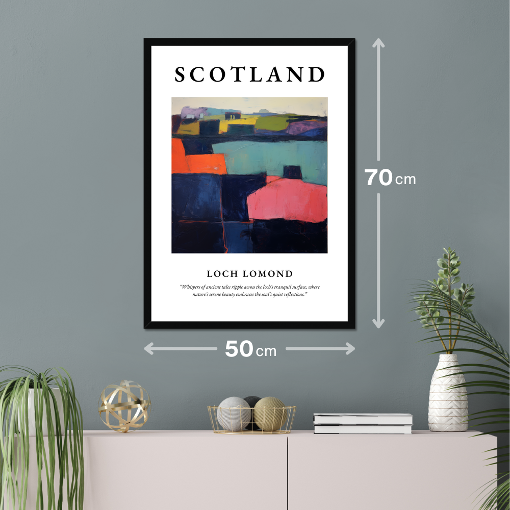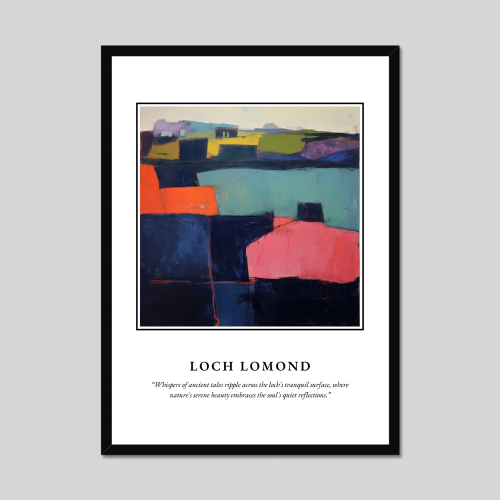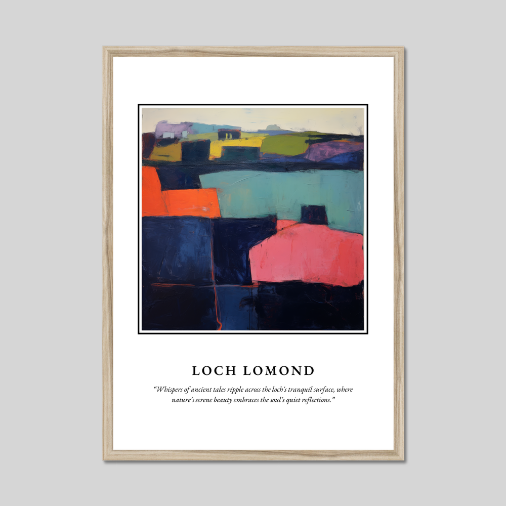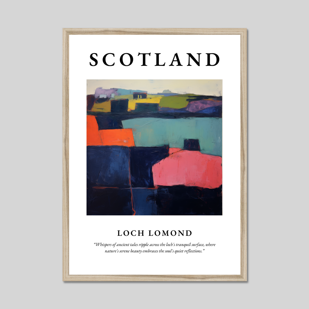 Available in a choice of black, white, or natural wood-effect frames, this poster effortlessly blends into any decor, making it ideal for art enthusiasts who appreciate both the beauty of Loch Lomond and the abstract style. For those with personal connections to Scotland, whether through past visits or ancestral ties, this piece serves as a timeless reminder of the landscape's majestic beauty.