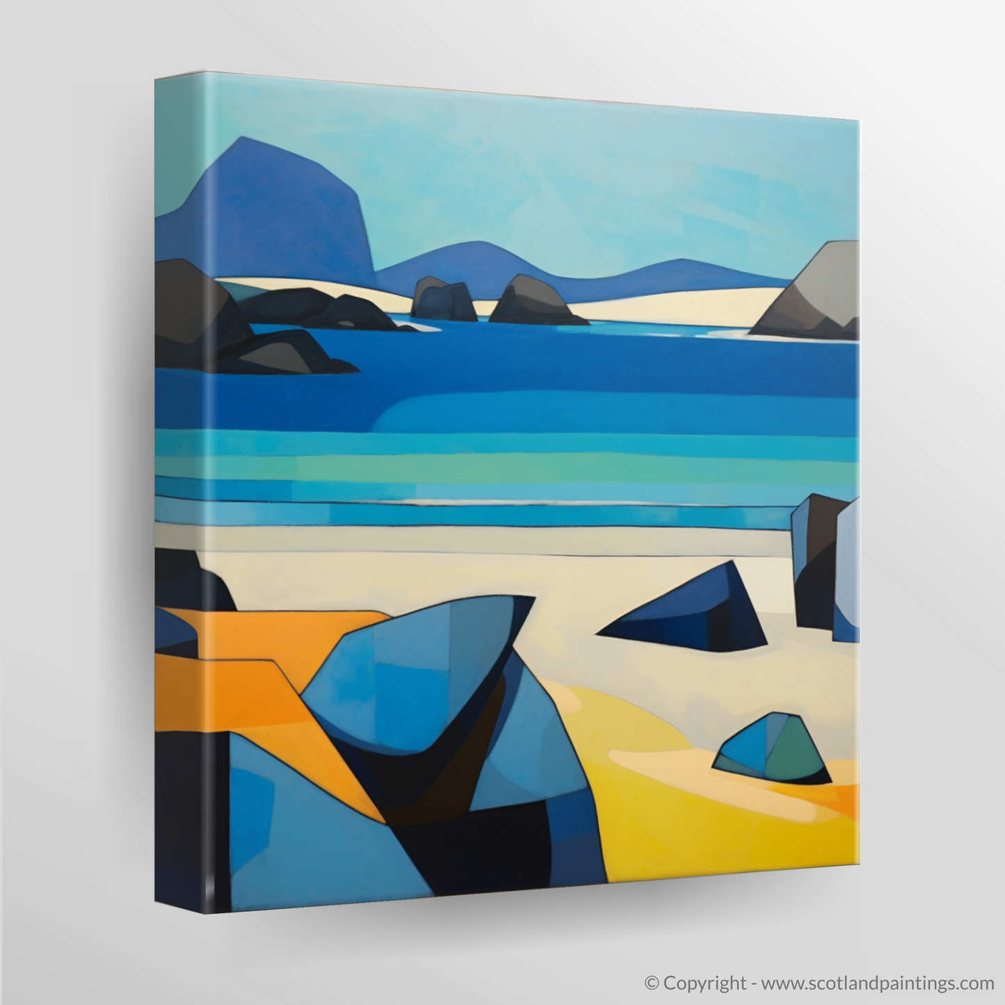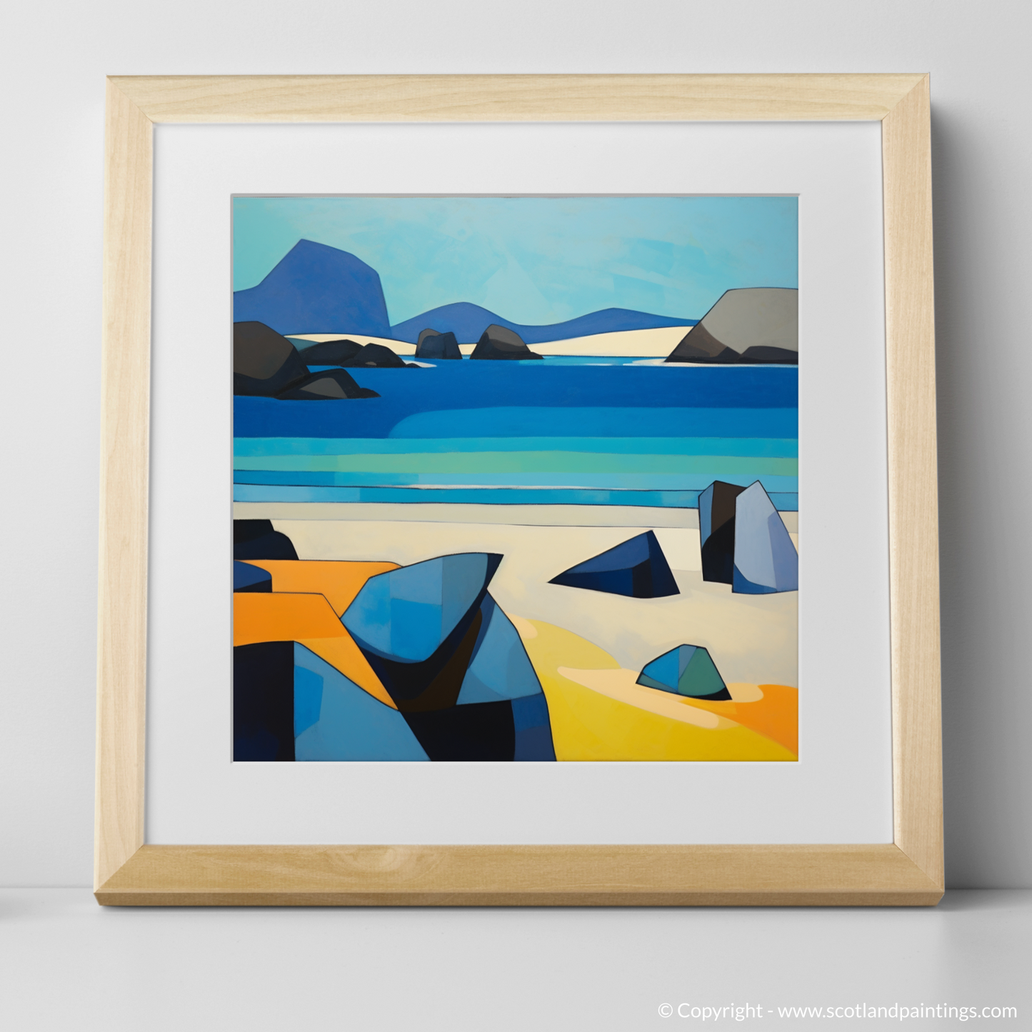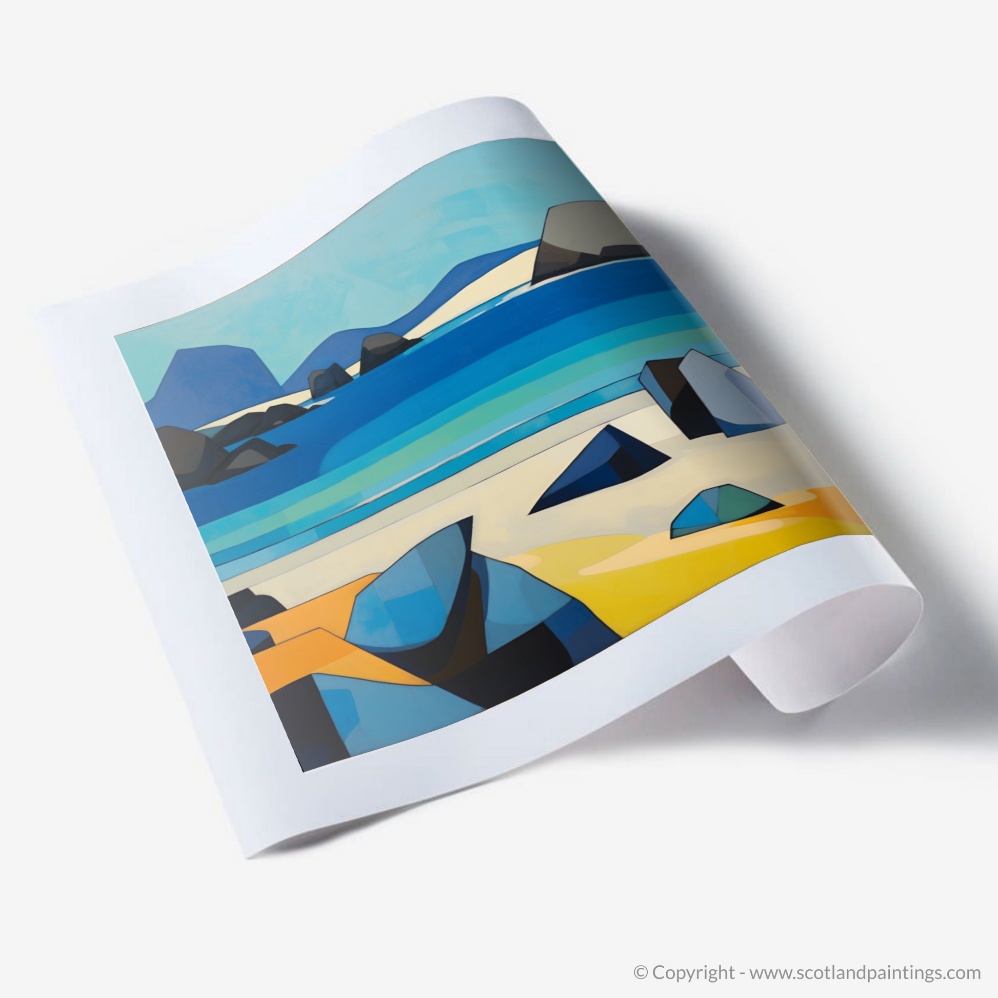 Capture the essence of Scotland's rugged coastline with this captivating abstract print, inspired by the serene beauty of Mellon Udrigle Beach in Wester Ross. This piece is a symphony of bold geometry and soothing hues that transports viewers to a realm where land meets sea in tranquil harmony.