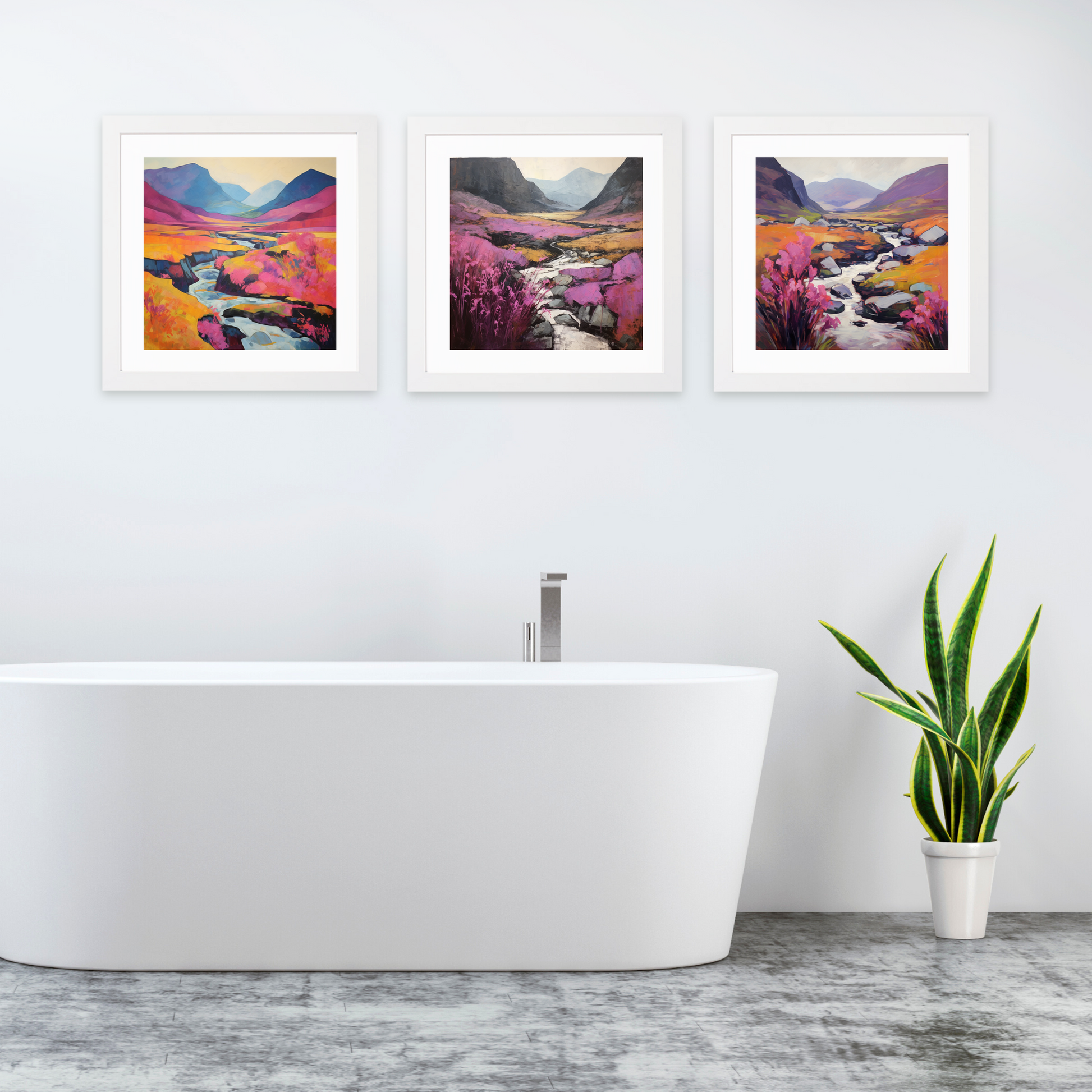 Heather blooms by River Coe in Glencoe - Set of Three Prints