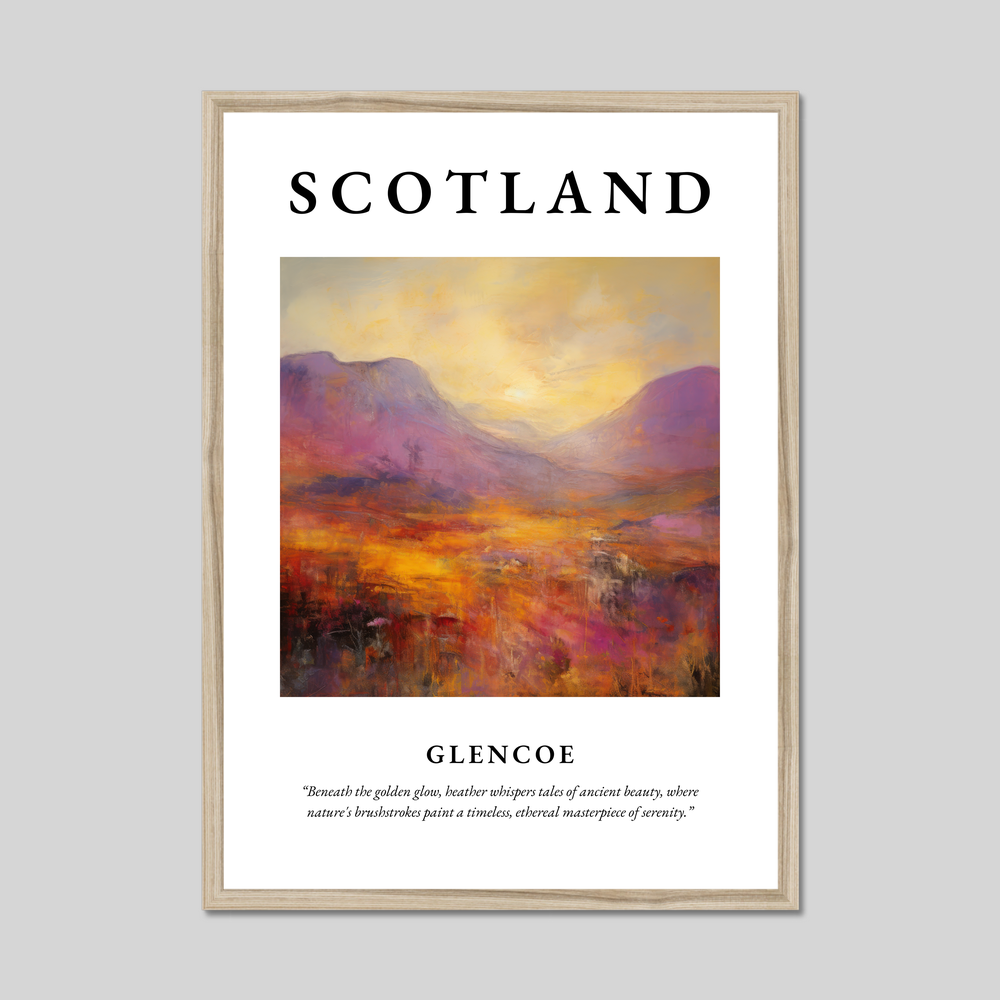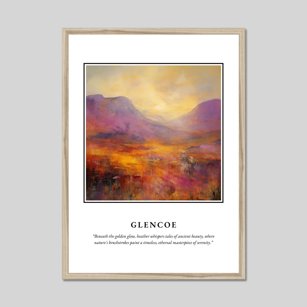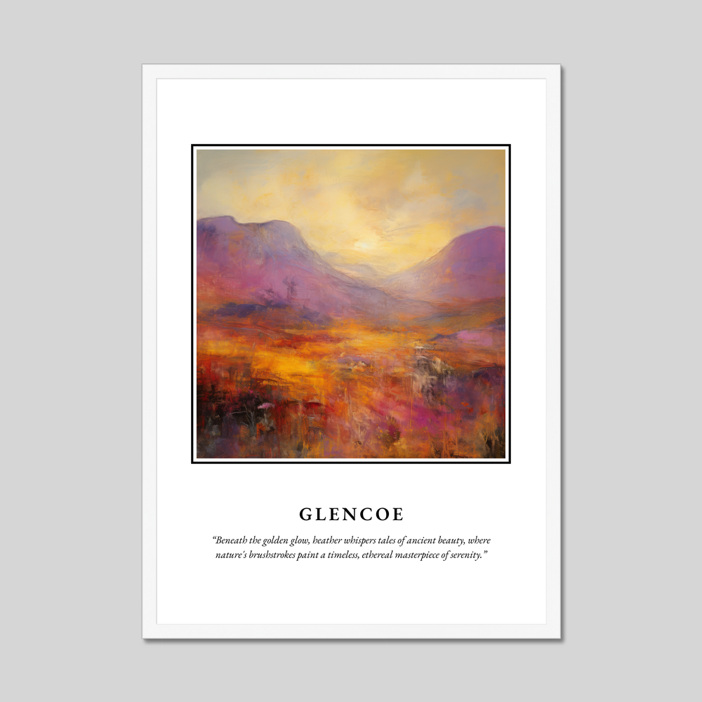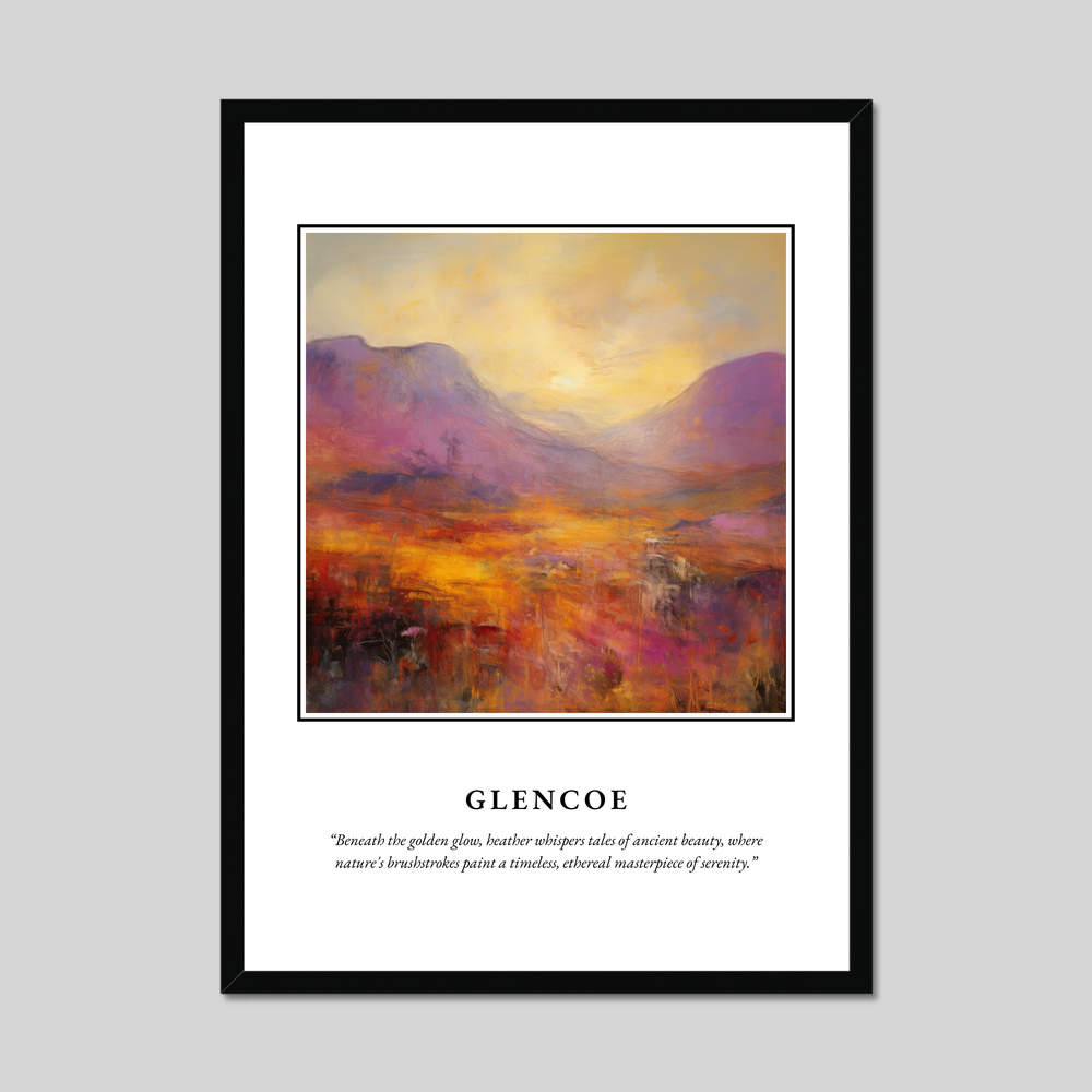Whether you have walked among its serene paths, studied its storied past, or dreamt of its tranquil vistas, this framed poster is a perfect tribute to the timeless beauty of Glencoe. Let the artwork transport you to this legendary glen, bringing warmth and inspiration into your home.