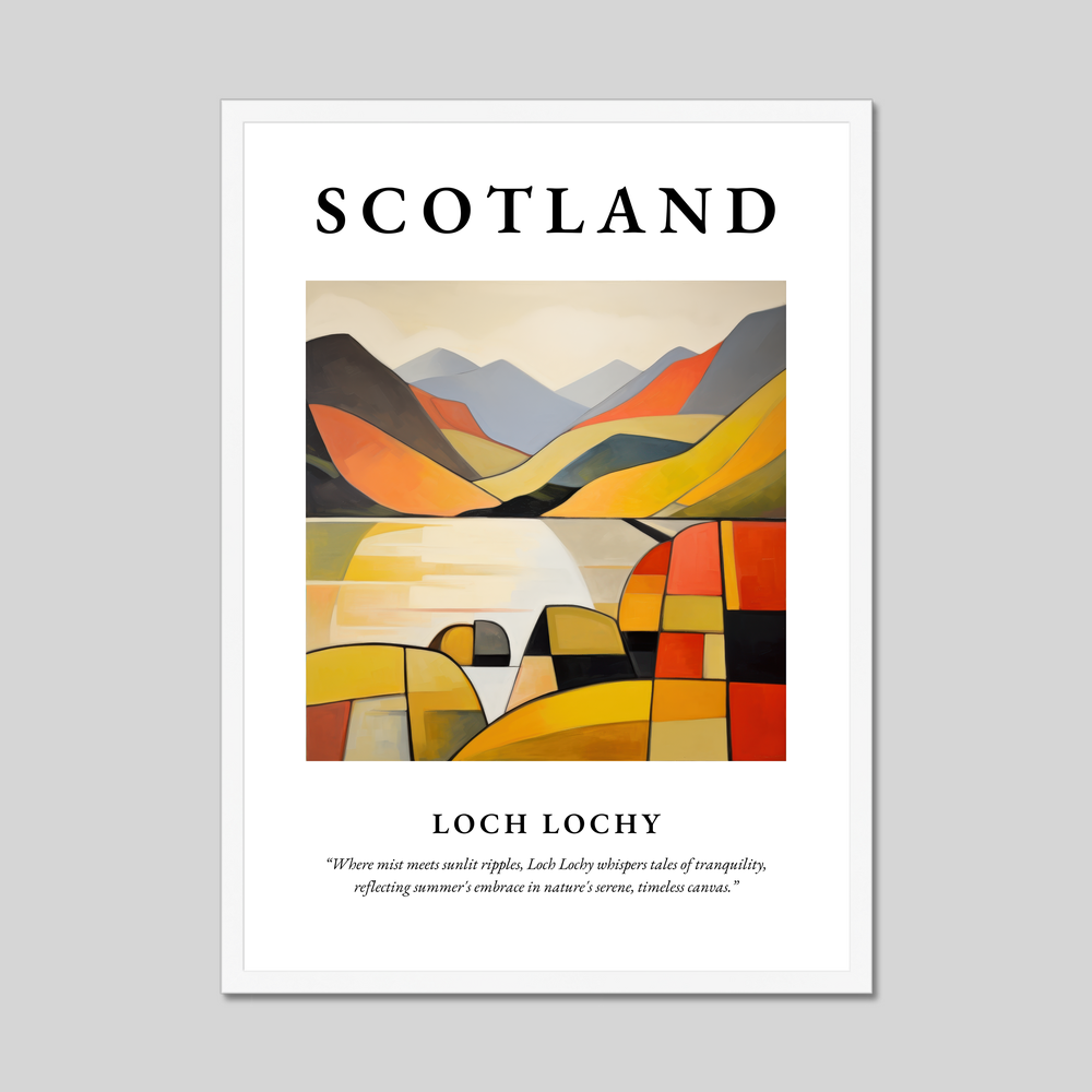 The abstract rendition of Loch Lochy in our poster not only encapsulates the loch's enchanting allure but also pays homage to the summer's gentle embrace. It serves as a perfect tribute for anyone with cherished memories of the loch, a passion for abstract art, or a love for Scotland's captivating landscapes. Whether you're reminiscing about a visit or yearning for your own Scottish adventure, let this artwork transport you to a place where mist meets sunlit ripples and dreams are as vivid as the hues on the canvas.