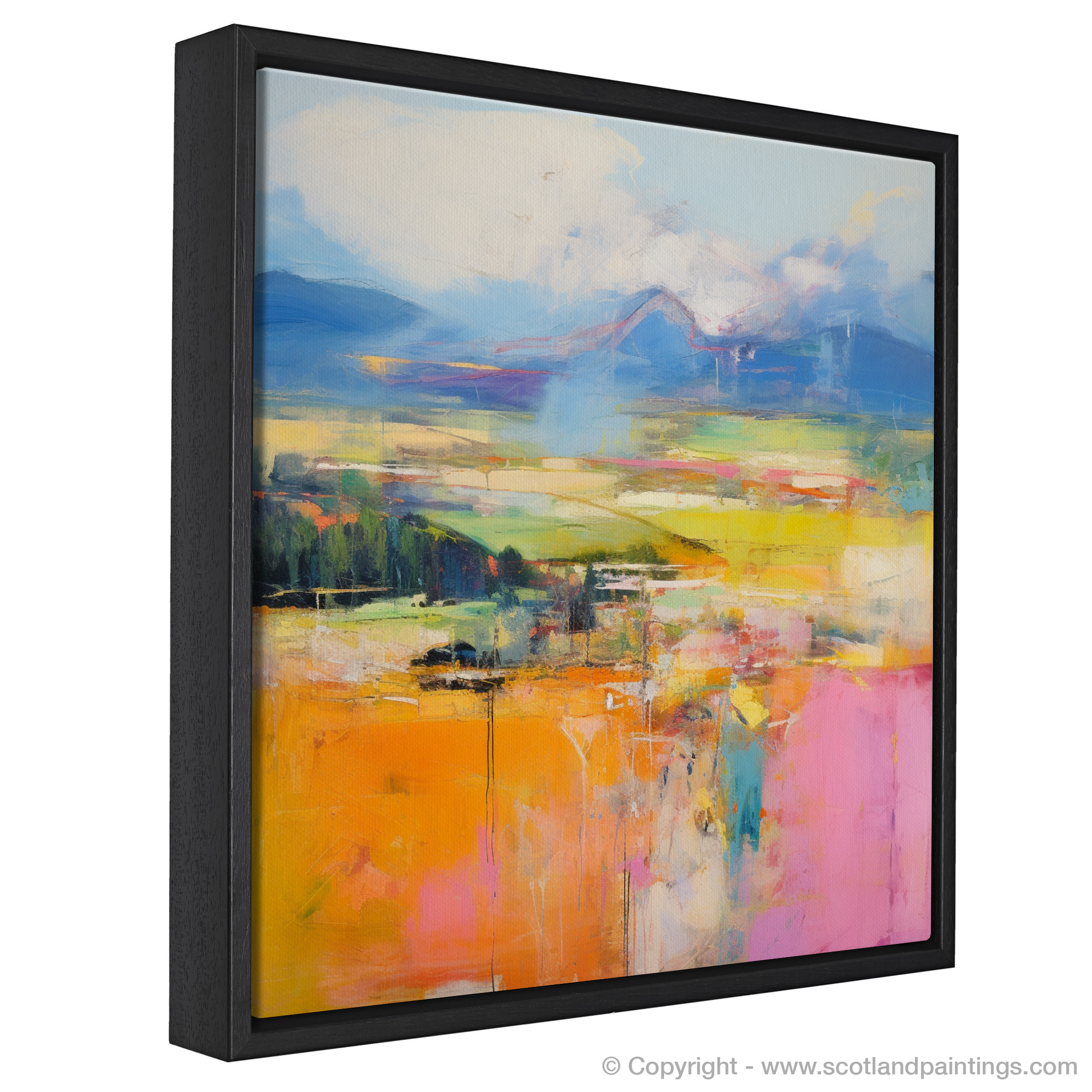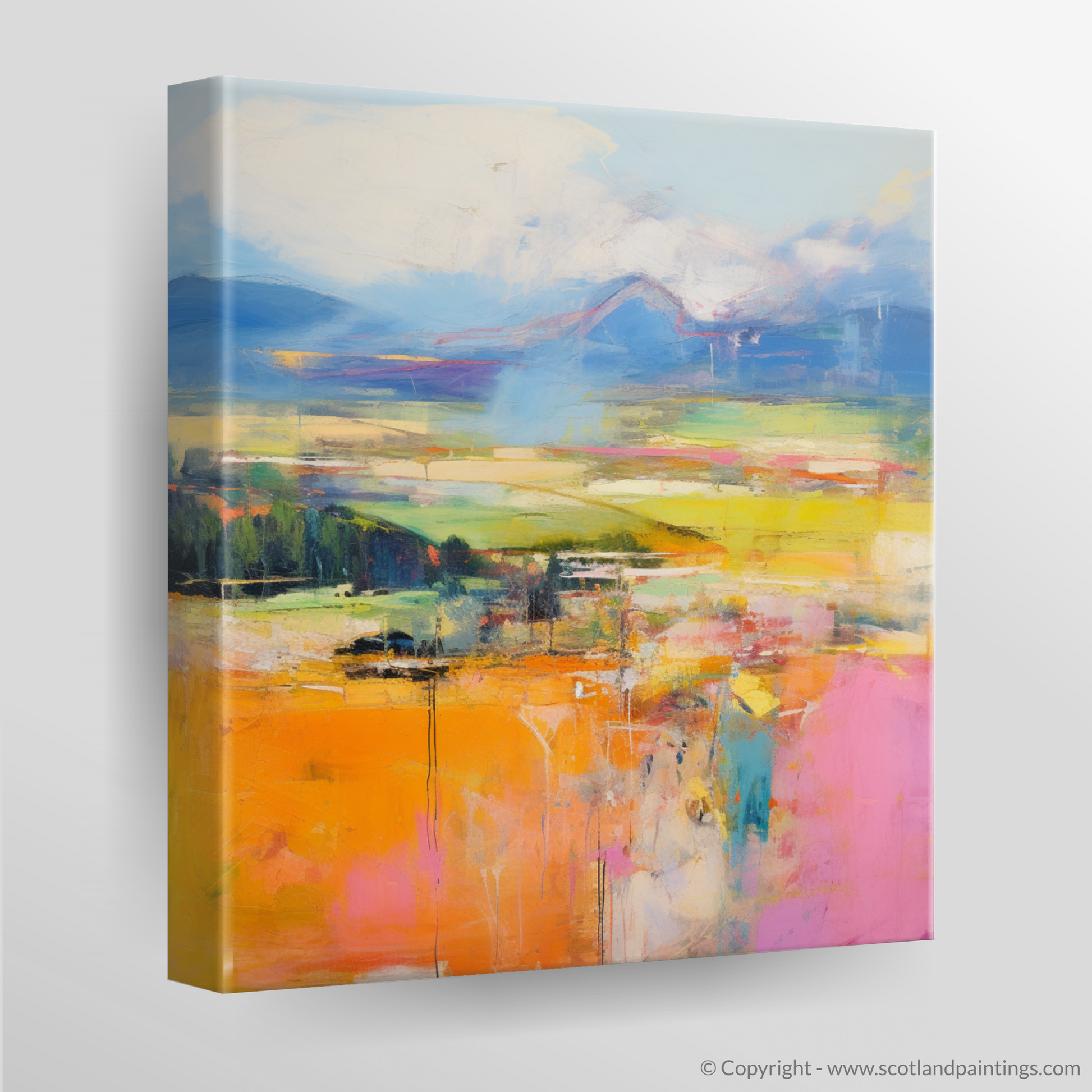 Capturing the essence of a Scottish summer, this vibrant abstract expressionist piece offers a rich tapestry of colour and emotion, evoking the majestic landscape of Glendevon, Perth and Kinross. A harmonious blend of bold and pastel hues dance across the canvas in a symphony of yellows, pinks, oranges, and blues, each stroke contributing to an energetic yet serene representation of the scene.