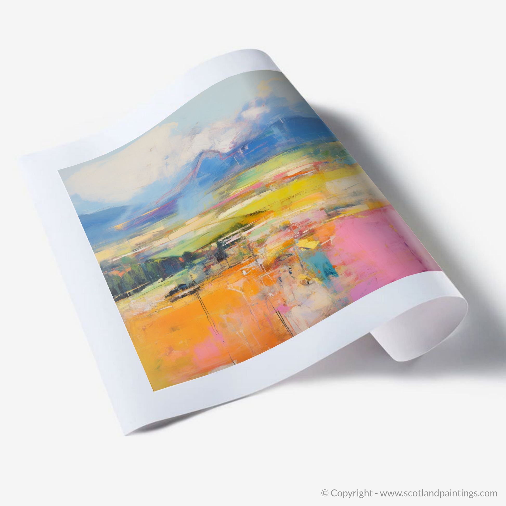 Perfect for those who appreciate the allure of abstract art and the timeless beauty of Scotland's landscapes, the print is a captivating addition to any space, embodying the warmth and vitality of a Scottish summer.