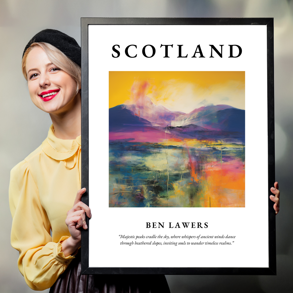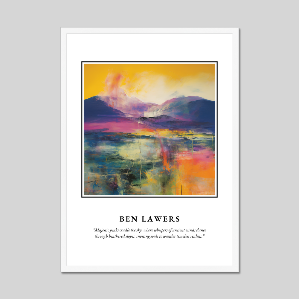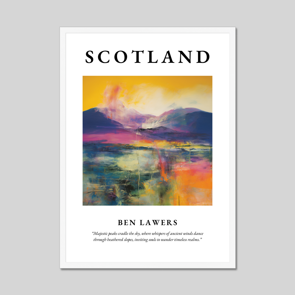 Whether you've trekked its heathered paths or it's on your list of must-see Scottish wonders, this poster serves as a constant reminder of the wild allure and serene majesty of Ben Lawers. Let the vibrant hues and evocative brushstrokes transport you to the heart of Scotland.
