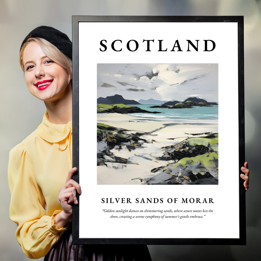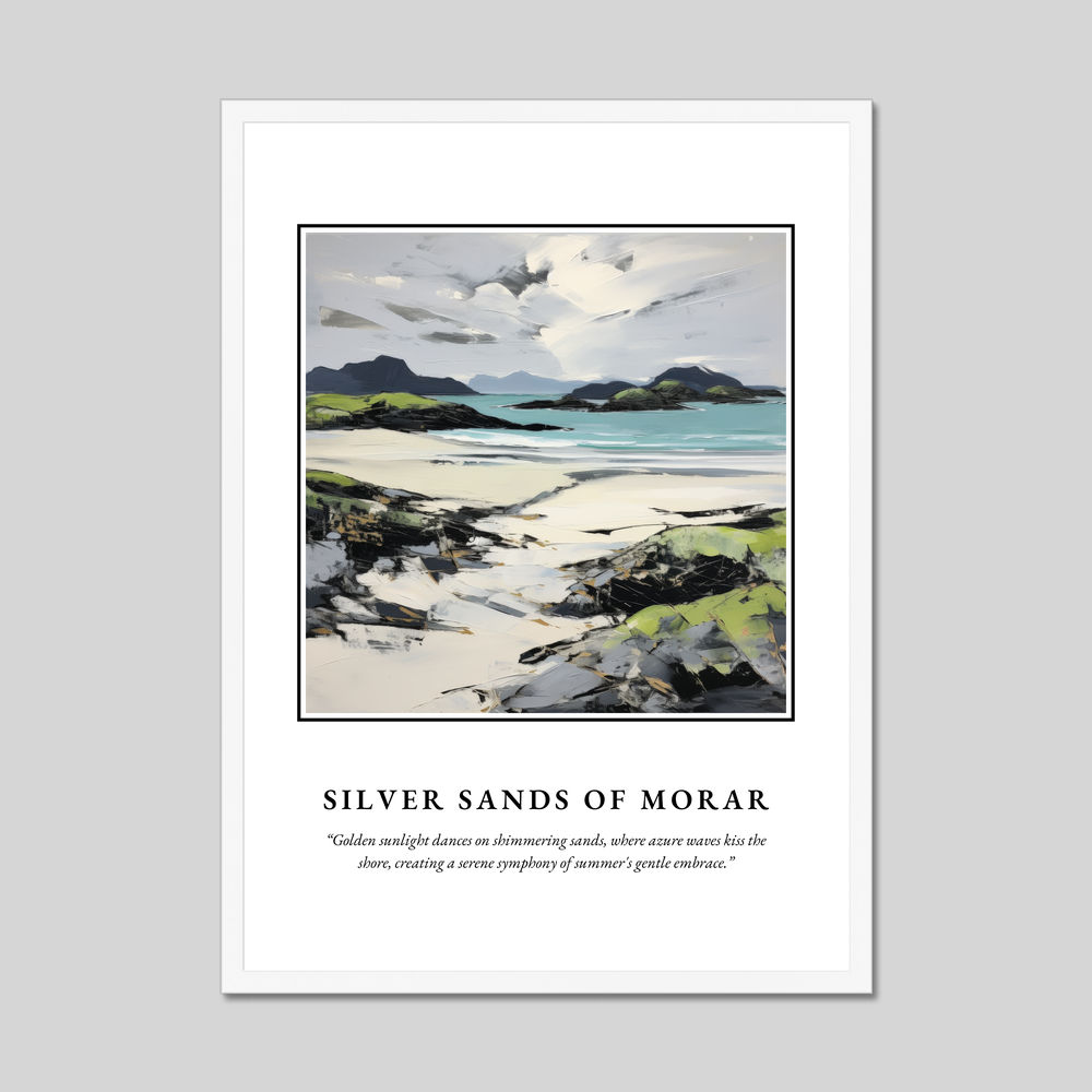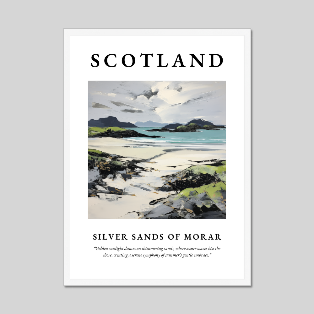 The painting captures the essence of Morar’s tranquil splendour, evoking memories for those who've wandered its shores or dreamt of visiting. Whether you have cherished memories of Silver Sands or simply yearn for the serene beauty of Scottish summers, this poster brings a slice of paradise into your home.