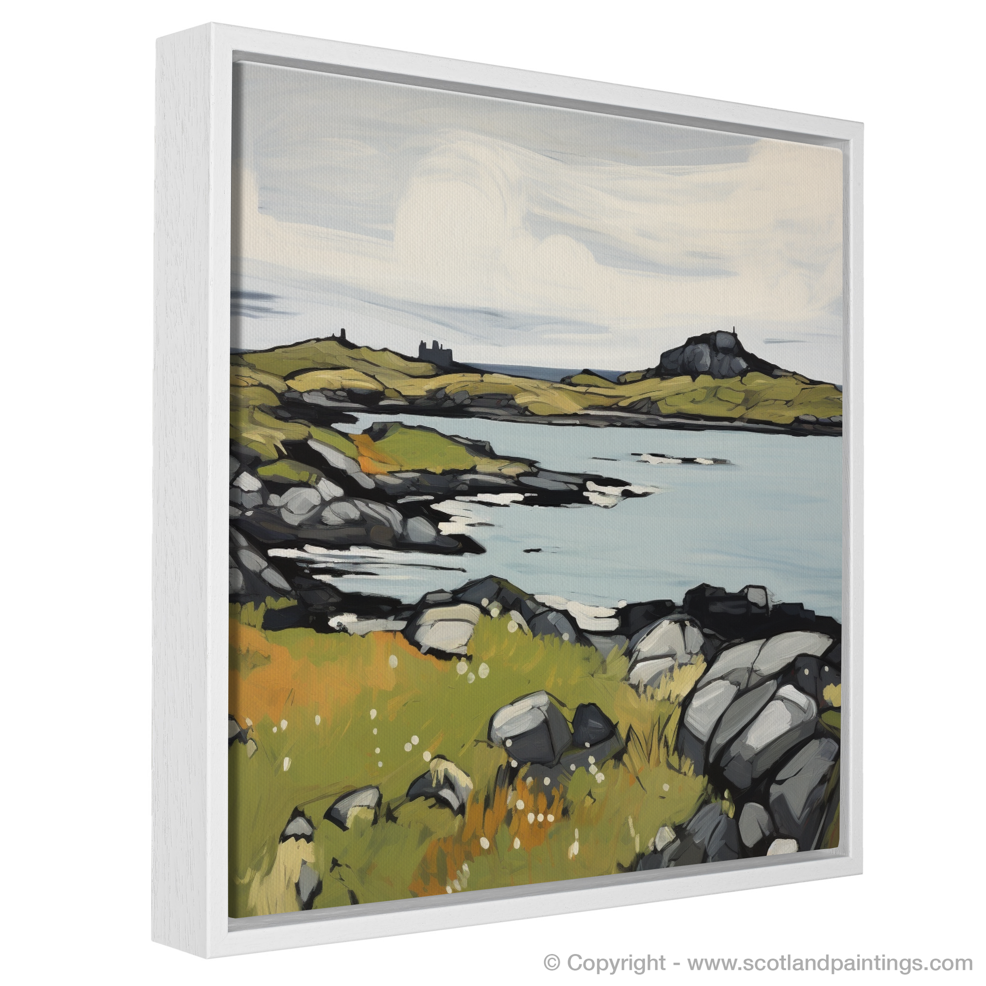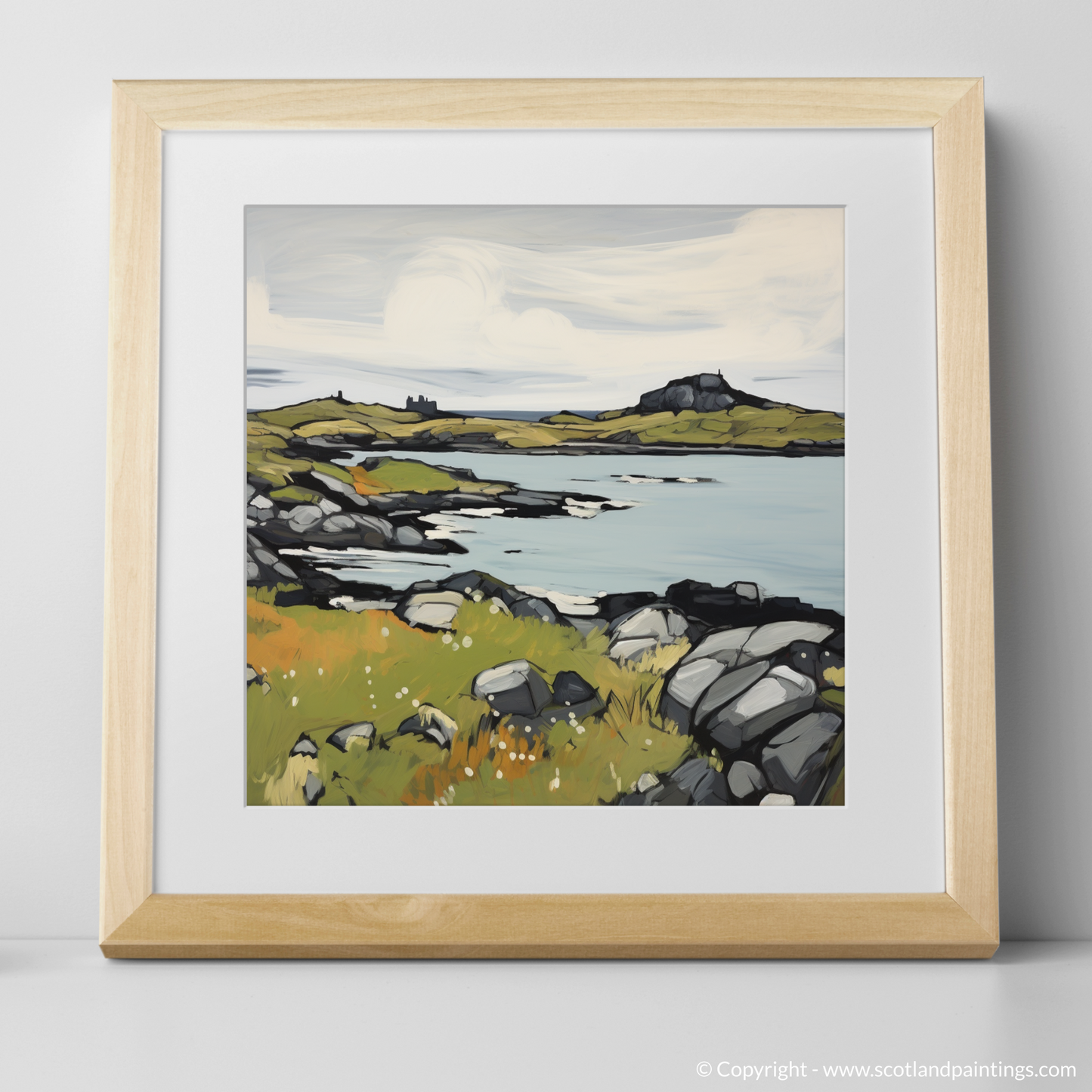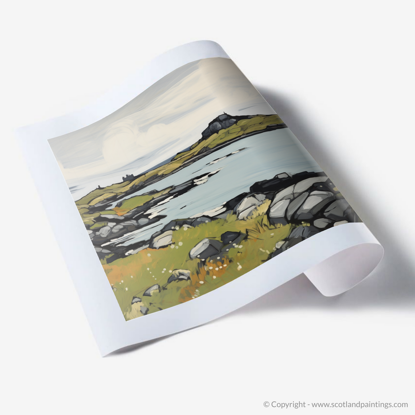 Capturing the rugged allure of the Scottish Isles, this evocative print brings forth the raw beauty of the Isle of Iona, nestled in the Inner Hebrides. The artwork is rendered in an Expressionist style, marked by bold brushstrokes and a rich, emotive use of colour that lends the landscape a vibrant, almost dreamlike quality.