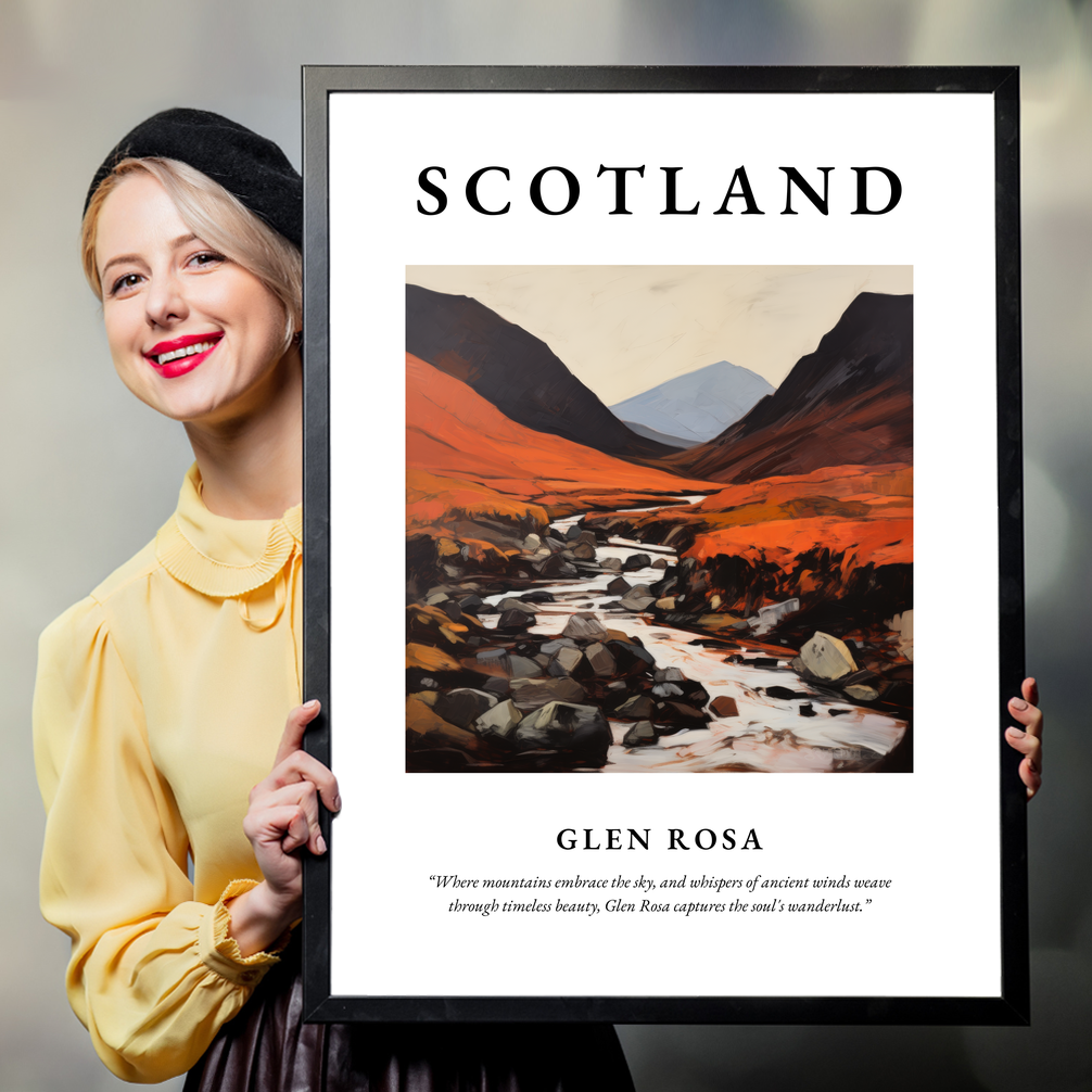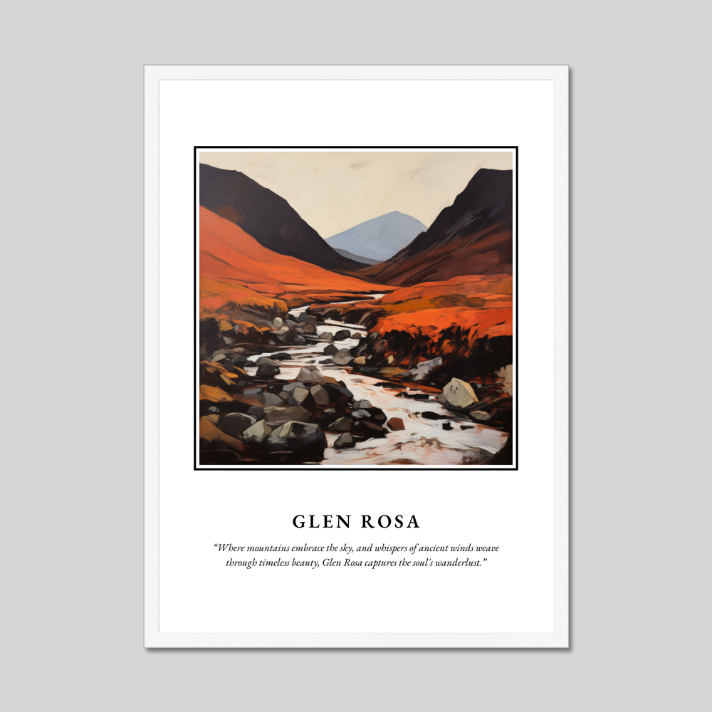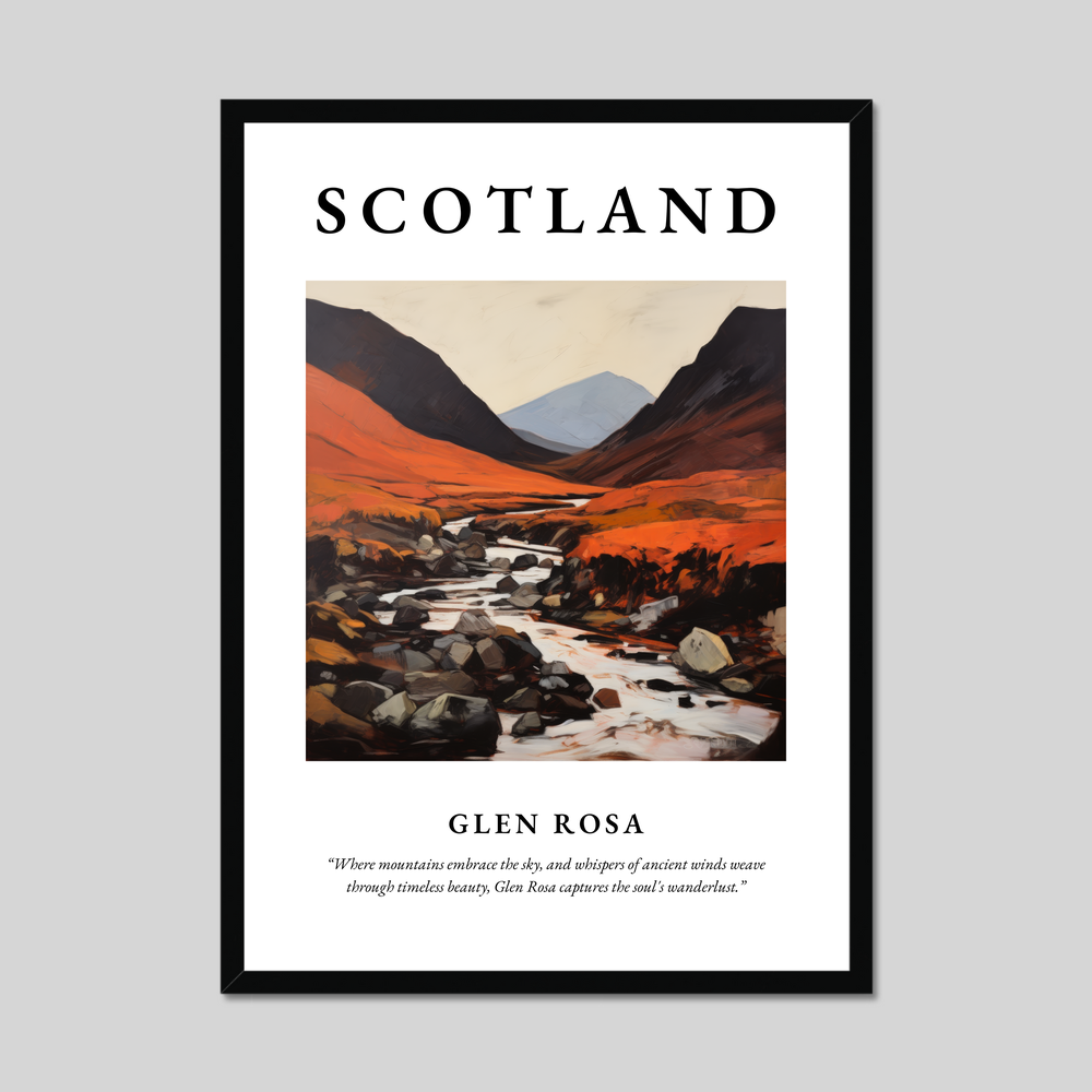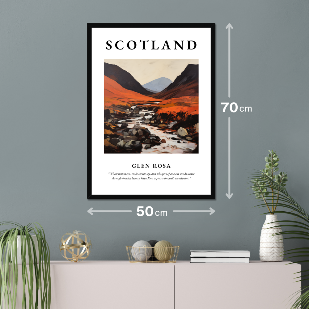 Transform your space with our stunning framed poster print, a captivating tribute to the mesmerising landscapes of Scotland. Measuring an impressive 50cm x 70cm, this poster is a perfect statement piece for any home or office, offering a panoramic glimpse into the heart of Glen Rosa without stretching your budget.