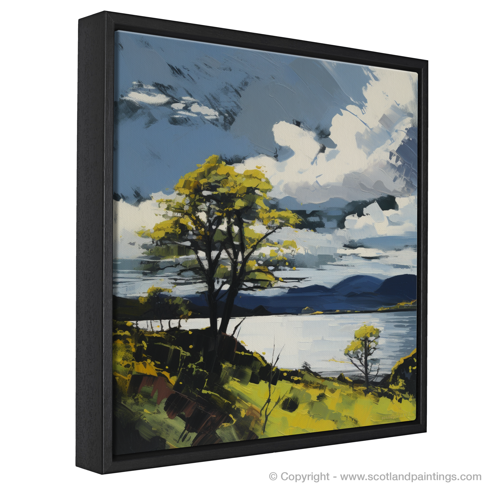 Capturing the essence of Loch Lomond during the vibrant summer months, this evocative piece of art is a feast for the senses. The print resonates with the bold, emotive strokes characteristic of Expressionism, inviting the viewer to experience Scotland's natural magnificence through a vivid and dynamic lens.