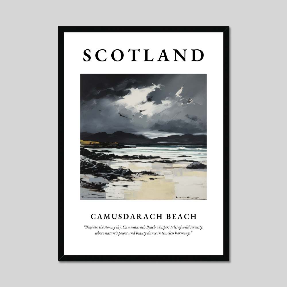 For lovers of art and nature, this framed poster print is more than just décor. It is an invitation to explore the wild serenity of Scotland from your own home, a celebration of one of its most picturesque locations. Whether you've walked the sands of Camusdarach Beach yourself or dream of visiting, this artwork promises to keep a piece of Scotland alive in your heart.
