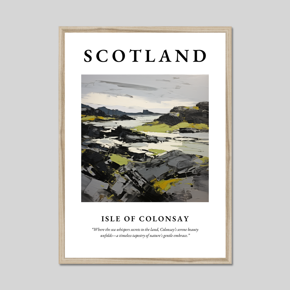 Transform your space with our stunning framed poster print, capturing the essence of Scotland's Isle of Colonsay in the evocative style of Expressionism. Measuring a generous 50cm x 70cm, this striking piece is designed to cover a large wall area, providing a bold statement without stretching your budget. Available in black, white, or a natural wood-effect frame, it seamlessly complements any décor.