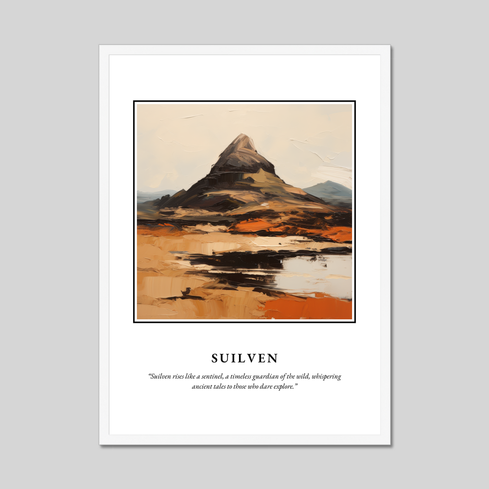 By capturing Suilven’s essence, our poster not only beautifies your living space but also evokes the spirit of exploration and wonder. Whether for those who've tread its paths or dream of doing so, this piece serves as a reminder of nature's splendour and the profound stories whispered by Scotland’s majestic highlands.