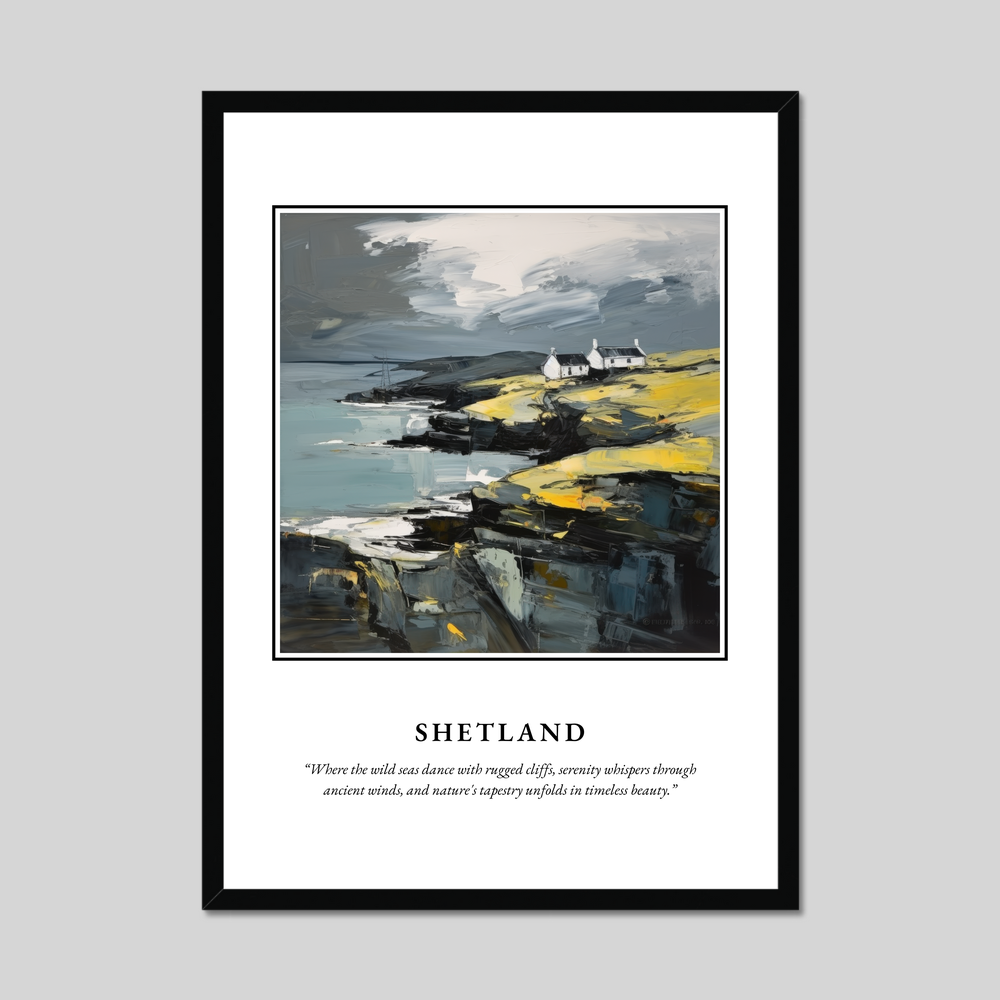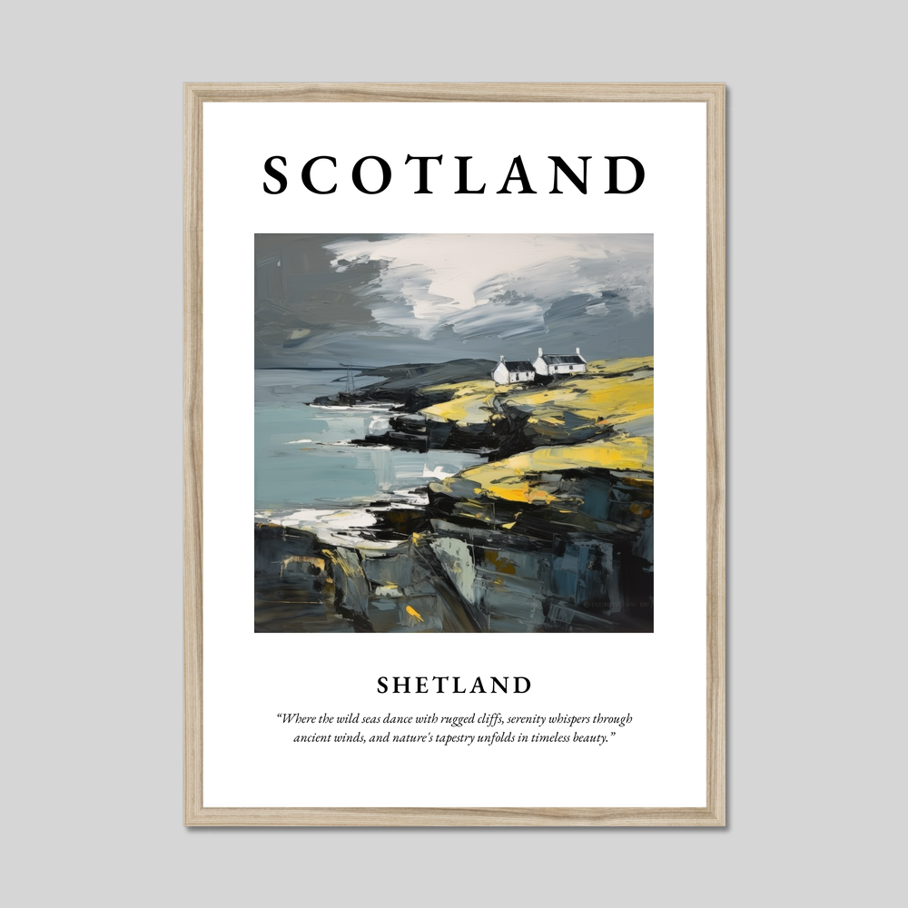 Discover the rich allure of Scotland with our striking framed poster print from the “Scottish Islands” collection. Capturing the rugged beauty of Shetland in an evocative Expressionist style, this piece is perfect for those who have a connection to the enchanting Scottish Isles or simply an appreciation for vibrant, powerful art. This eye-catching poster, measuring a substantial 50cm x 70cm, promises to transform any space, offering an aesthetic statement without a hefty price tag. Choose from classic black, crisp white, or a natural wood-effect frame to suit your décor and bring a touch of Scotland to your home.