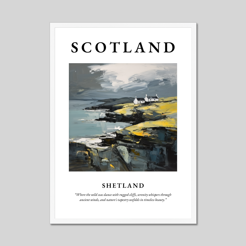 For those who have visited, dreamed of visiting, or have ancestral ties to this rugged archipelago, our poster offers a tangible connection to Shetland’s untamed beauty. Whether the dramatic landscapes remind you of a cherished memory or you’re captivated by the island's mystique, this work of art is a window to Scotland's northern edge, where the harmony of nature and human history coexist in timeless elegance.