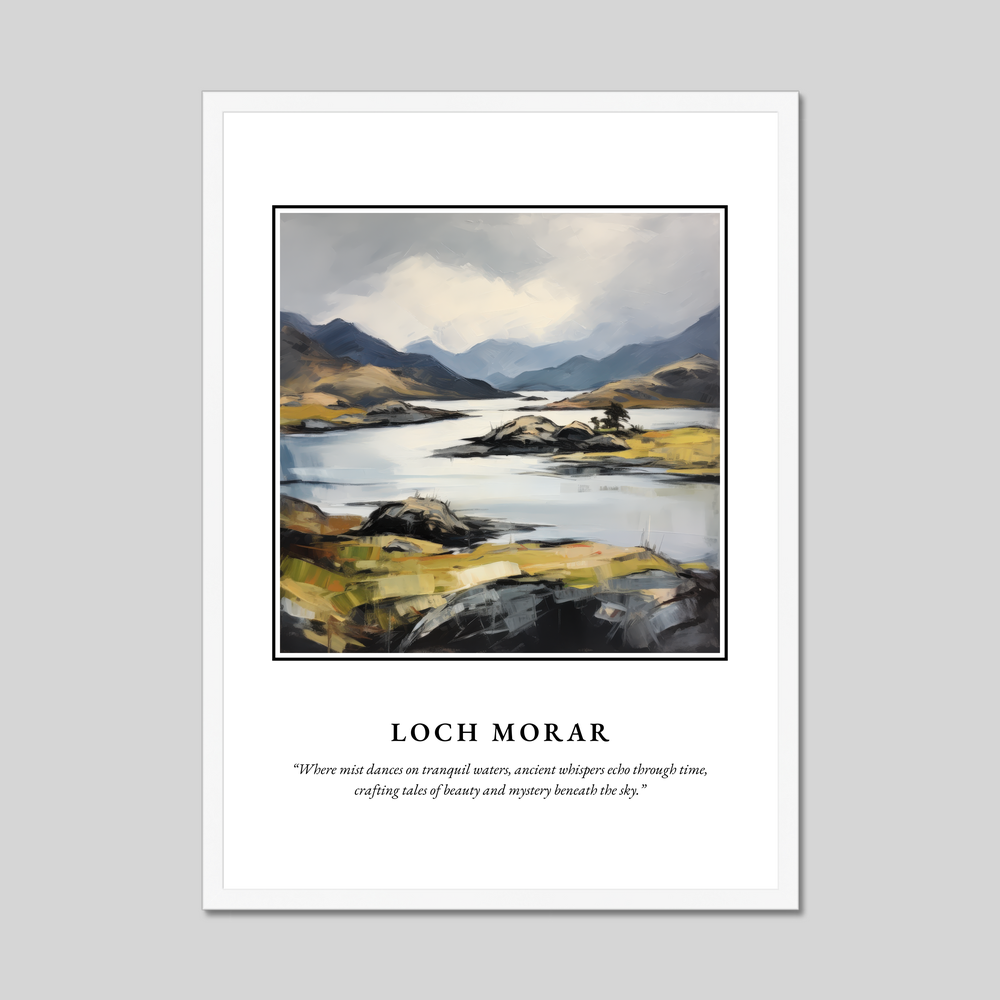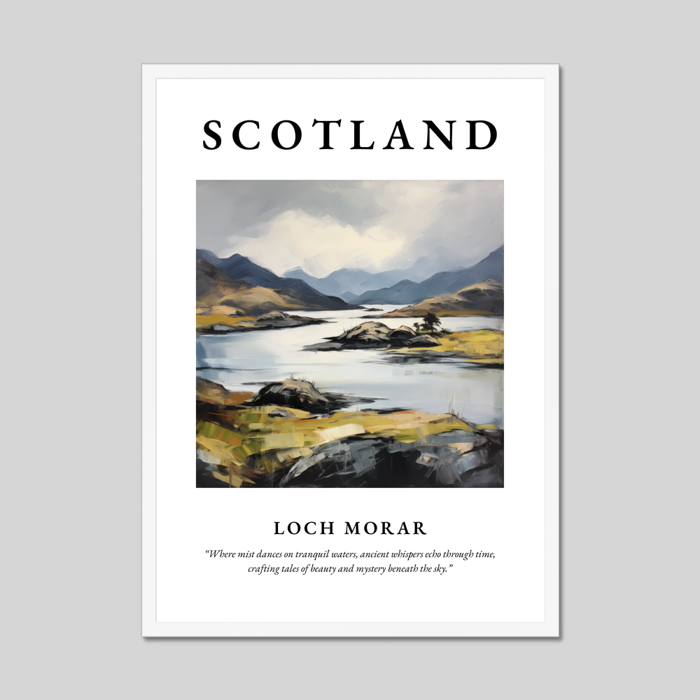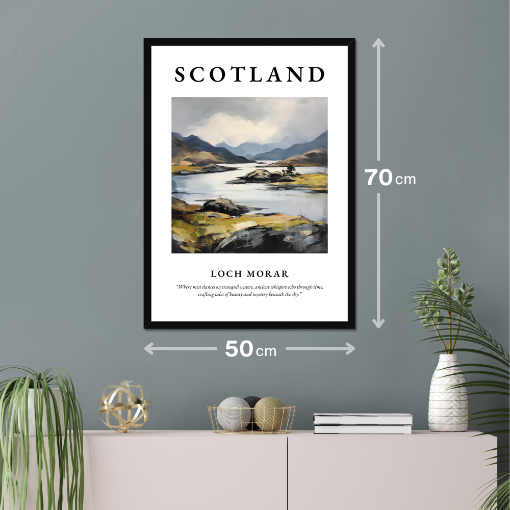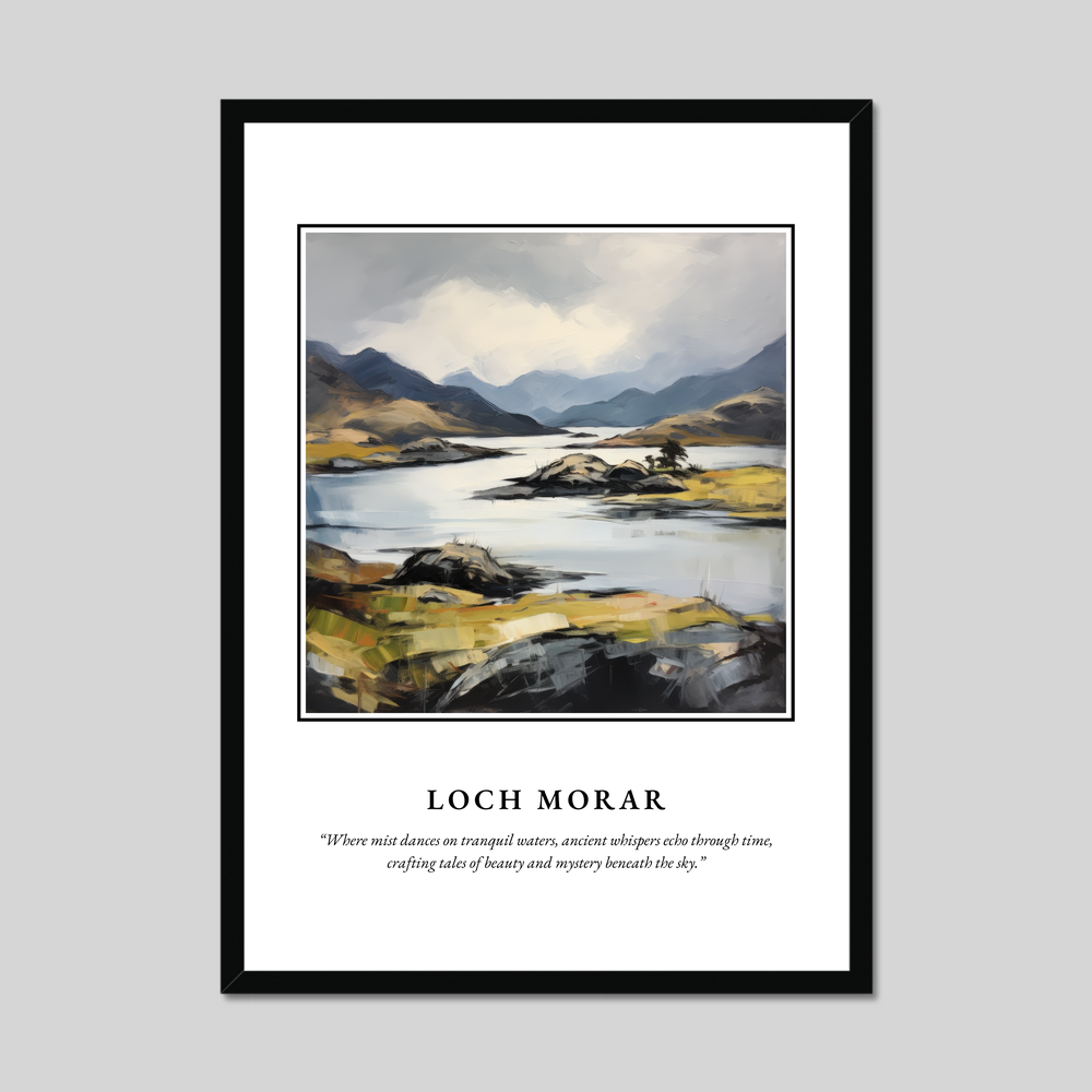 Capture the enchanting essence of Scotland with our striking framed poster print, beautifully showcasing the mesmerising scenes of Loch Morar. At an impressive 50cm x 70cm, this piece commands attention and transforms any space without breaking the bank. Choose from sleek black, crisp white, or a natural wood-effect frame to complement the emotive artwork—a perfect addition for anyone who cherishes the mysteries and allure of the Scottish landscape.