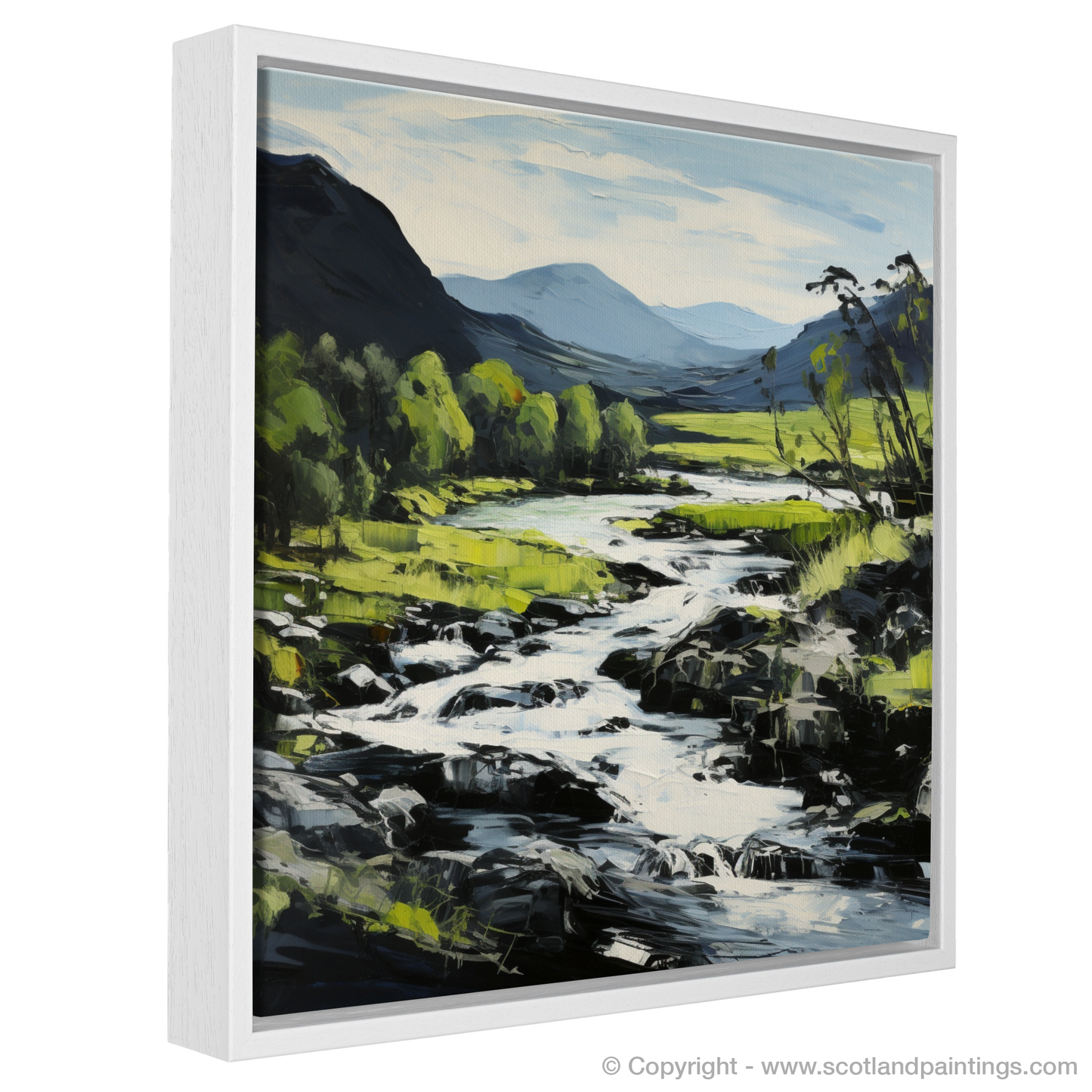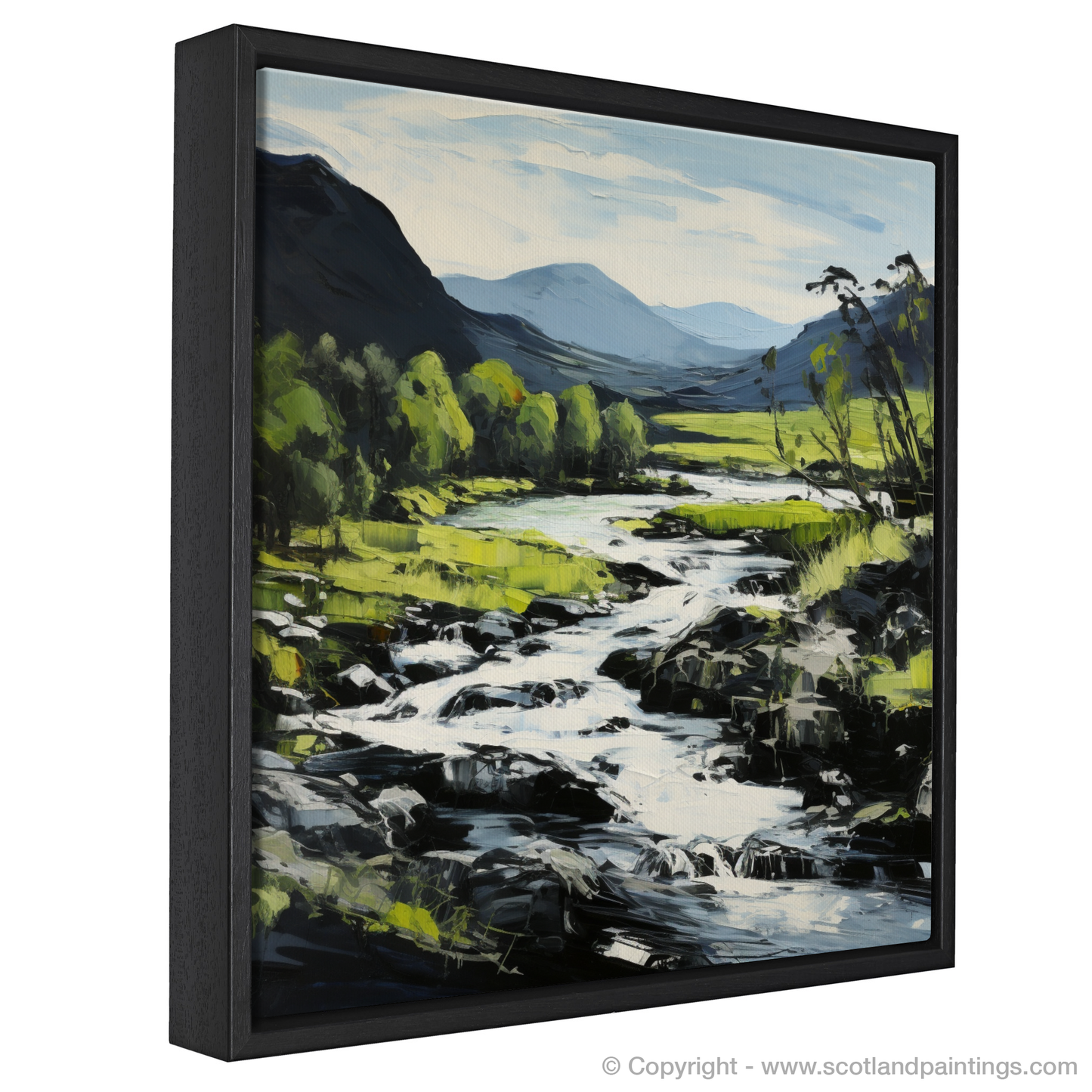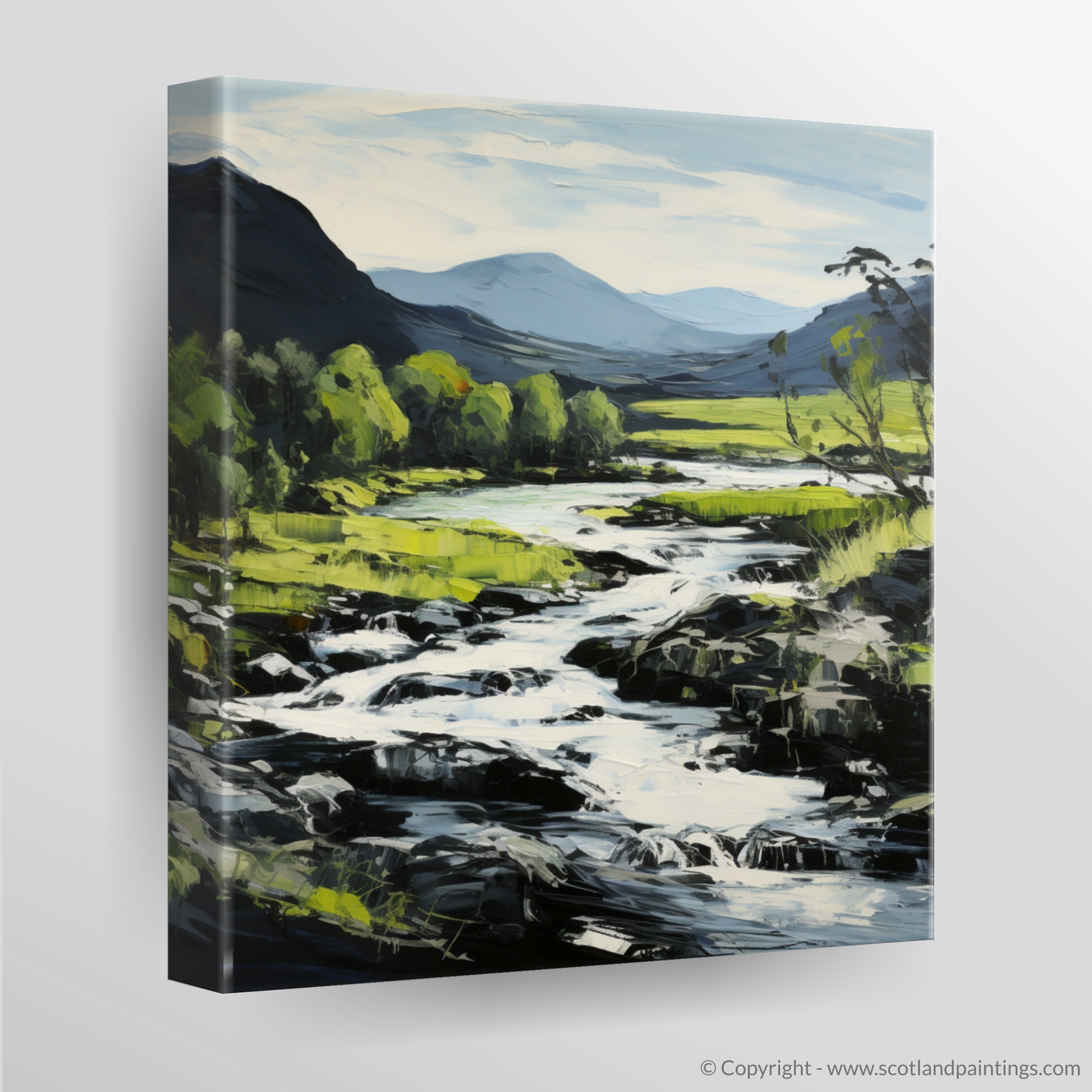 Capturing the untamed beauty of Scotland's natural landscapes, this vibrant print is a visual homage to the River Garry as it meanders through the lush Scottish Highlands on a bright summer day. The dynamic brushstrokes characteristic of Expressionism inject a sense of movement in the flowing water, creating a lively contrast to the serene backdrop. A rich palette of greens highlights the verdancy of the summer foliage, whilst bold whites and deep blues depict the sparkling cascades of the river as it tumbles over rocky crags. Dark, earthy tones provide a grounding effect, underscoring the ruggedness of the Highlands terrain.