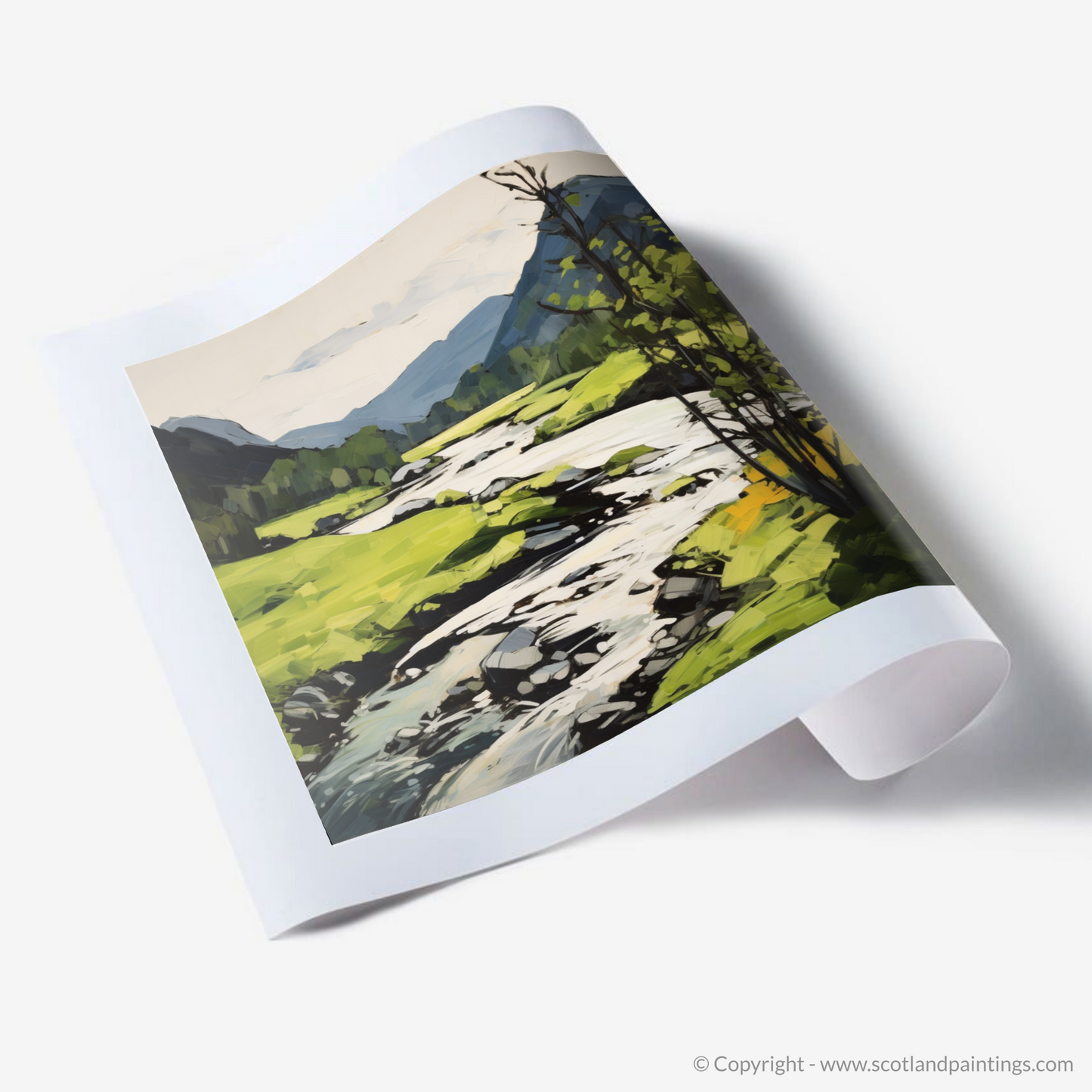 This evocative piece captures the stirring beauty of River Garry as it meanders through the verdant landscapes of the Scottish Highlands during the bountiful summer months. The print, a testament to the vitality of Expressionism, conveys the heightened emotions and psychological resonance one feels in the presence of such natural splendour.