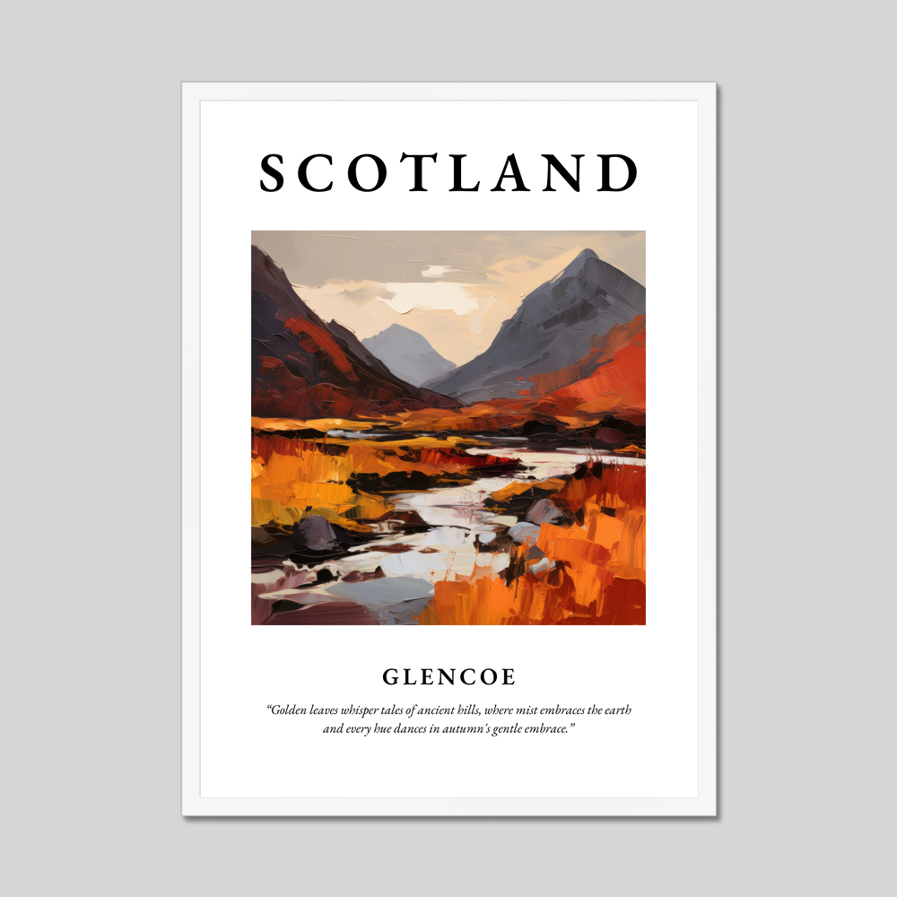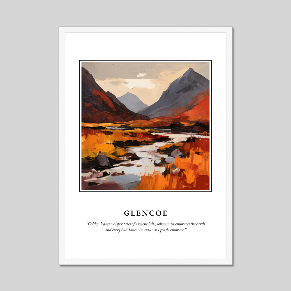 Glencoe, nestled in the heart of the Scottish Highlands, is a place steeped in history and natural grandeur. Known for its breathtaking landscapes, it is a haven for those who find peace in nature's wildest expressions. Whether you have explored its trails and felt the wind on your face or dream of one day standing amidst its splendour, this artwork lets you capture a piece of that magic.