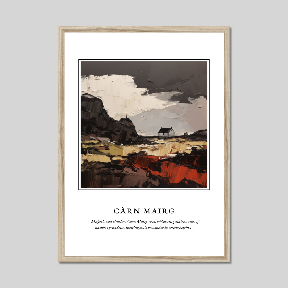 Immerse yourself in the wild beauty of Scotland with our captivating framed poster print, offering a window into the majestic world of Càrn Mairg. Measuring a substantial 50cm x 70cm, this striking piece is a perfect centrepiece for any wall, bringing both grandeur and style to your living space. Available in a choice of black, white, or natural wood-effect frames, it complements various interior décors seamlessly.