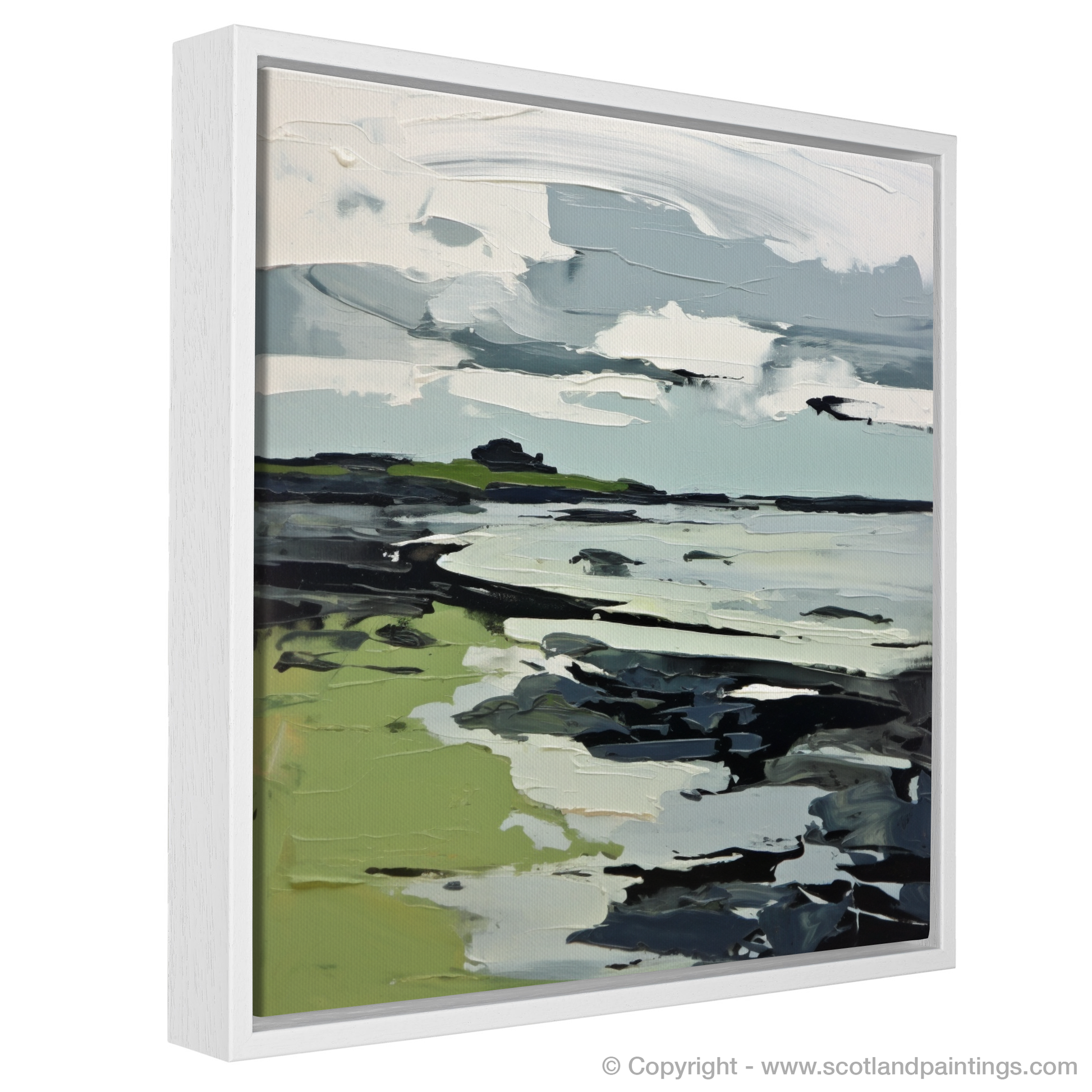 Captured within the vibrant strokes of this expressionist print is the rugged charm of Largo Bay, Fife, rendered with a dynamic and emotive palette. The artwork crafts a rich visual narrative, showcasing the interplay of light and shadow over the beach's distinctive landscapes. Bold sweeps of alabaster and stone grey summon the untamed Scottish skies, often heavy with the promise of rain or the breaking light of day.
