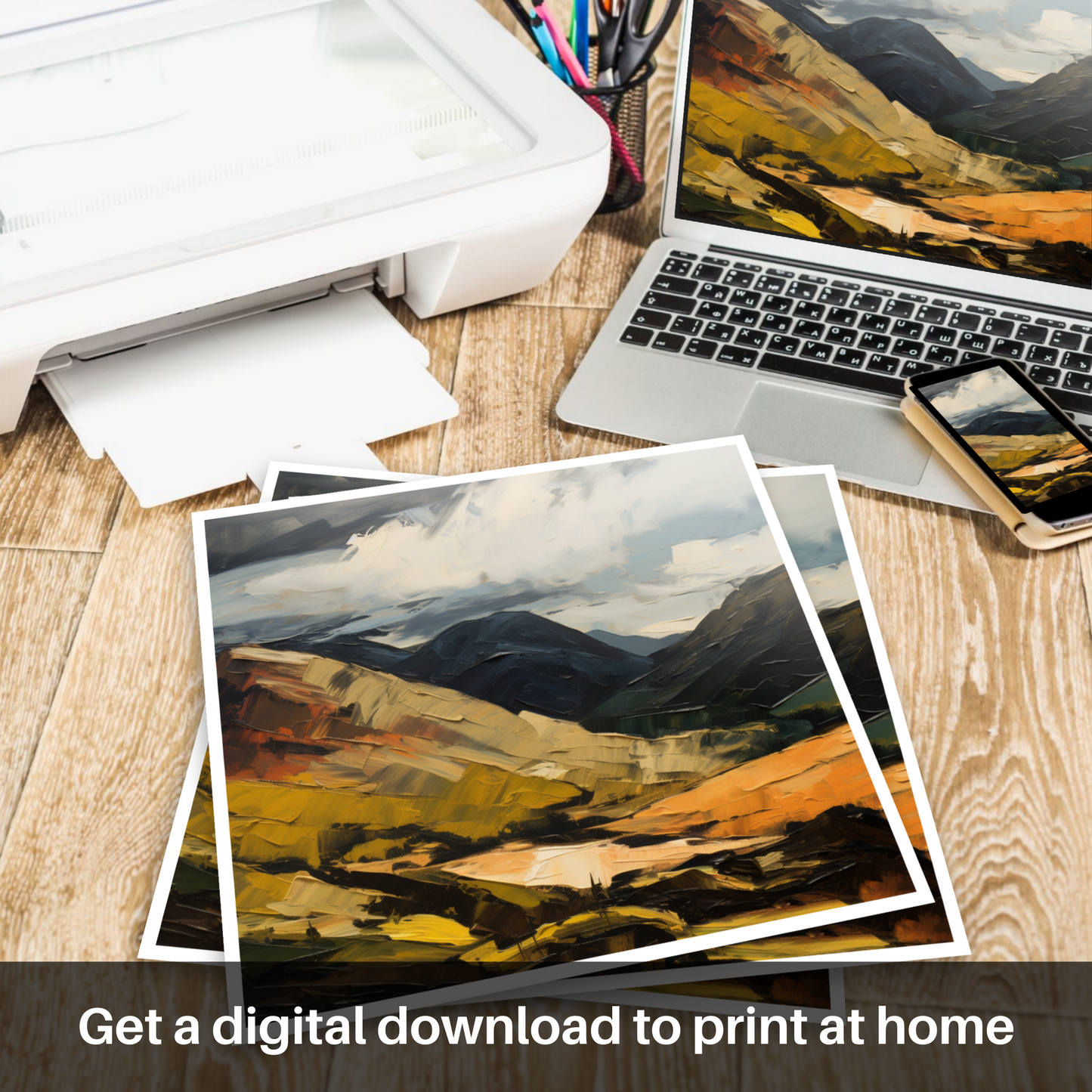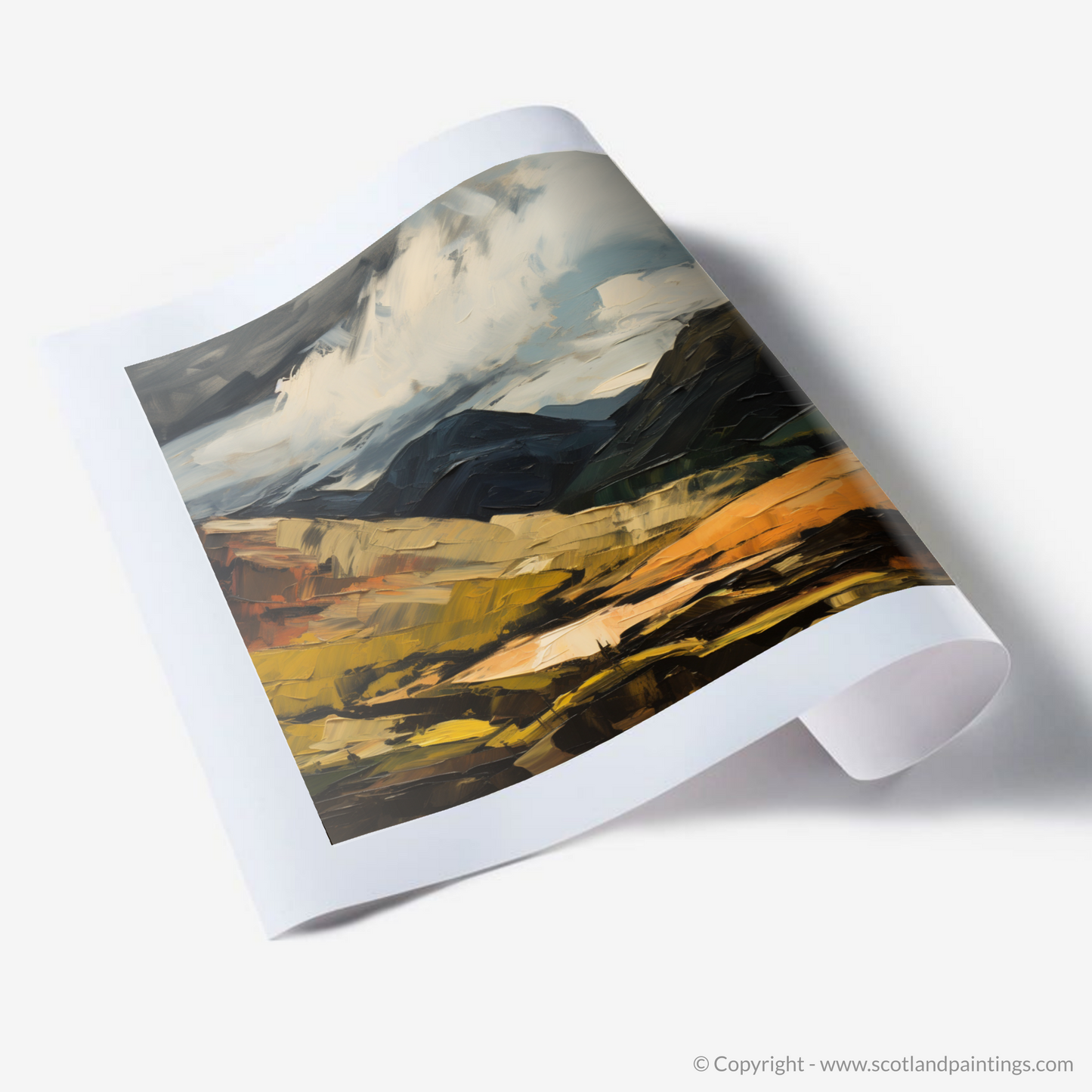 Capture the raw beauty of Scotland's rugged landscapes with this striking expressionist rendition of Ben Lawers. This print showcases a powerful interpretation of one of Scotland's most iconic Munros, with a dynamic blend of bold strokes and a rich palette that breathes life into the natural grandeur of the Highlands.