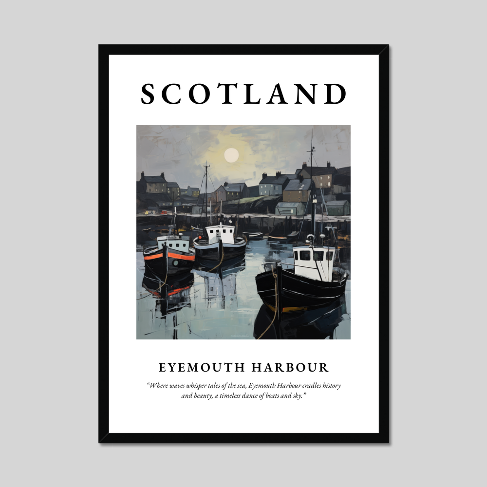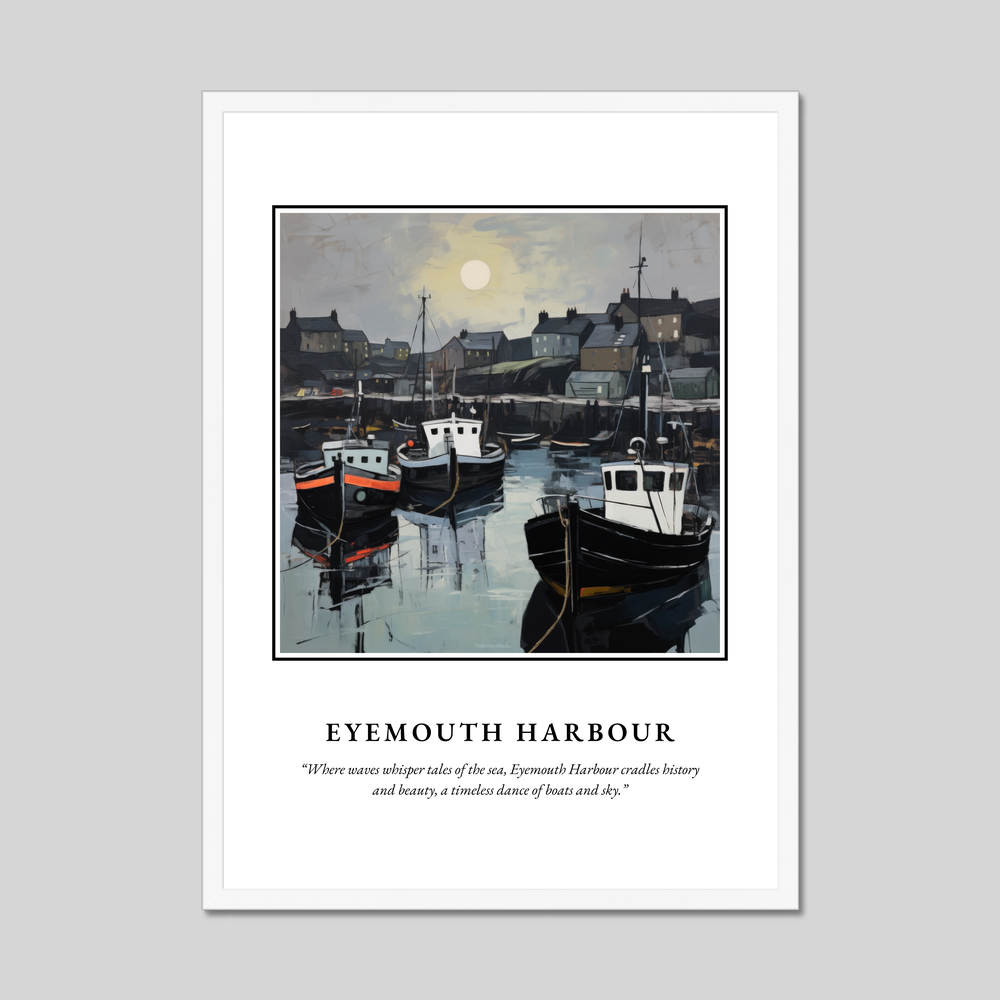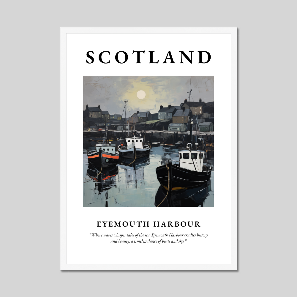 As you gaze upon this poster, you're not merely viewing a painting; you're entering a world where the timeless dance of boats and sky invites you to pause, reflect, and dream. Let Eyemouth Harbour's rich legacy and natural beauty bring a touch of Scotland into your life, whether in fond remembrance of a visit or as a timeless tribute to the enchanting allure of the sea.