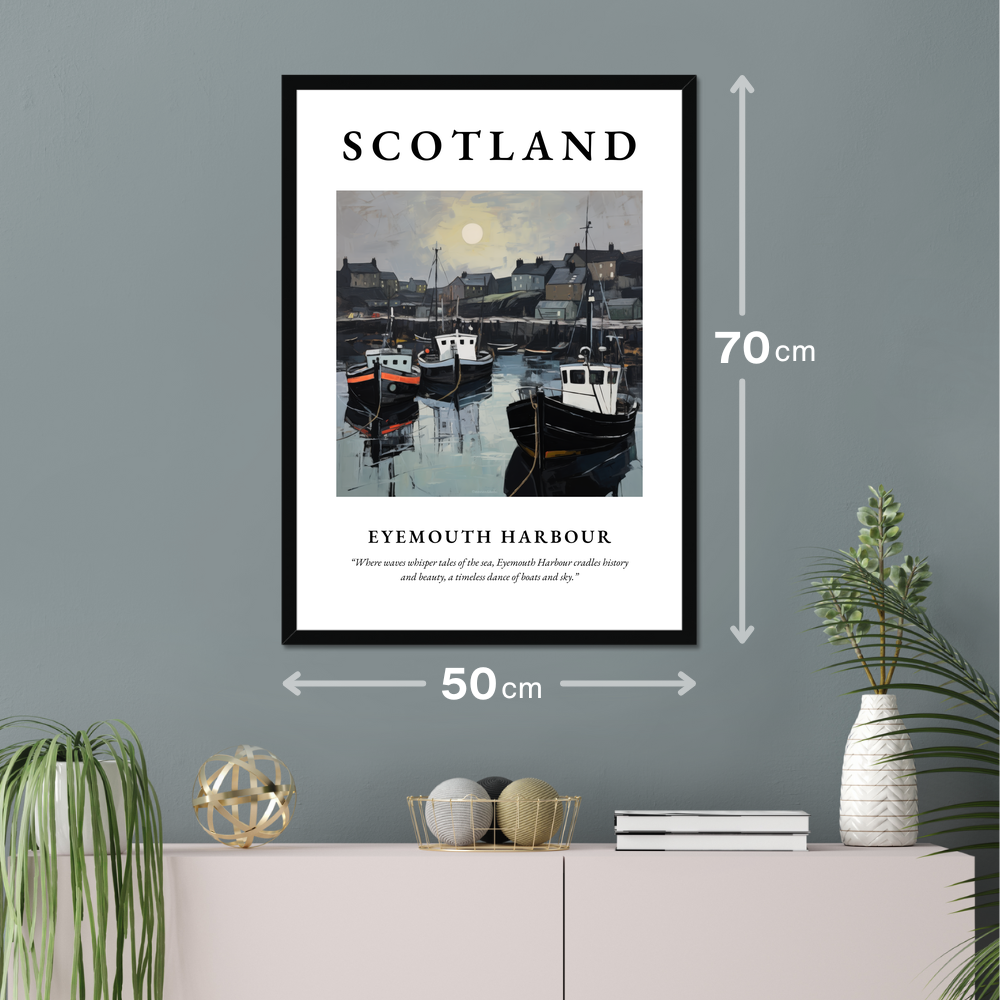 Immerse yourself in the enchanting allure of the Scottish coast with our large, framed poster print from the "Scotland Favourites" collection. Measuring an impressive 50cm x 70cm, this stunning piece captures the vibrant spirit of Eyemouth Harbour—a destination where the whispers of the sea weave intricate tales.
