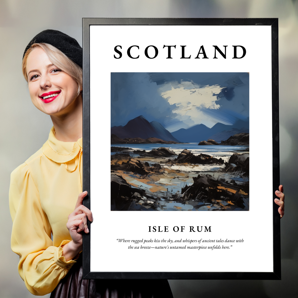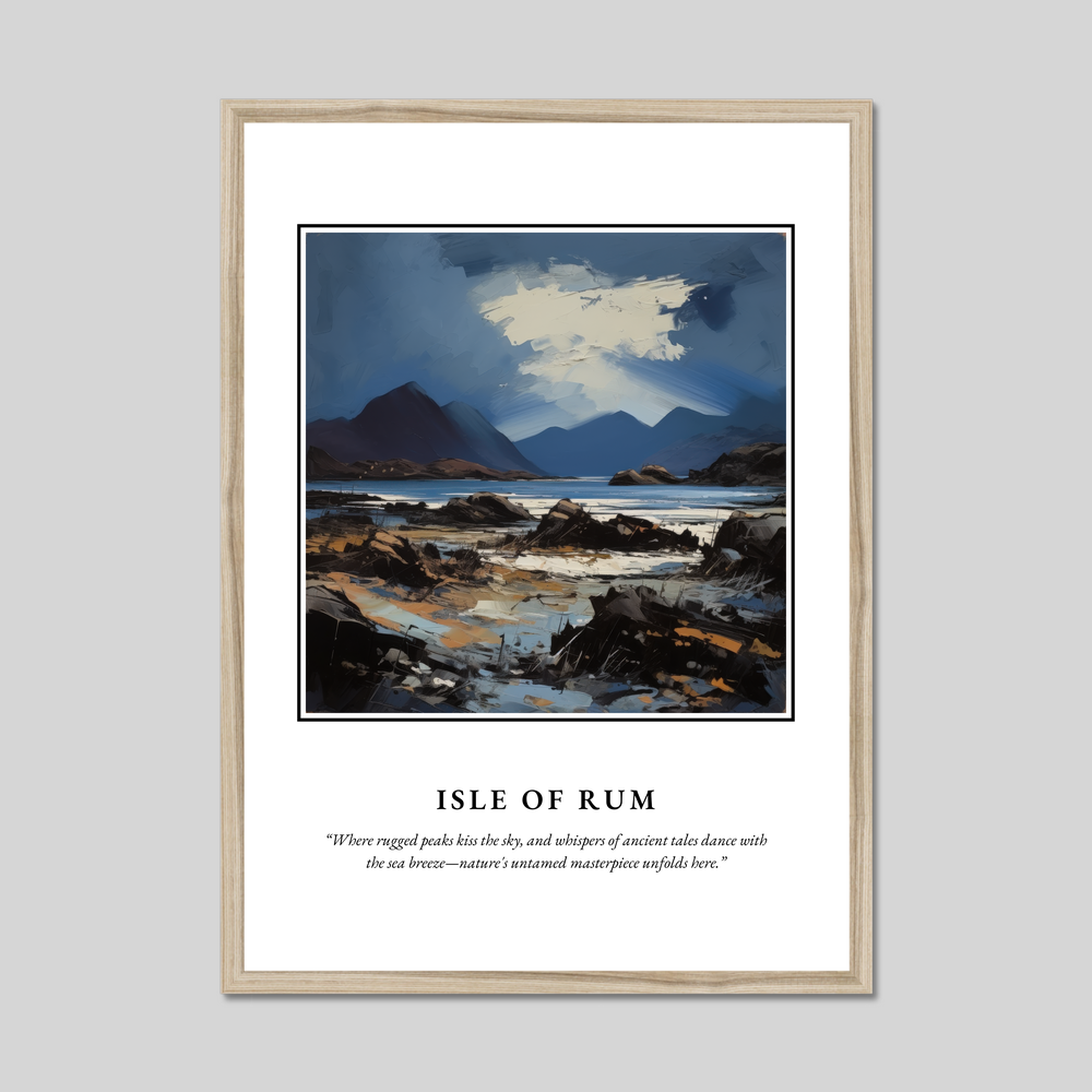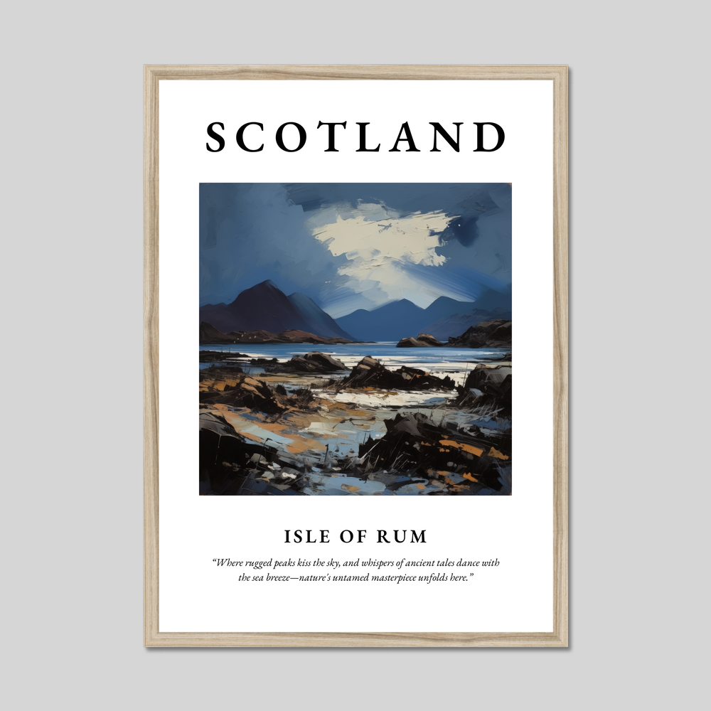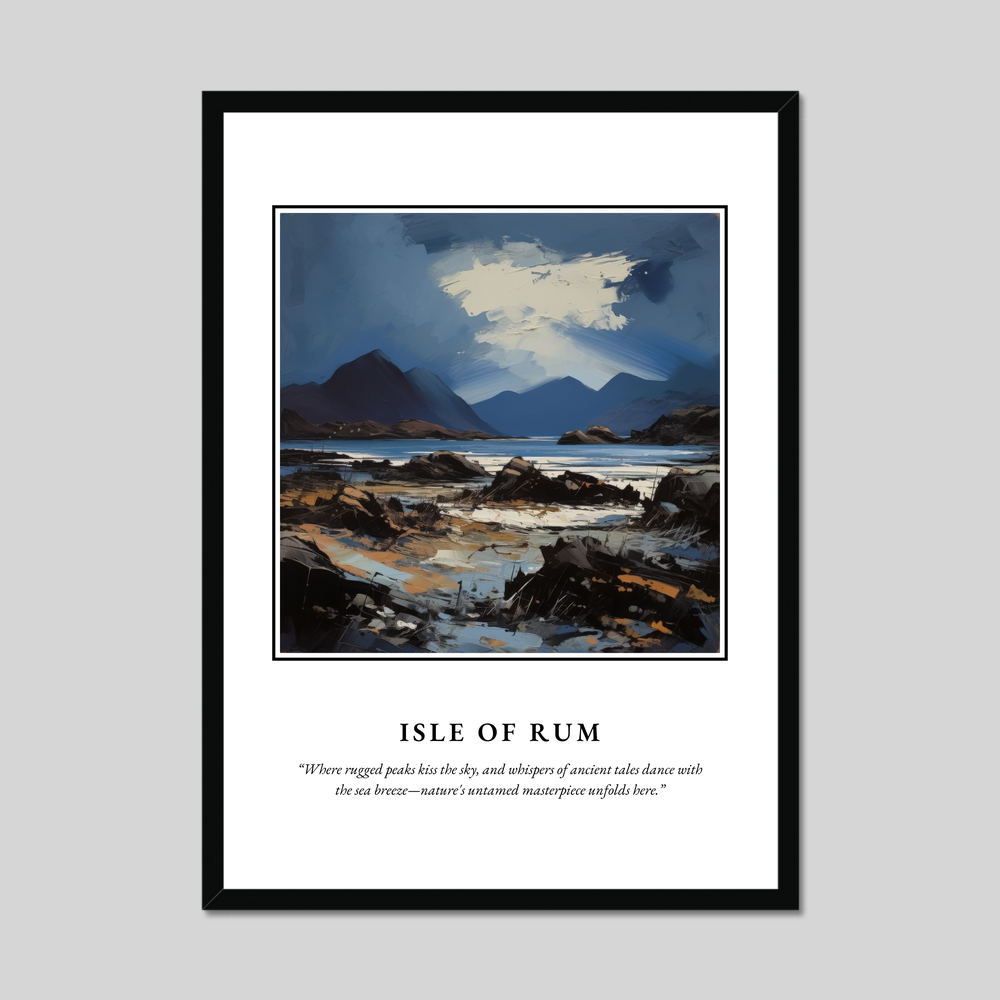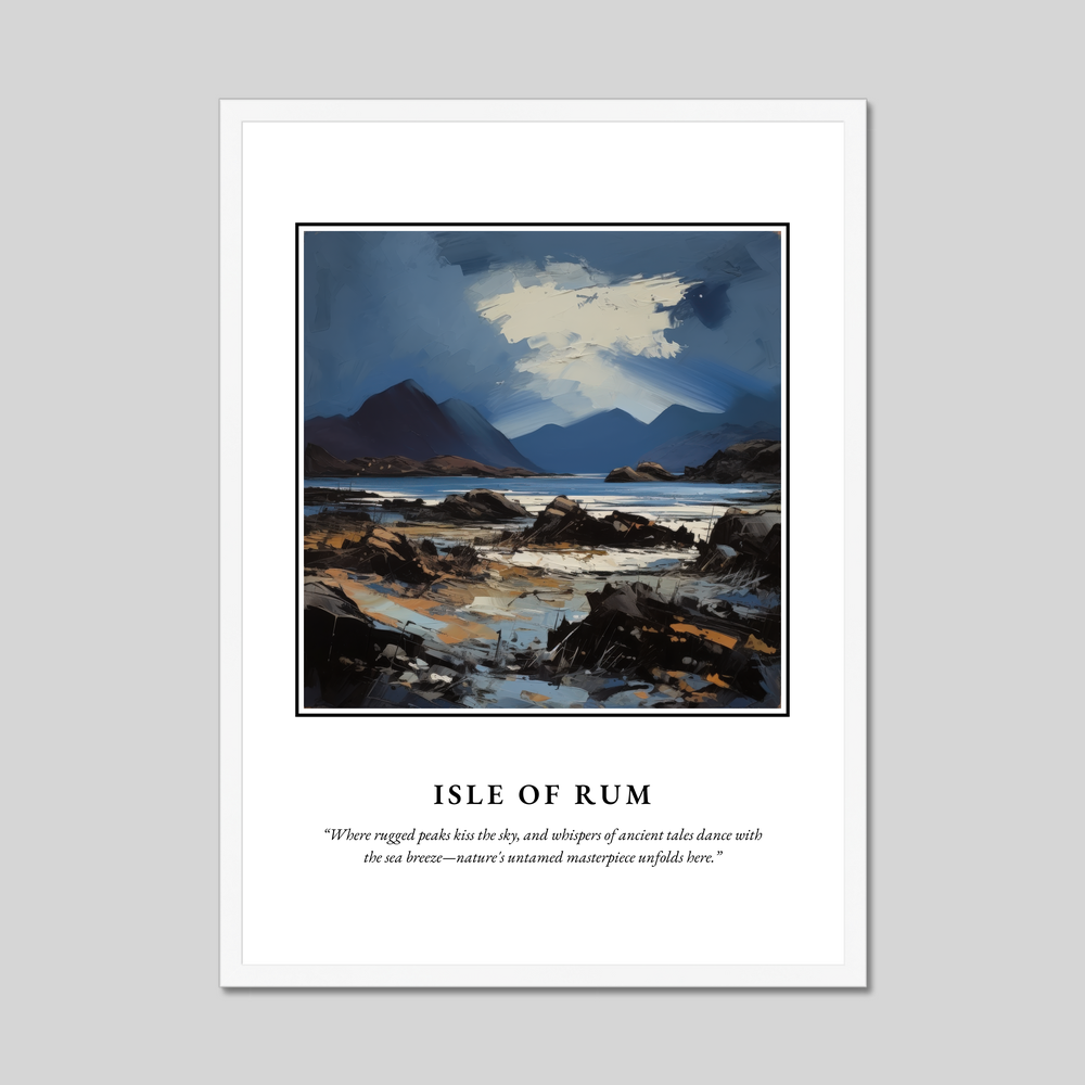 Whether you've wandered these shores yourself, dream of visiting, or simply appreciate the sublime beauty of the Scottish landscape, this framed poster is an invitation to bring the spirit of the Isle of Rum into your world. Let this artful homage to the island inspire your days with the wild and wondrous spirit of Scotland.