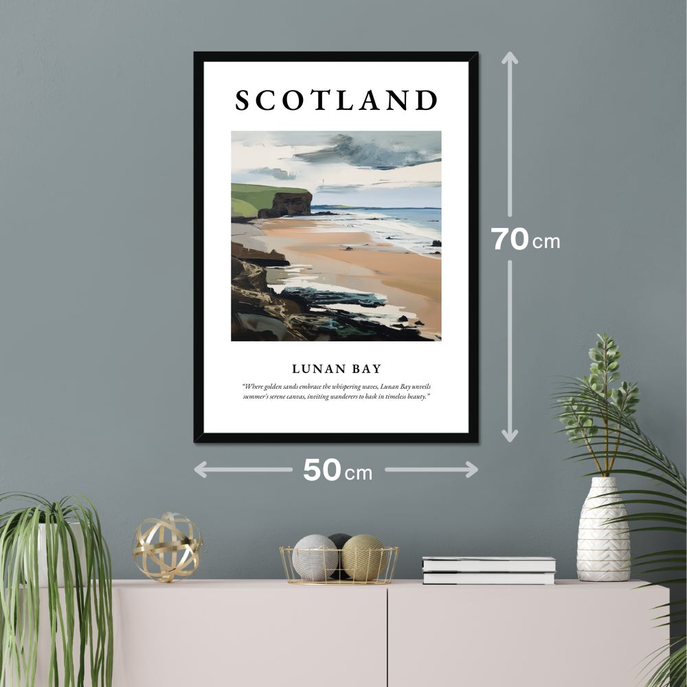 Reimagine your surroundings with this exquisite reminder of Lunan Bay. Whether as a souvenir for someone who's travelled its shores, a gift for an art enthusiast, or a personal celebration of natural beauty, this framed poster print will be an enduring focal point that speaks to the heart.