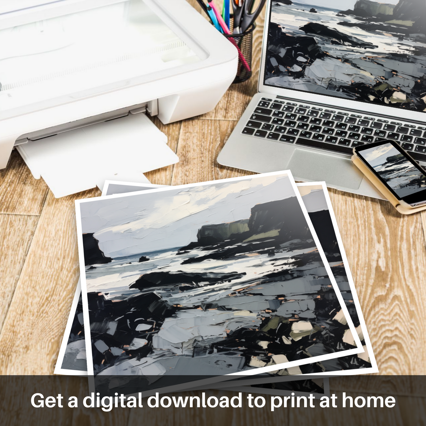 This print does not merely depict a place; it conveys an experience, a moment where the wild Scottish landscape can be felt in its full, tempestuous beauty. Perfect for admirers of abstract and expressionist art, this piece would be a stunning focal point in any room, inviting contemplation and conversation.