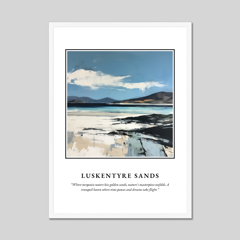 Whether you’ve wandered these peaceful shores, dream of visiting, or simply seek to capture a moment of Scottish paradise in your home, this framed poster print brings the spirit of Luskentyre Sands to life, offering a daily escape to a place where nature’s splendour knows no bounds.