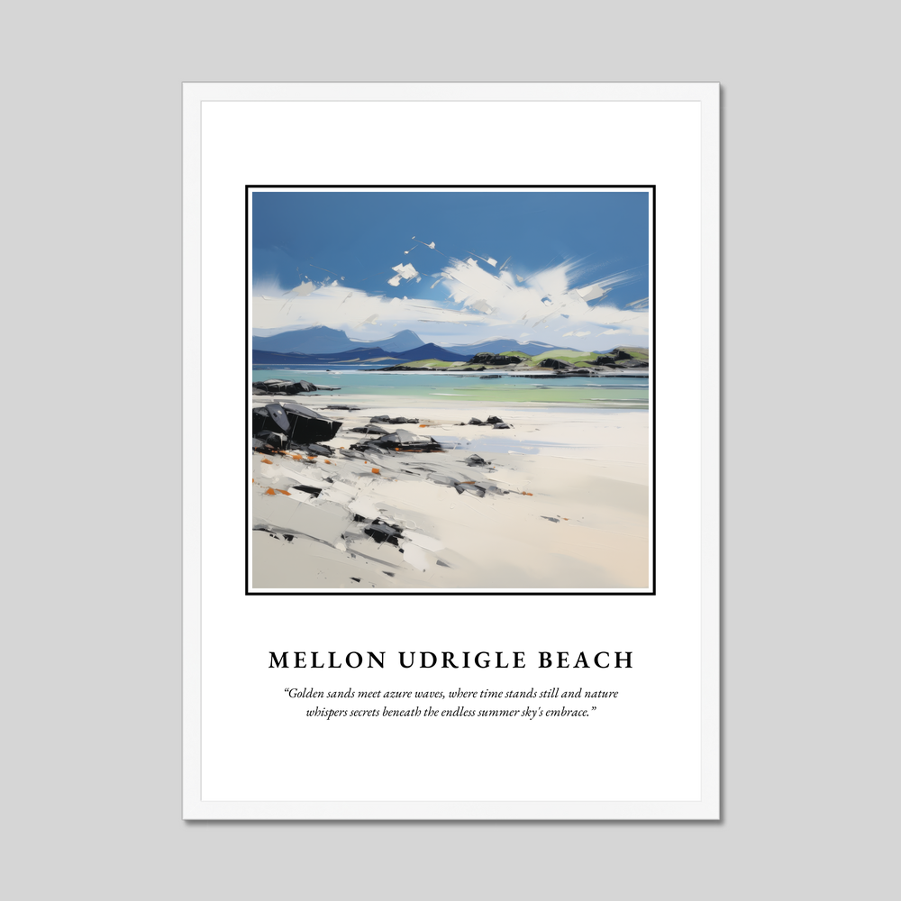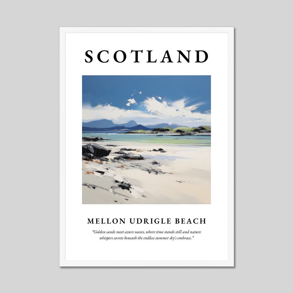 Whether you've wandered these shores yourself or simply dream of their beauty, this artwork brings the essence of Mellon Udrigle into your everyday life. Revisit the captivating landscapes of Scotland whenever you pause to admire this stunning piece, and let it remind you of the endless beauty and peace that nature offers.
