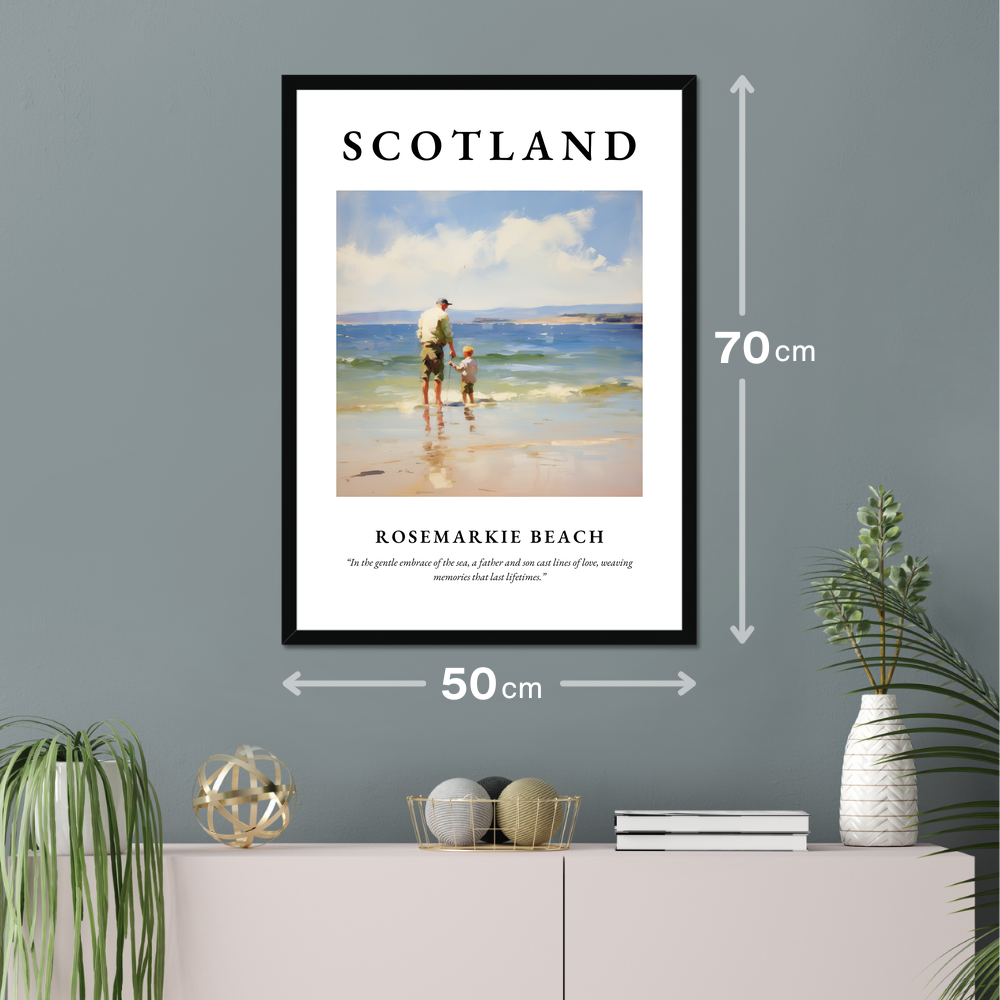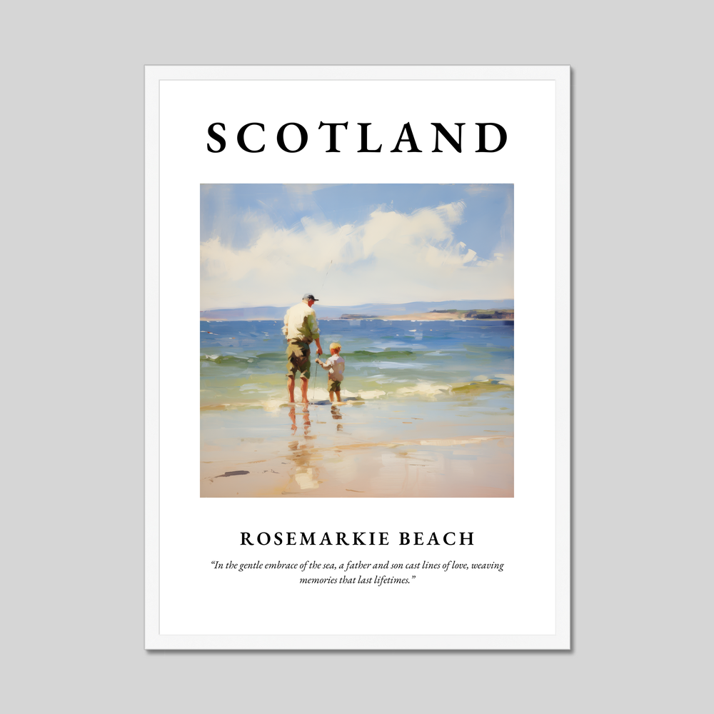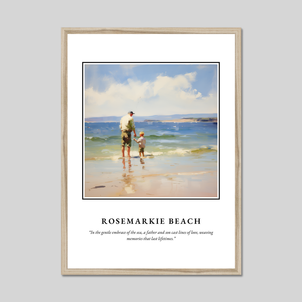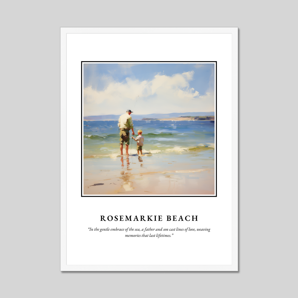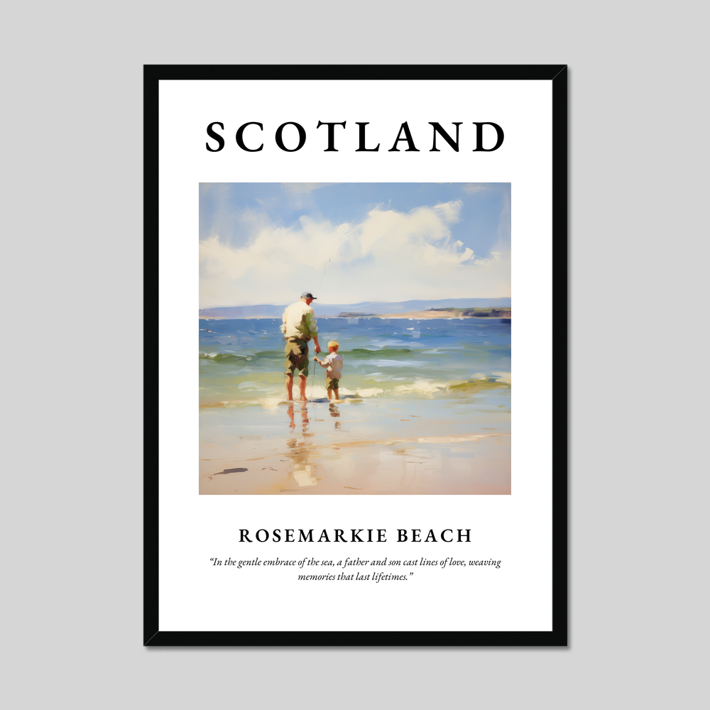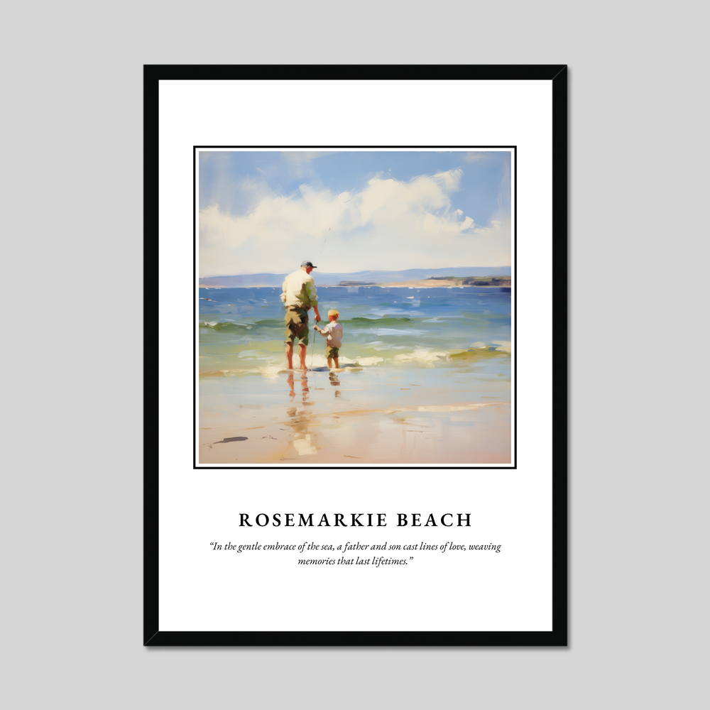 The painting’s depiction of familial bonding captures the essence of Rosemarkie’s charm, a testament to the special moments one can create on its sands. Whether you have visited these shores, wish to, or simply appreciate the art of capturing life's tender scenes, this framed poster print invites you to celebrate and preserve the spirit of Scotland’s coastal allure.