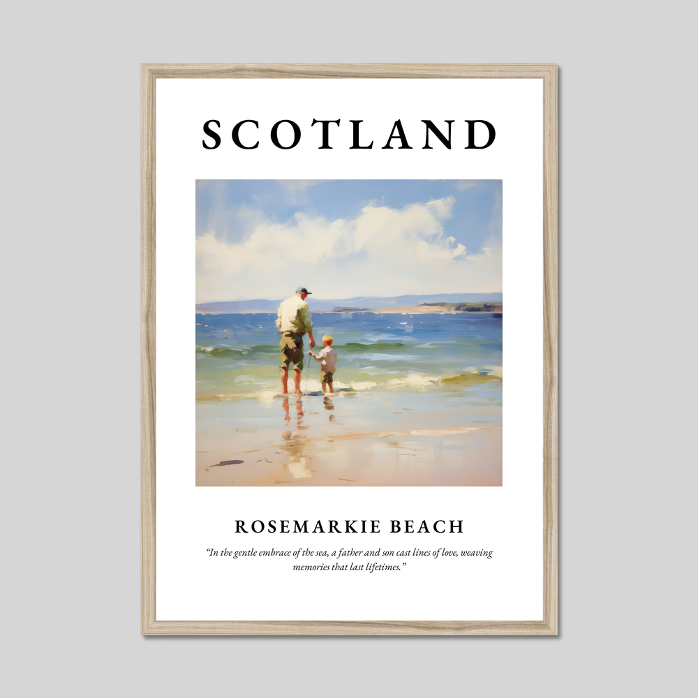 Discover the sublime beauty and heartfelt nostalgia of Scotland with our framed poster print, an exquisite homage to the cherished shores of Rosemarkie Beach. Measuring an impressive 50cm x 70cm, this poster makes a bold statement, delivering a captivating slice of art and sentiment to your living space. Choose from black, white, or natural wood-effect frames to perfectly suit your décor.