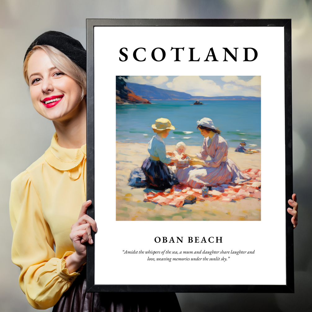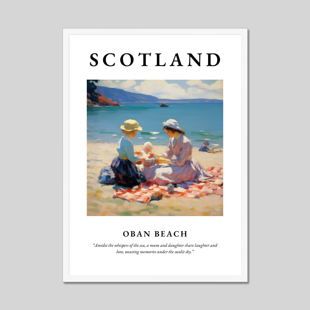 Whether you hold a personal connection to Oban, dream of its distant shores, or simply appreciate the allure of Impressionist art, this framed poster print offers a window to a world of warmth and nostalgia. Embrace the tranquillity and joy of Oban Beach in your space, inviting the whispers of the sea and the laughter of loved ones into your home.