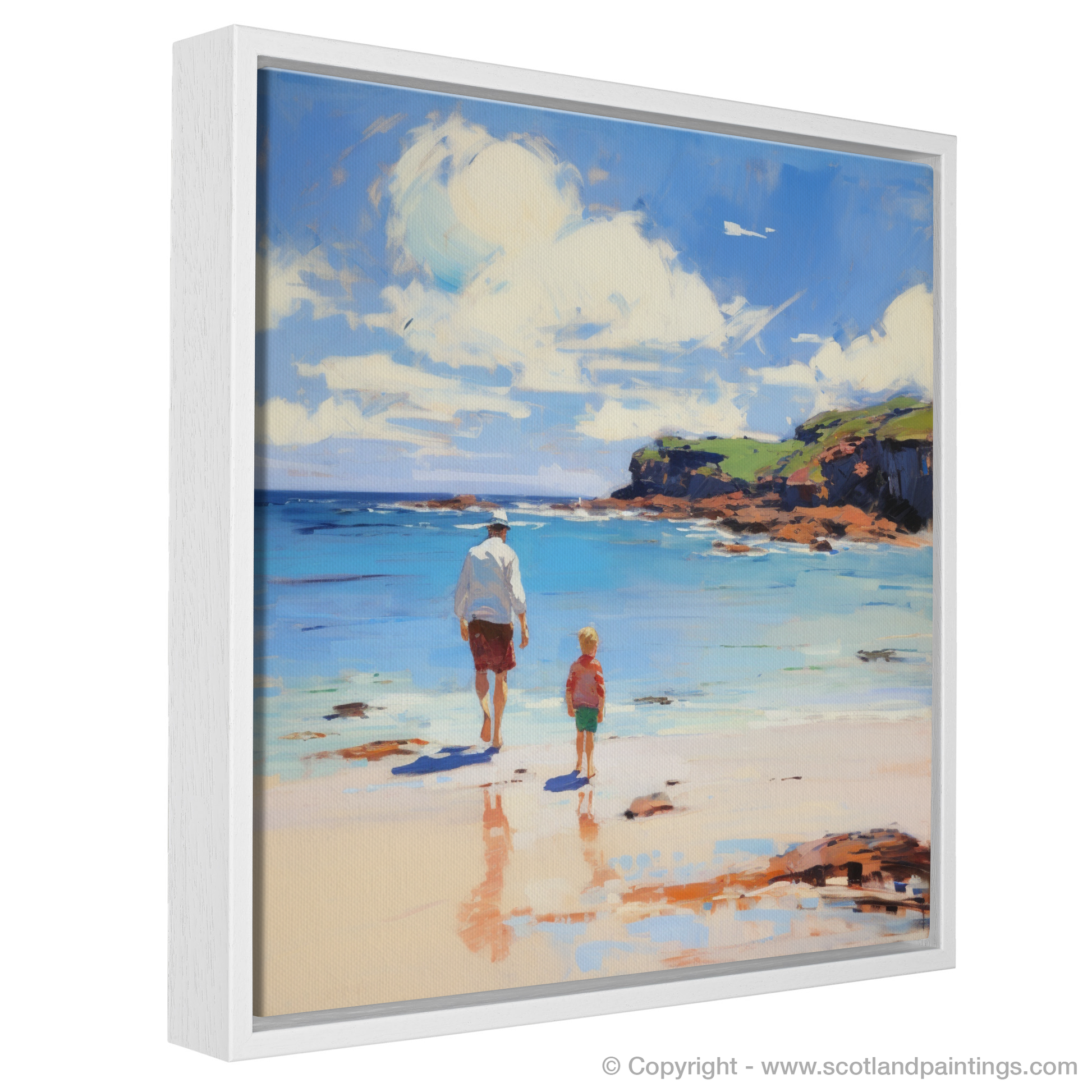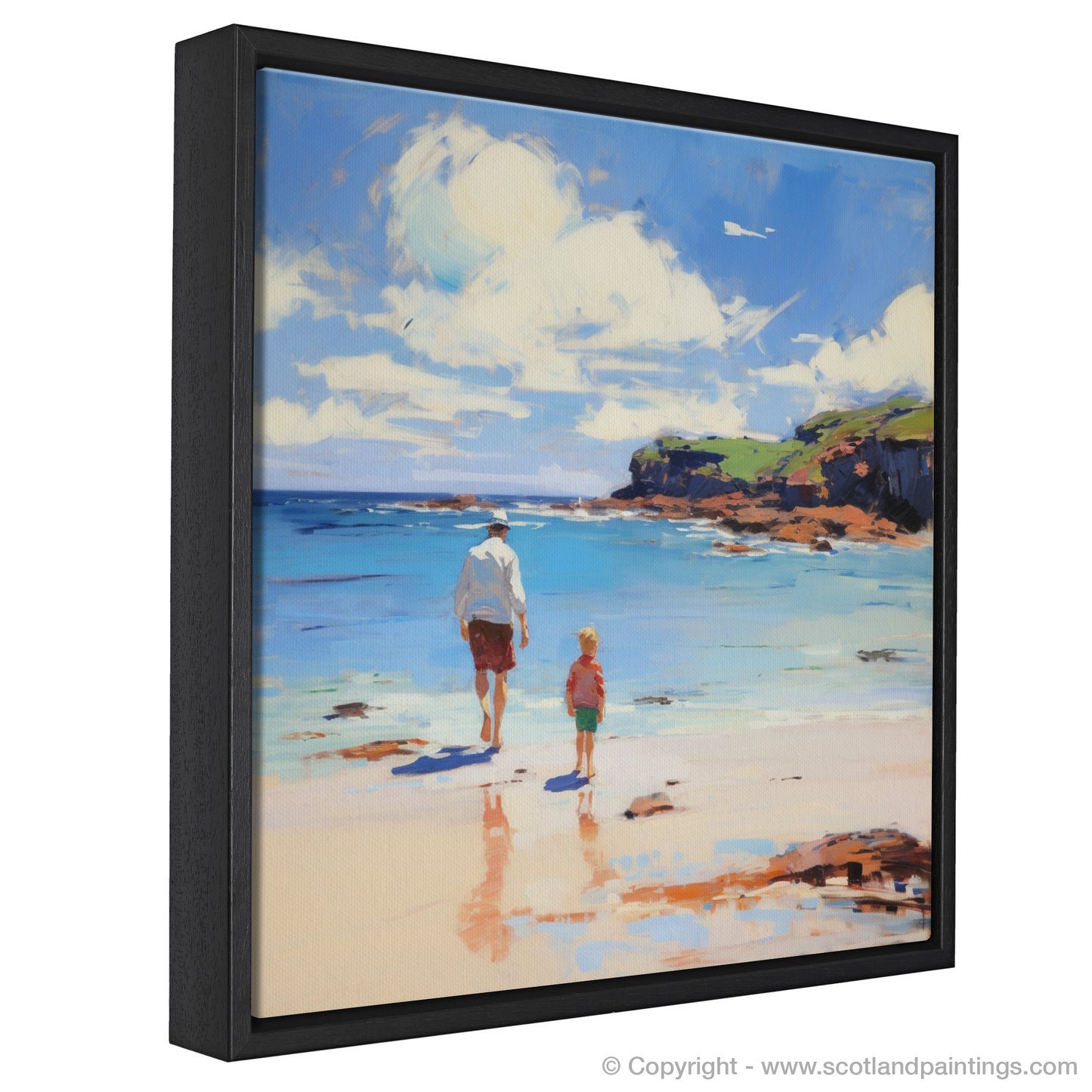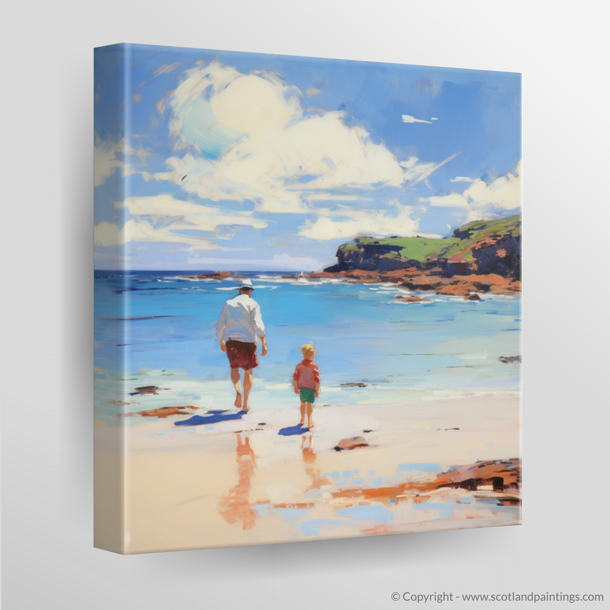 This particular print from our 'Family' collection invites contemplation of the simple yet profound joys of familial connections, set in a landscape where nature's grandeur is on full display. The canvas artfully intertwines the raw beauty of the Scottish coast with the warmth of human connection, offering viewers a serene reflection on cherished moments and the bonds that transcend time.