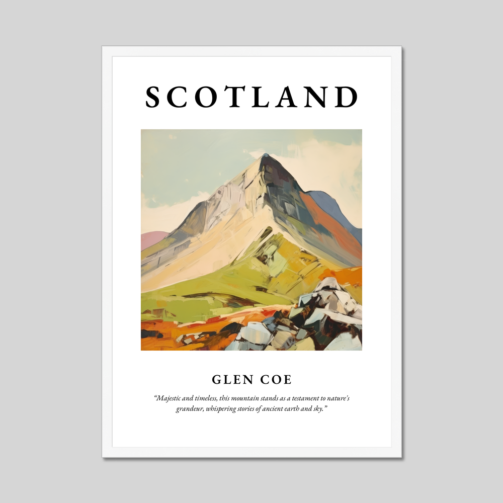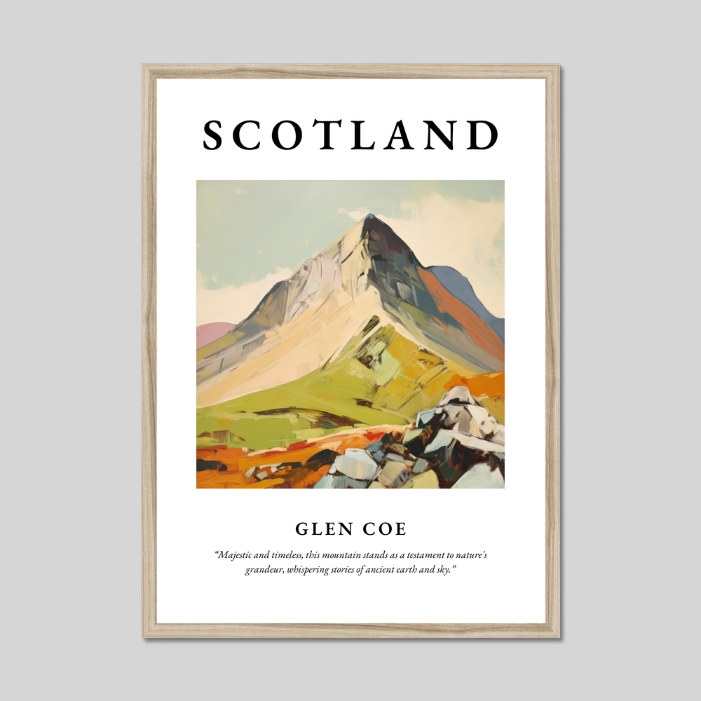 Immerse yourself in the enchanting beauty of Scotland with our captivating framed poster print of Glen Coe, a masterpiece from our “Iconic Scotland” collection. With dimensions of 50cm x 70cm, this stunning piece is an impressive addition to any space, offering a remarkable display without breaking the bank. Choose from sophisticated black, classic white, or a natural wood-effect frame to perfectly complement your décor.