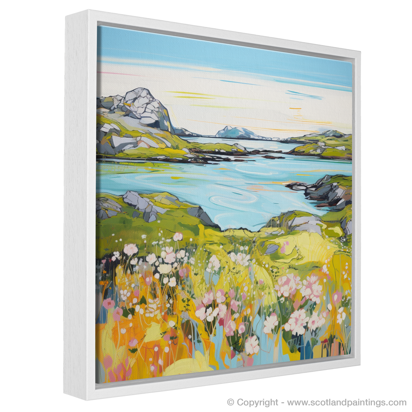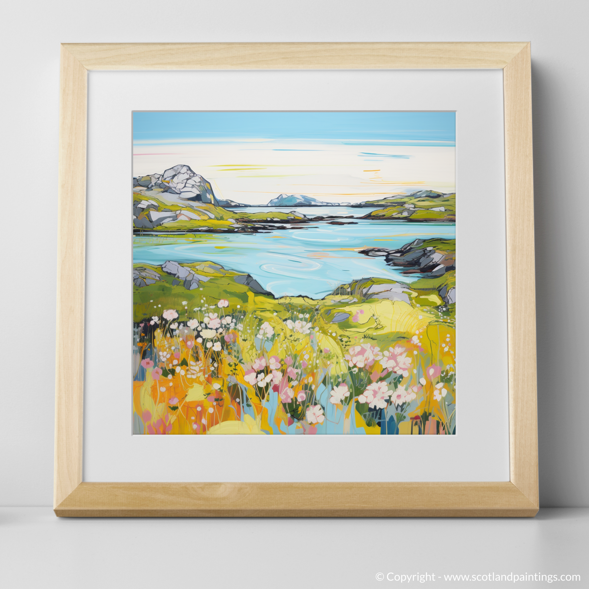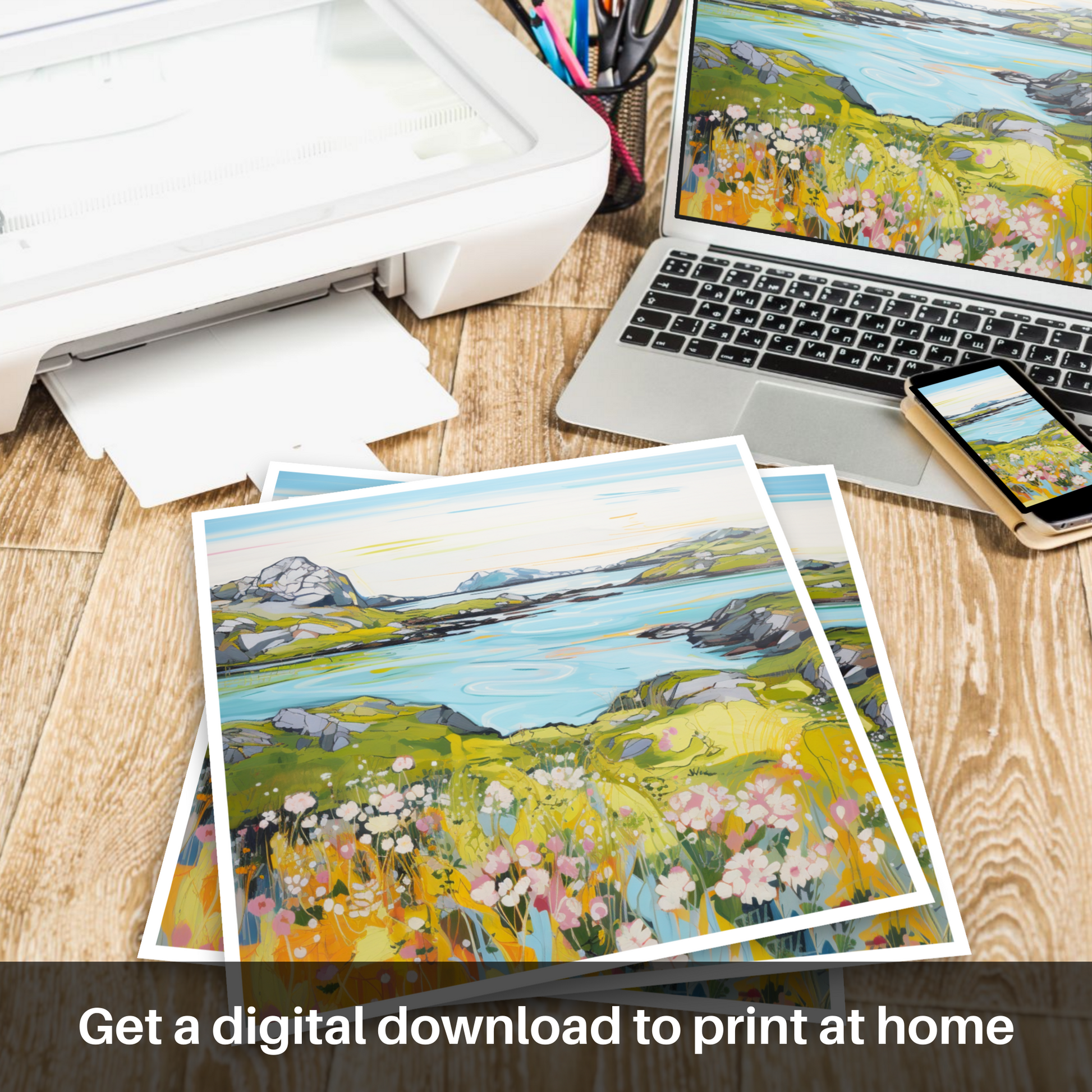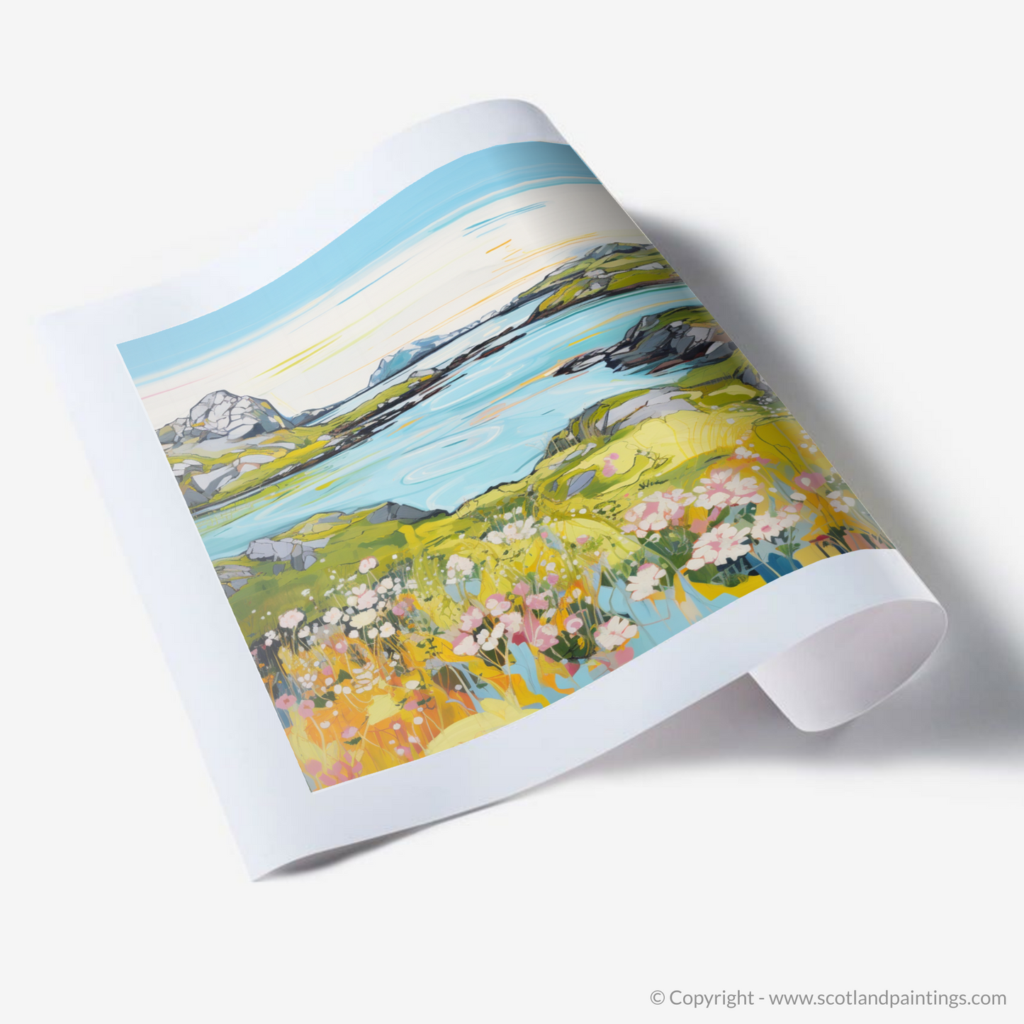 Capturing the effervescent charm of the Isle of Scalpay in the Outer Hebrides during the vibrant summer months, this exquisite print brings to life the dynamic beauty of the Scottish landscape through a contemporary lens. The piece exudes a vivacity and motion through its use of bold, sweeping brushstrokes that articulate the gentle dance of wildflowers in the breeze.