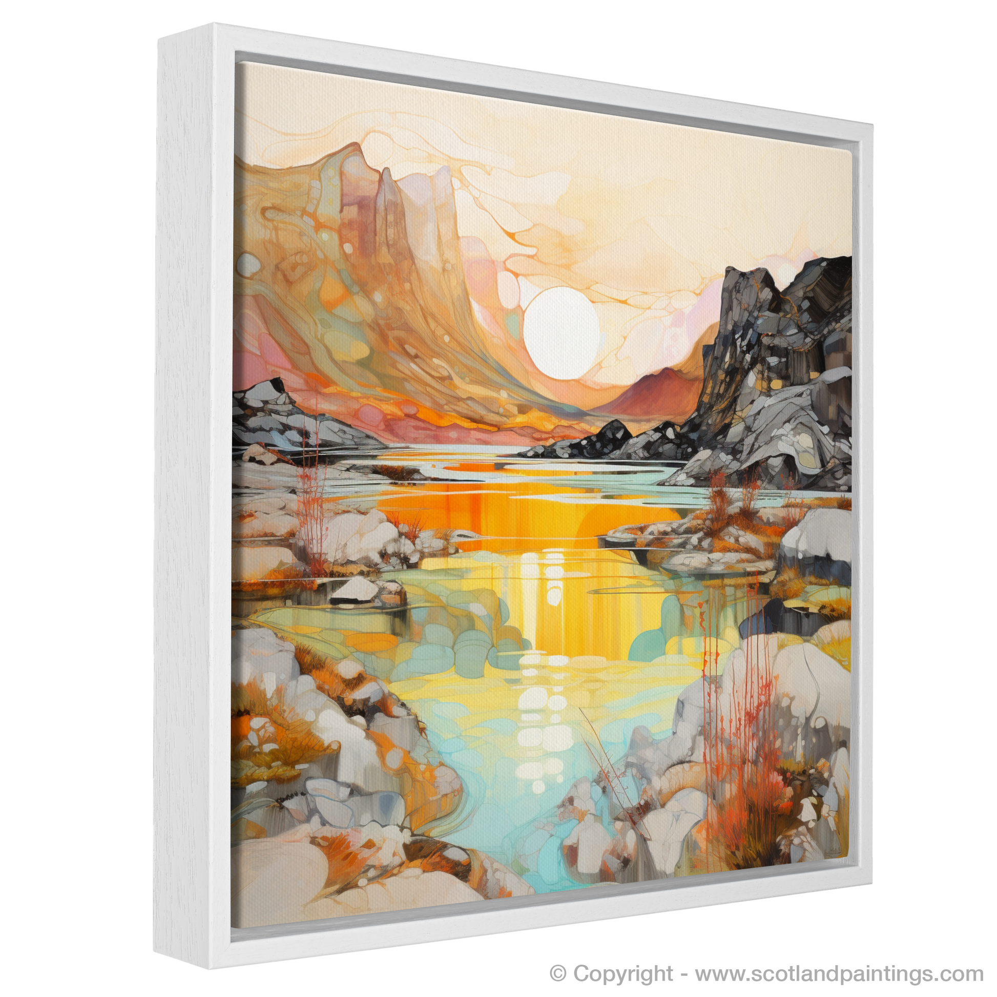 The artistic rendering of the light and landscape in this print offers a contemporary twist on the timeless allure of Scotland's natural beauty. It is a captivating piece that invites viewers to lose themselves in the serene grandeur of the Scottish summertime. This print from our 'Scotland in Summer' collection is a stunning tribute to one of the most picturesque corners of the British Isles, promising to bring a touch of Skye's enchantment into any space.
