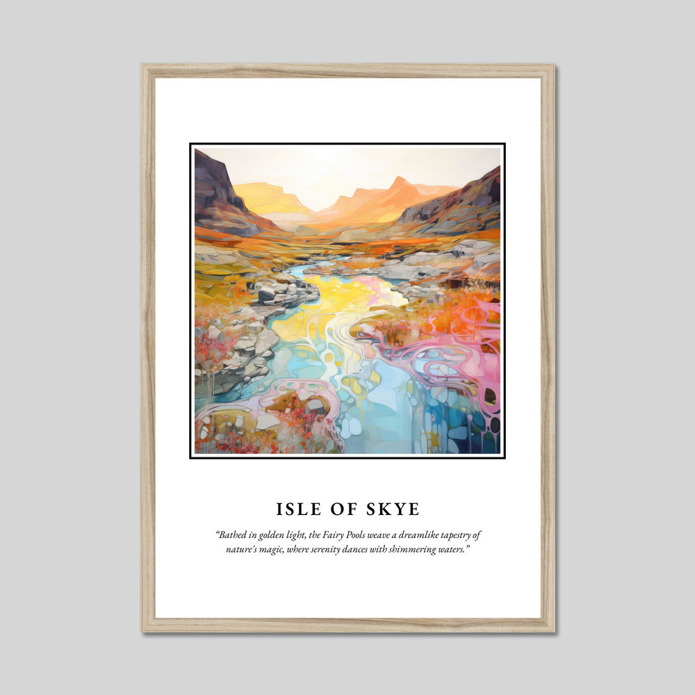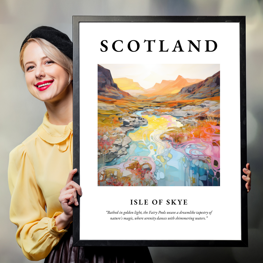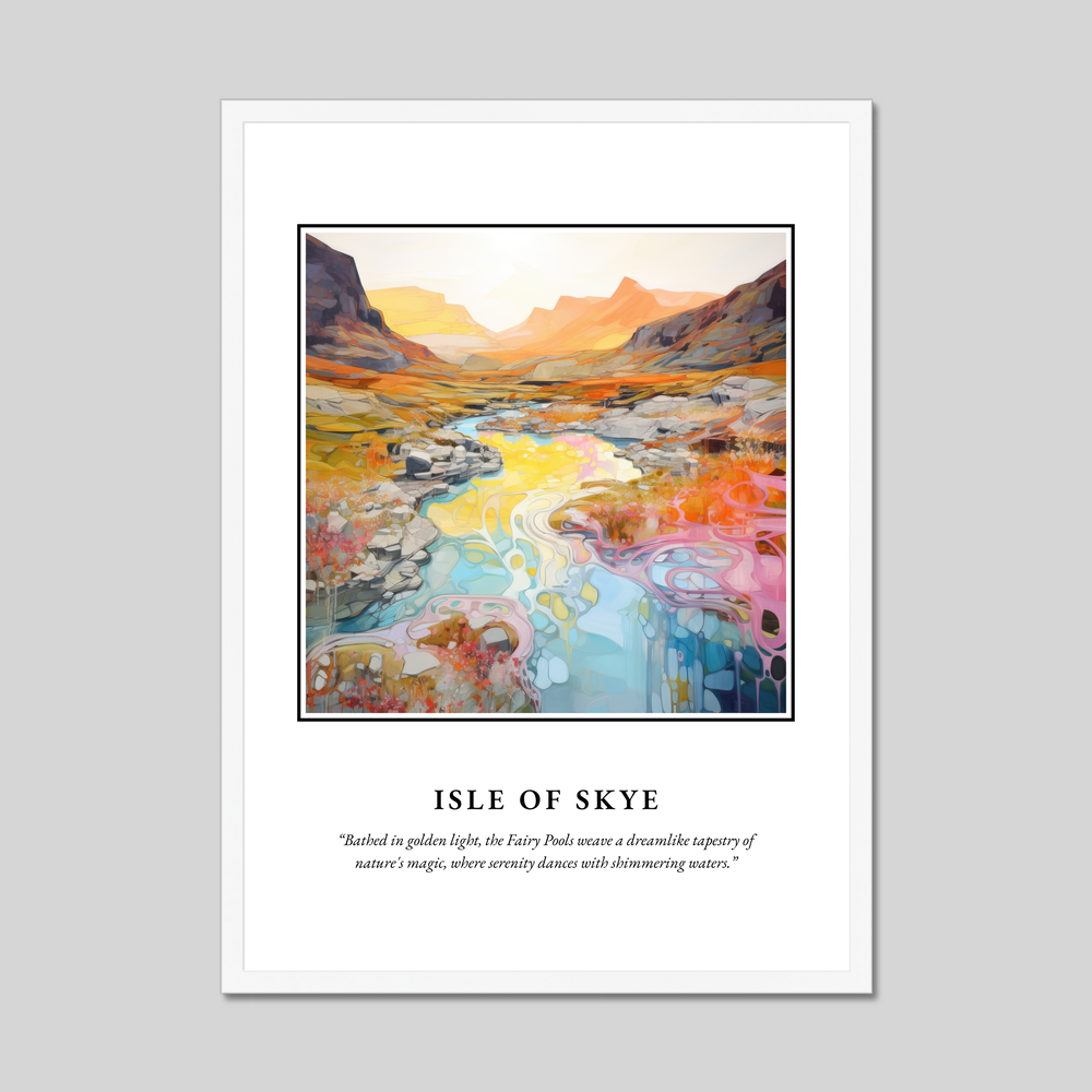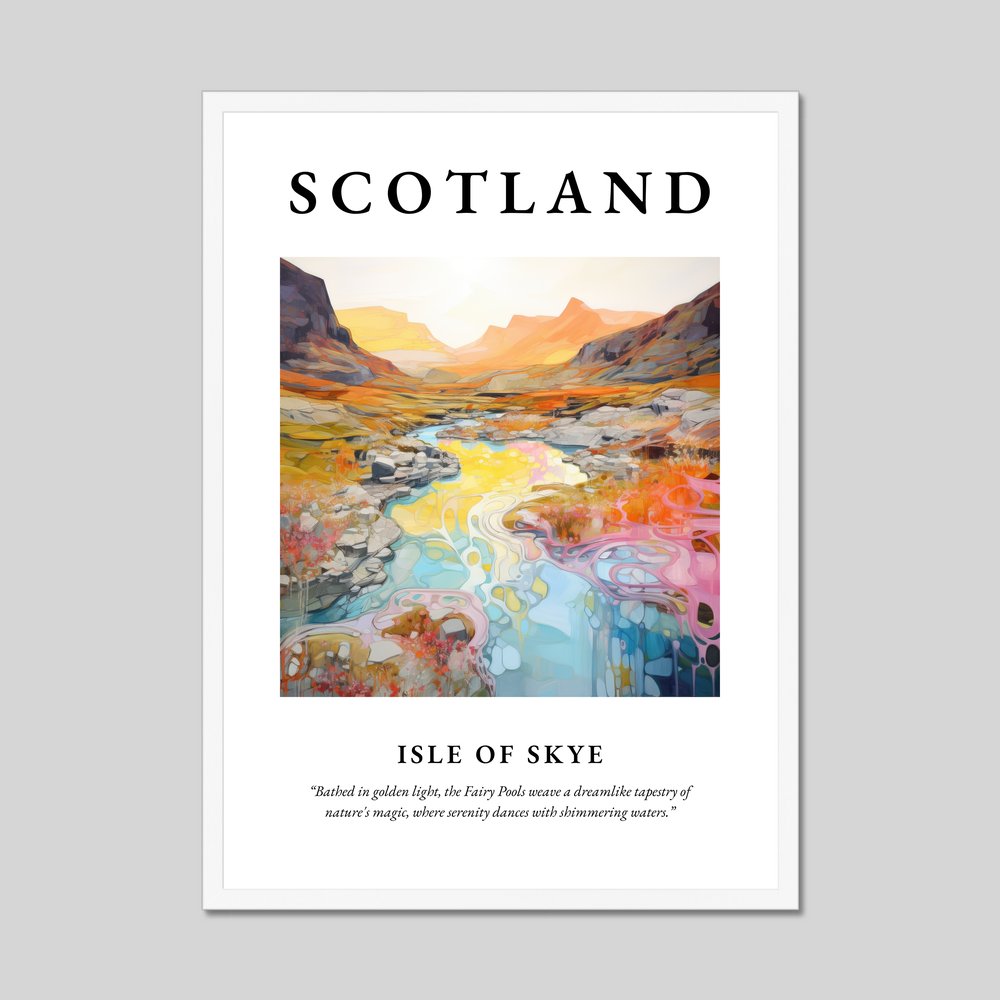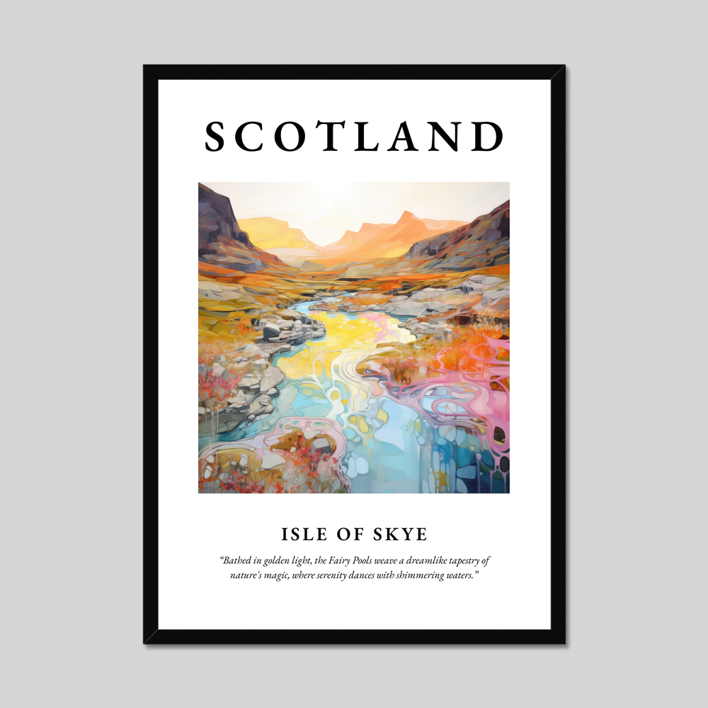Whether it’s the vibrant landscapes, the whispers of ancient myths, or the serene tranquility that lures you to Skye, this framed poster is a perfect homage to one of Scotland's most captivating destinations. Let it serve as a window to the highlands, a connection to cherished memories, or an invitation to explore the mysteries of the Isle of Skye.