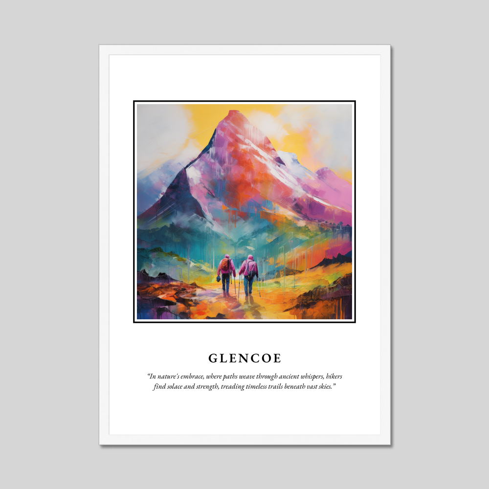 Available in sleek black, elegant white, or a natural wood-effect frame, you can tailor this piece to complement any interior decor. This poster is a must-have for those with fond memories of visiting Glencoe, those with connections to the area, or anyone who appreciates modern art. Its simplicity in style yet depth in portrayal is sure to resonate with a wide audience.