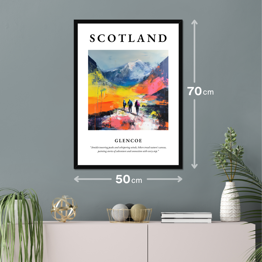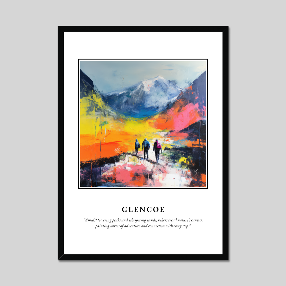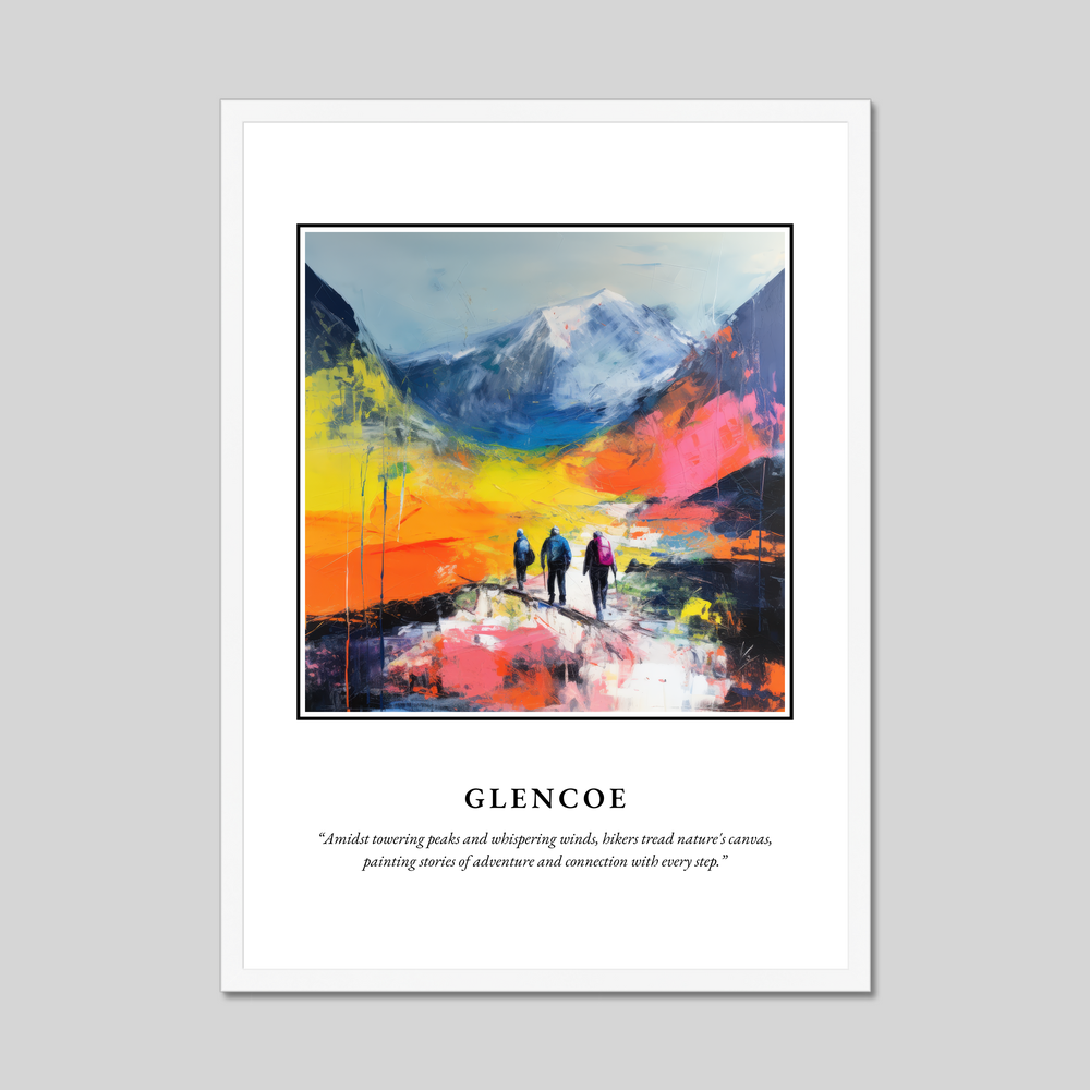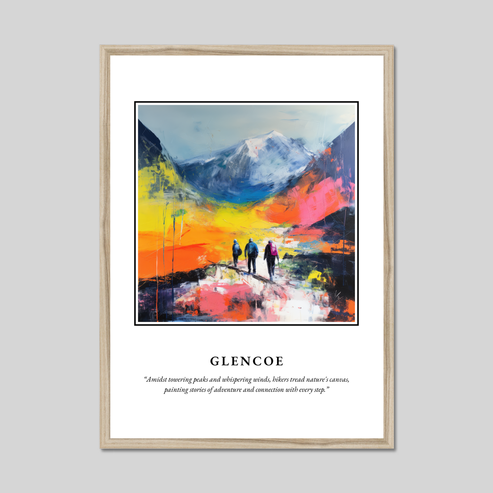 Step into the mesmerising allure of the Scottish Highlands with our framed poster print, where the spirit of Glencoe is beautifully encapsulated in a stunning display of Abstract Impressionism. At 50cm x 70cm, this poster is not just a decorative piece; it's an invitation to explore the untamed beauty of one of Scotland's most iconic landscapes. Available in sleek black, classic white, or a warm natural wood-effect frame, it complements any interior with a touch of elegance and drama.