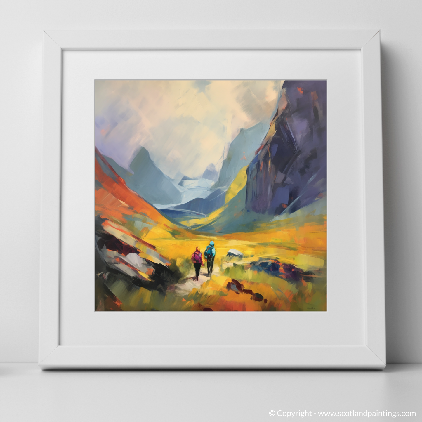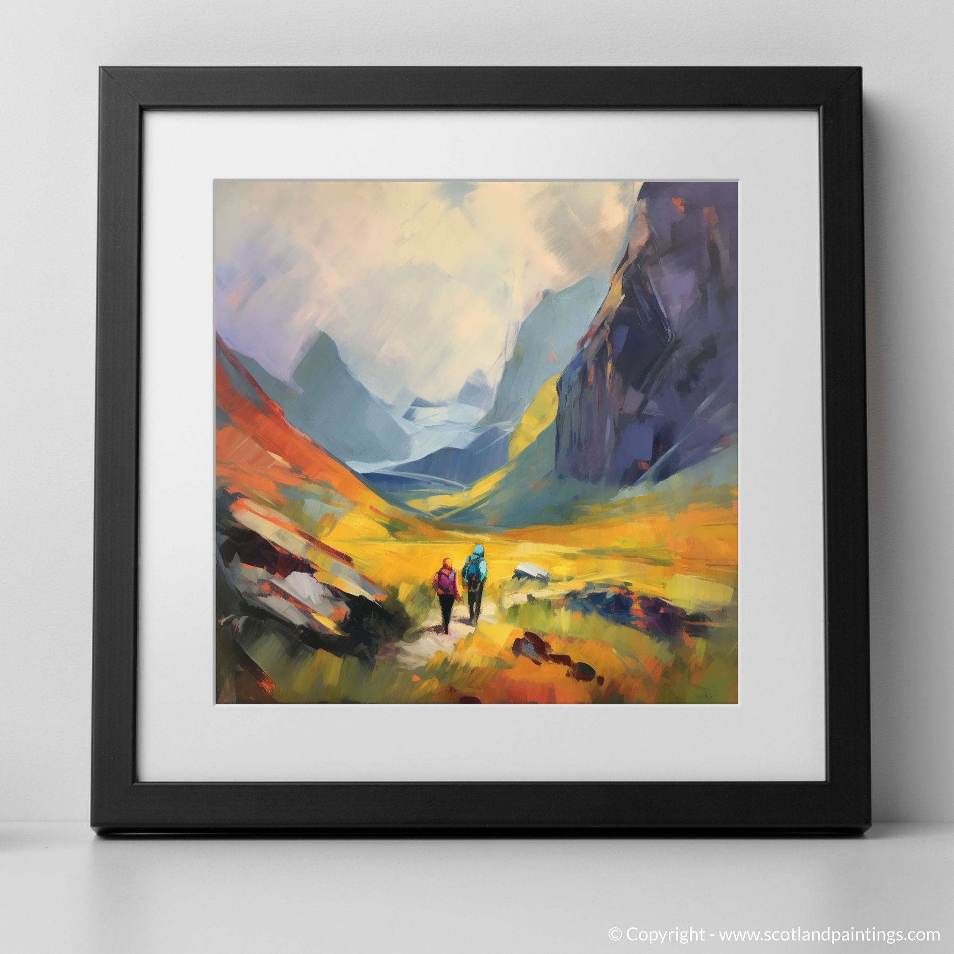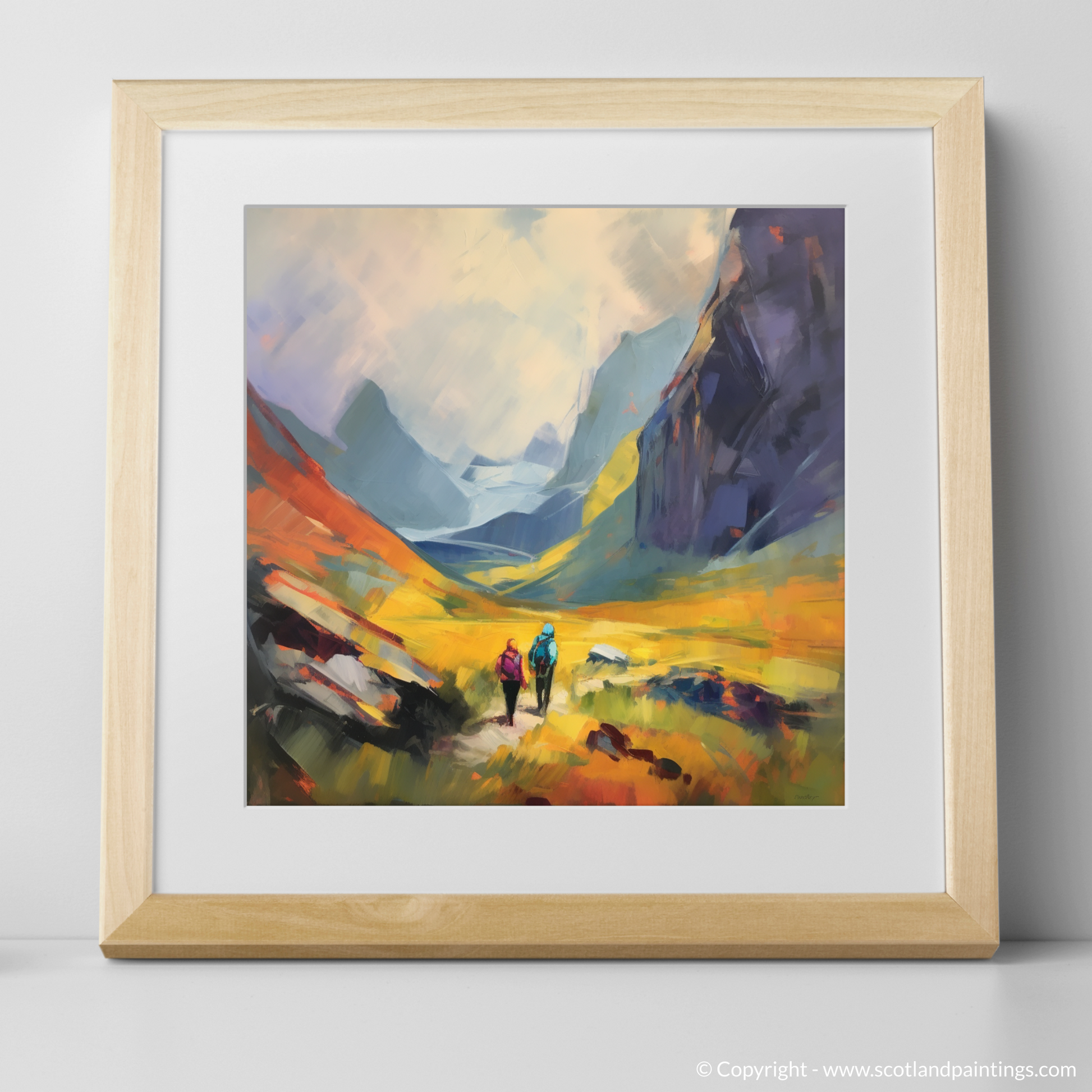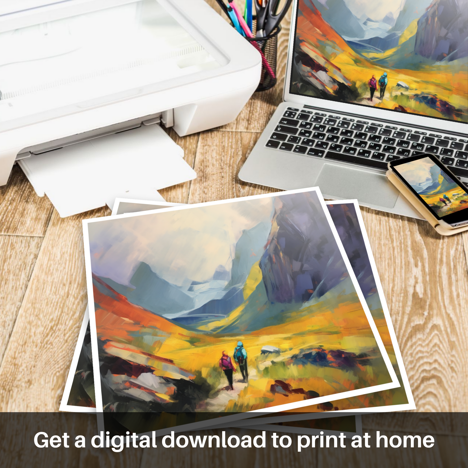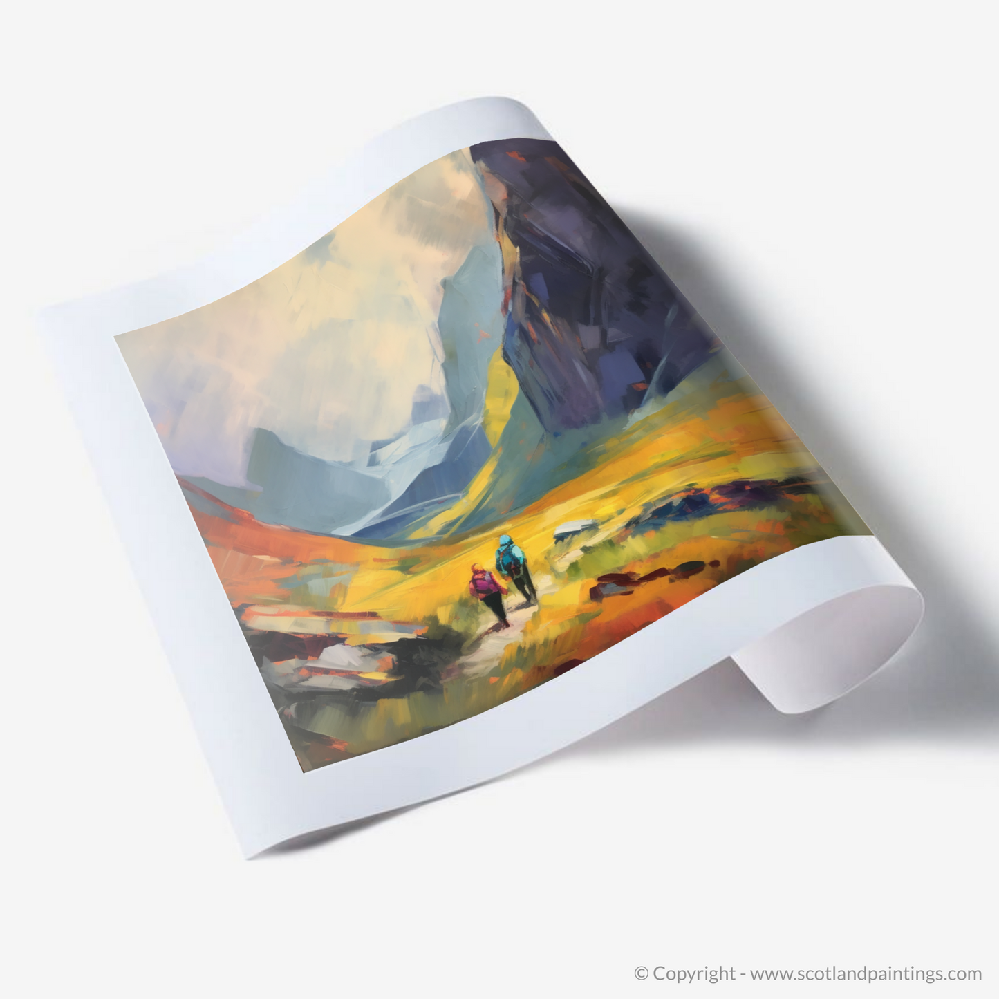 Venture into the heart of Scotland's rugged beauty with this evocative print, a vivid homage to the intrepid spirits who explore the wilds of Glencoe. The essence of Color Field painting breathes life into this piece, as broad sweeps of colour convey the raw emotion and serene grandeur of the landscape.