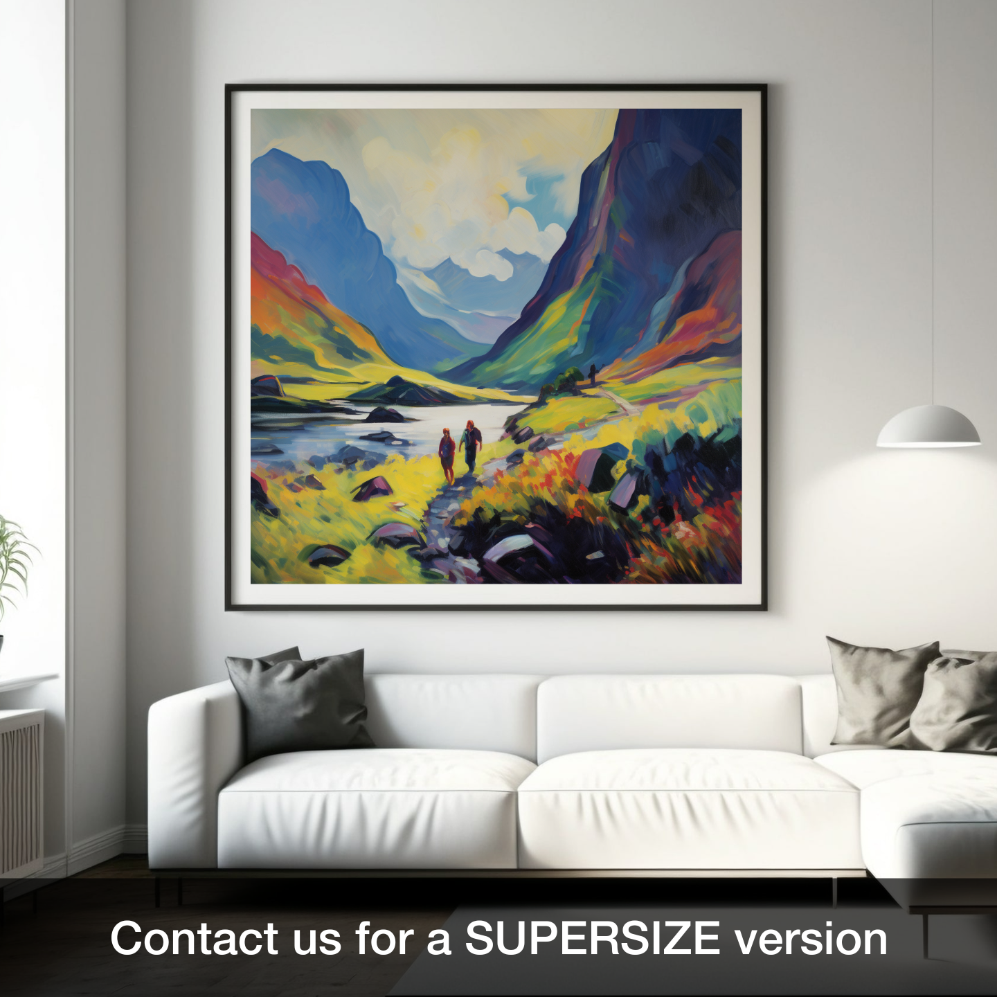 Immerse yourself in the wild, untamed beauty of this captivating print, evoking the raw spirit of Scotland's famed Glencoe. Step into a vivid landscape where bold colours clash and dance with the subtly of light and shadow, a hallmark of the Fauvist movement that inspired this masterpiece.