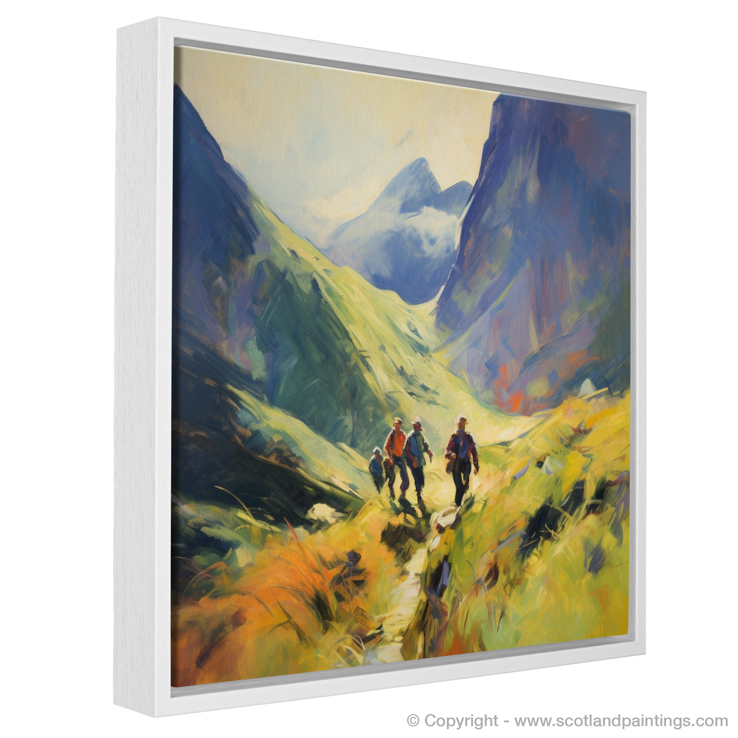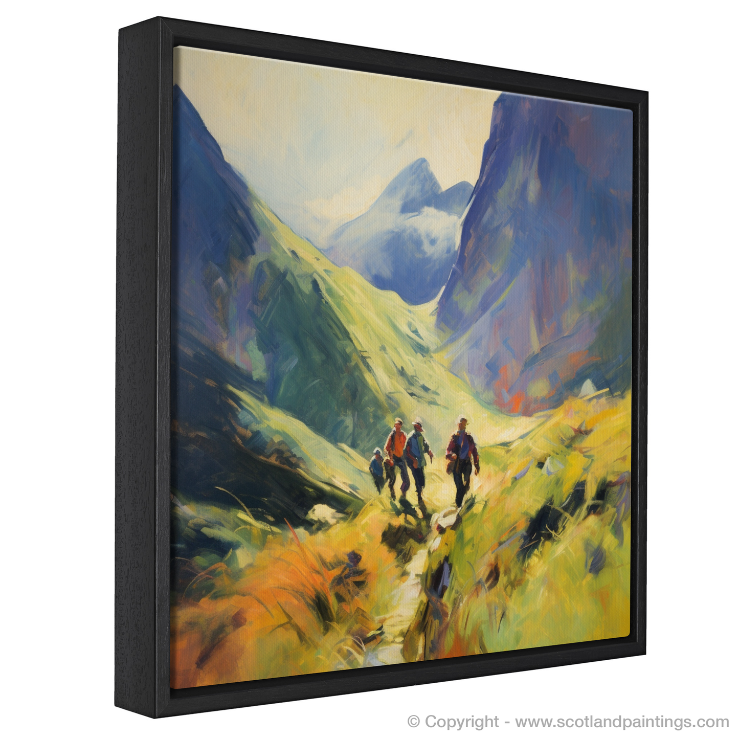 Immerse yourself in the vibrant energy of the Scottish Highlands with our exclusive print inspired by hikers embarking on an adventure through Glencoe. This exuberant piece captures the essence of the Fauvist movement with its bold, raw brushstrokes and a palette that is strident yet harmoniously balanced.