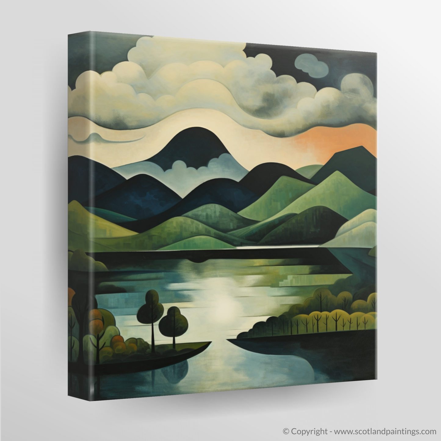 Let the tranquil beauty of the Scottish Highlands envelop your space with this captivating abstract rendition of Loch Lomond. This exquisite piece transports you to the serene vistas of one of Scotland's most picturesque locations through a harmonious interplay of colour and shape.