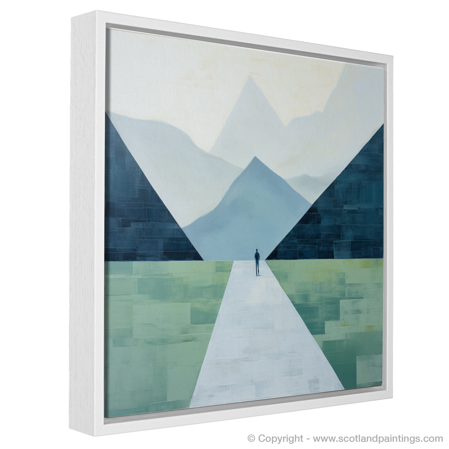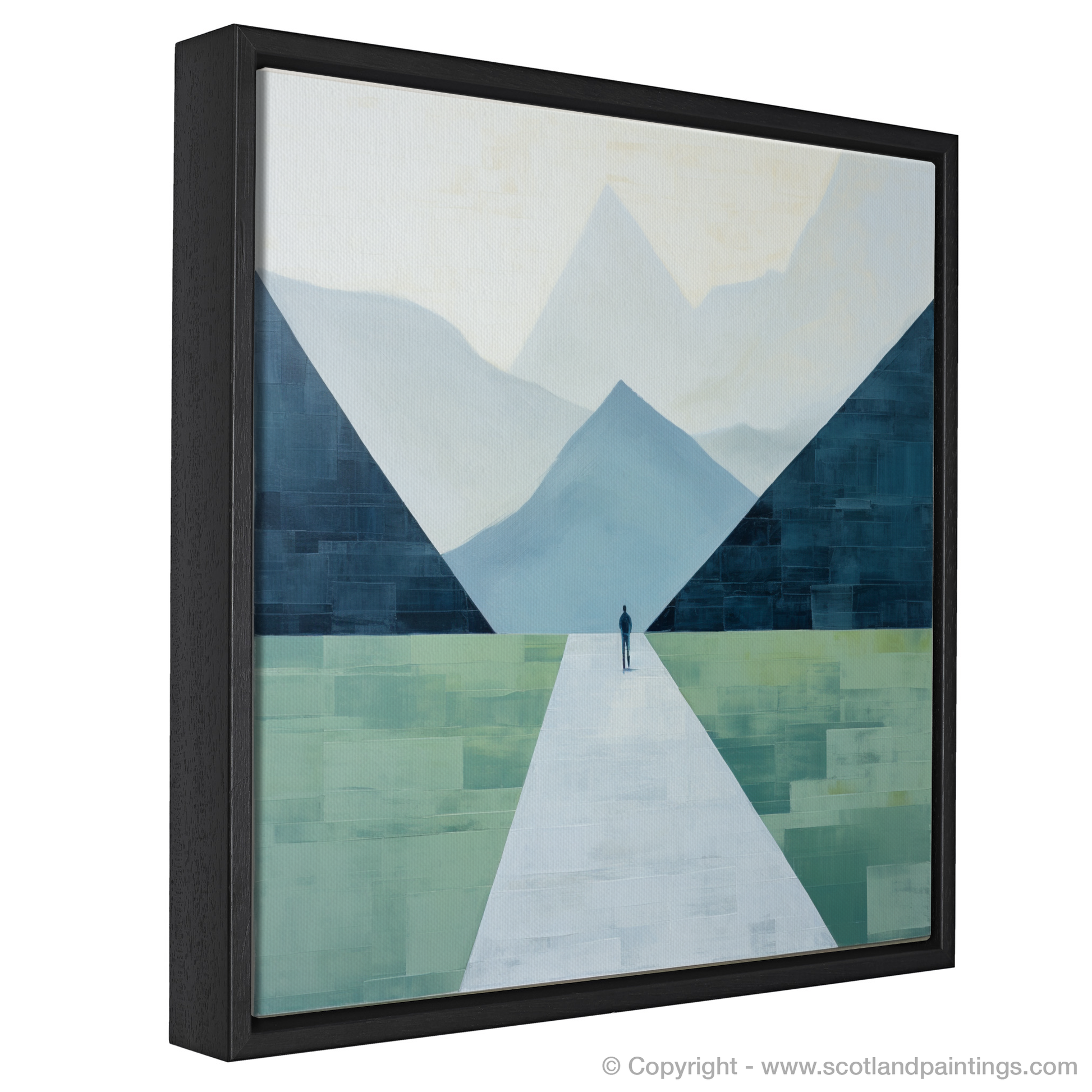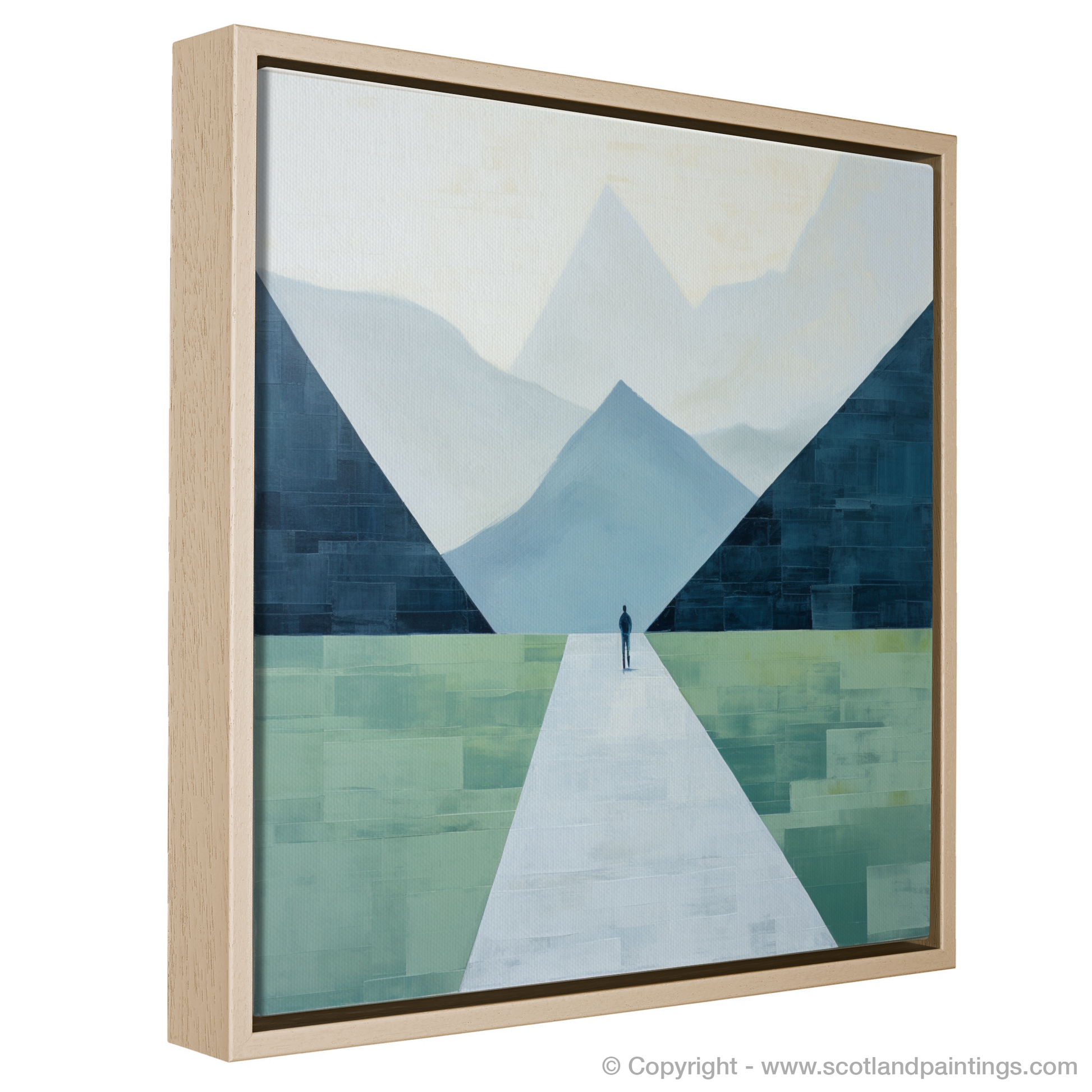 Let the tranquil essence of the Highlands permeate your space with this exquisite minimalist interpretation of a lone hiker's summer journey through Glencoe. A symphony of geometric simplicity, the artwork distils the majesty of this beloved landscape into pure abstract forms and a subdued palette that effortlessly coalesces into a serene composition.