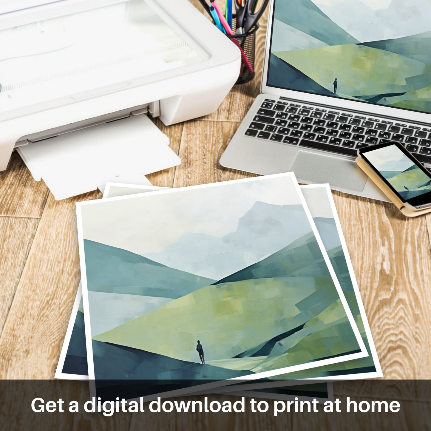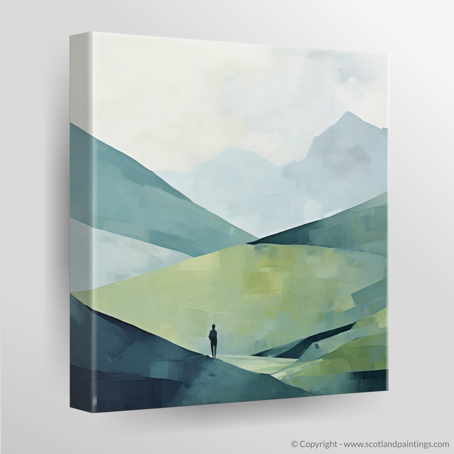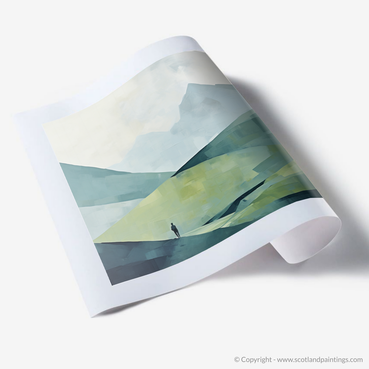Embrace the serene minimalism of this evocative piece, capturing the essence of a solitary hiker's journey through the famed Glencoe — a treasure of the Scottish Highlands. This masterful print, part of our 'Modern & Minimal' collection, offers a pared-down perspective that invites contemplation and reflection.