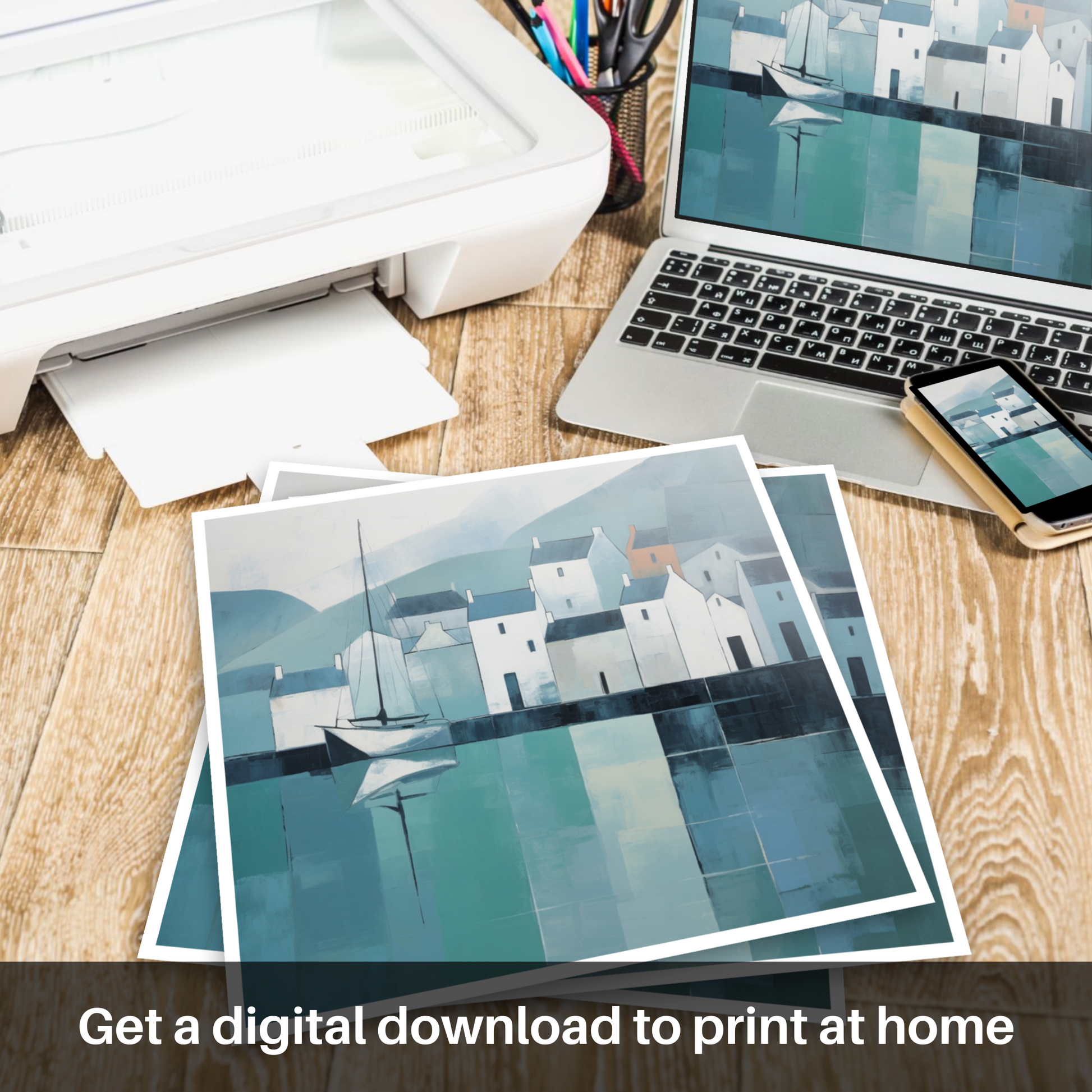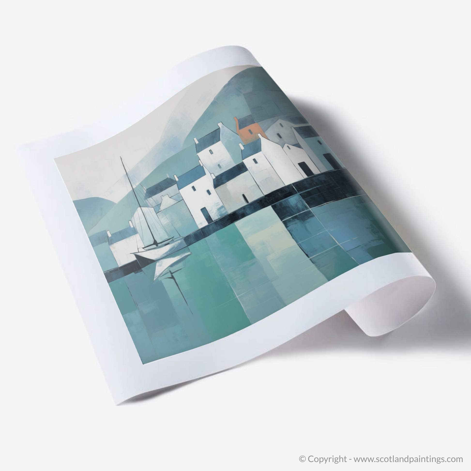 Capturing the essence of serenity, this print showcases a tranquil scene from the picturesque Portree Harbour, wrapped in the cloak of minimalism. The artwork distills the landscape to its purest forms, colours, and lines, creating an elegant and sophisticated representation that evokes a sense of calm and reflection.